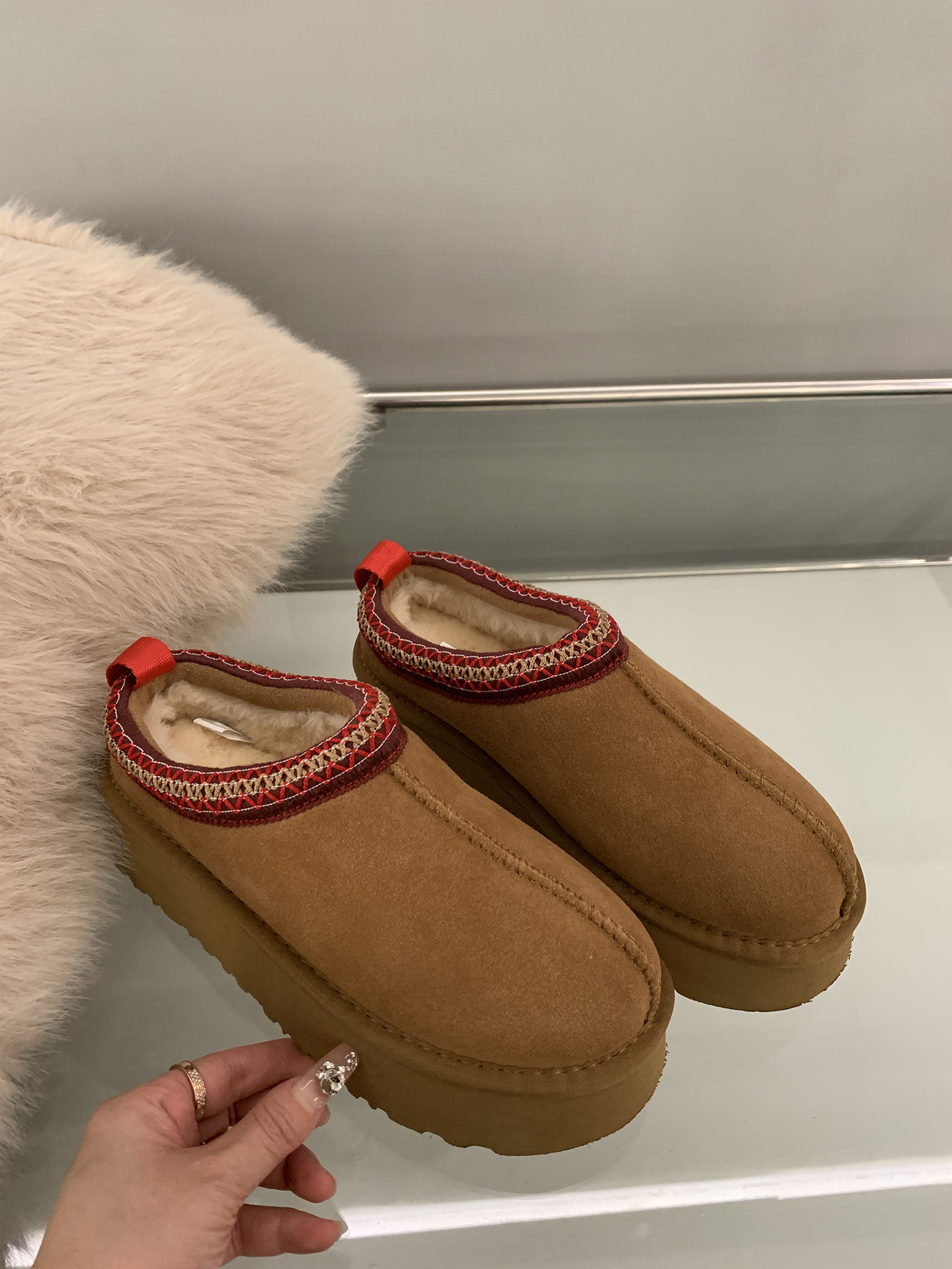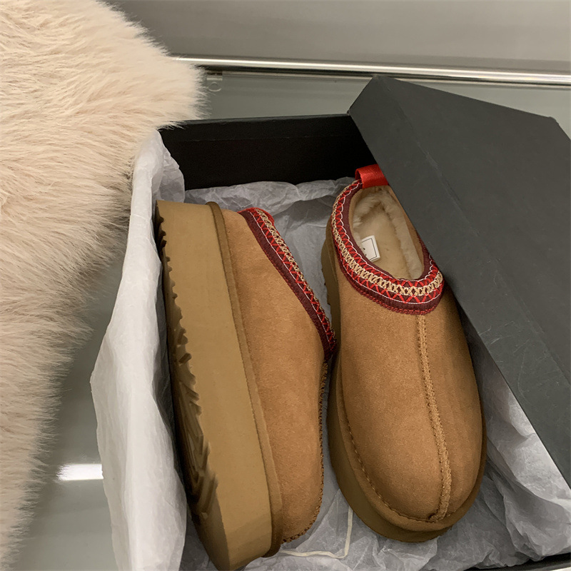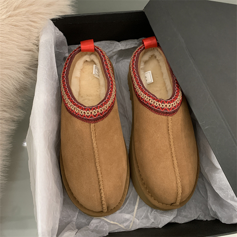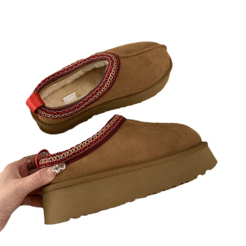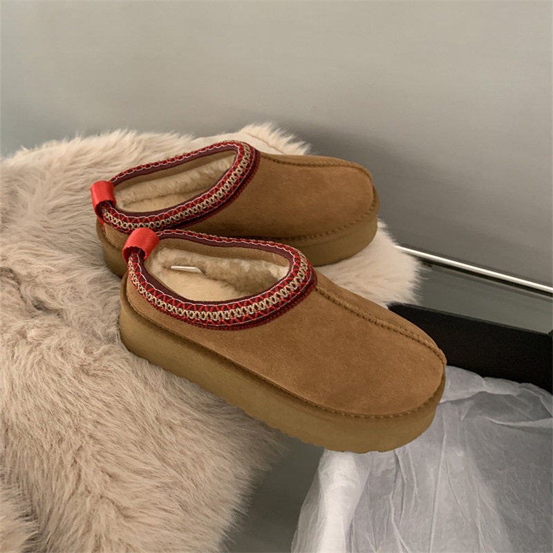 여성용 스노우 부츠 모피 슬리퍼 2025 새로운 모피 일체형 발가락 슬리퍼 겨울 두꺼운 벨벳 코튼 슈즈 하프 슬리퍼