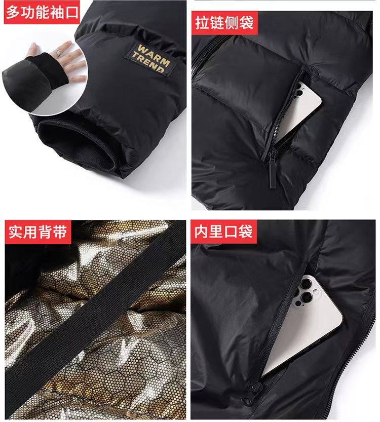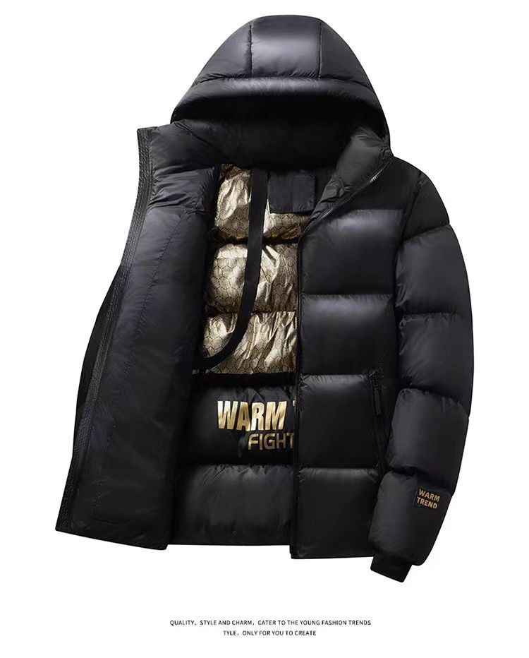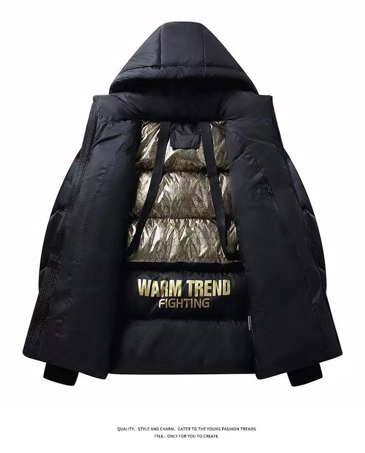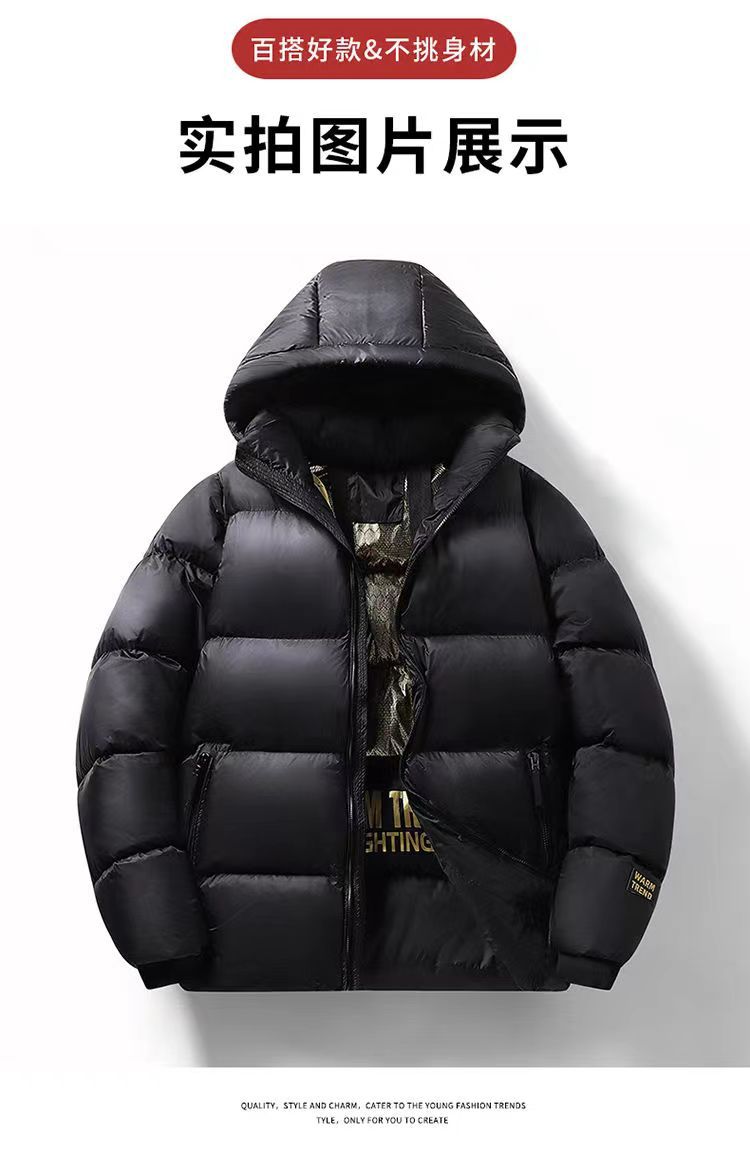 블랙 골드 짧은 후드 다운 코튼 패딩 재킷 남성용 따뜻한 커플 코트 겨울 야외 빵 의류