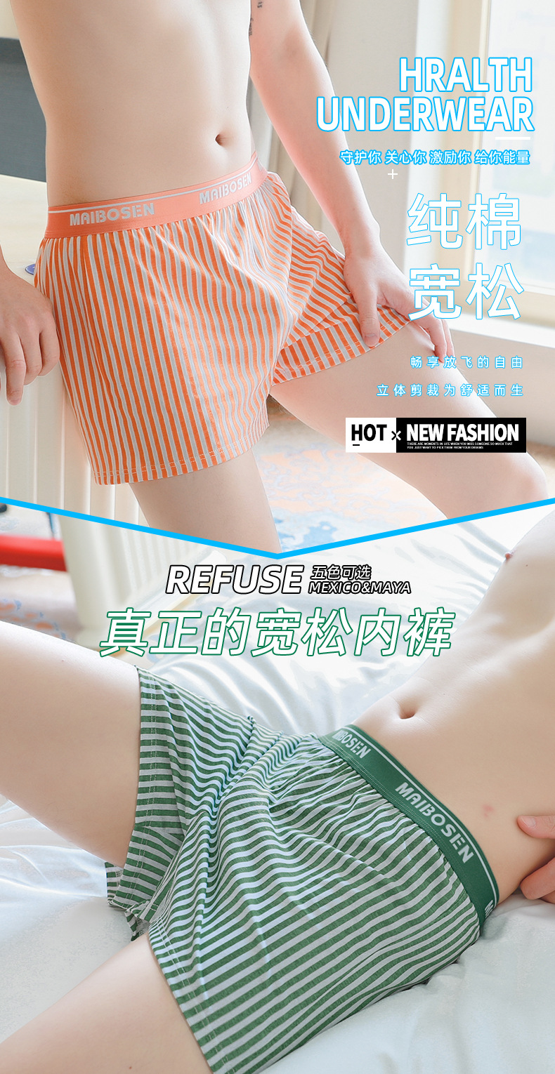남자 속옷 면 알로 바지 느슨한 대형 통기성 복서 남자 스포츠 줄무늬 홈 바지 스트레치