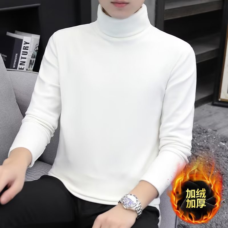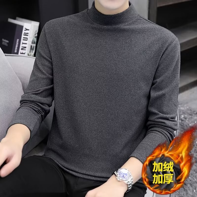 가을과 겨울 긴팔 티셔츠 남성용 터틀넥 바닥 셔츠 양면 벨벳 속옷 미드 칼라 기모 따뜻한 남성용 내복