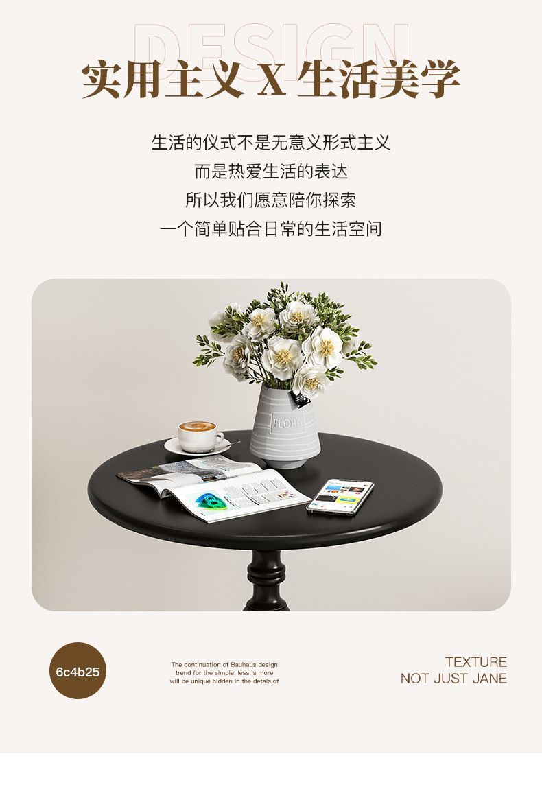로렌 블랙 [아이언 베이스 + 원목 데스크탑] [직경 40 높이 52] - 대형 사이즈
