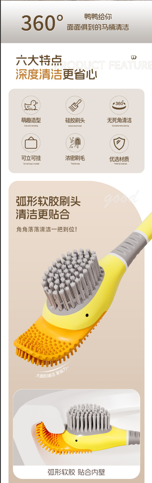 다이빙 오리 화장실 브러쉬 죽은 각도 없음 실리콘 화장실 브러시 기본 하드 헤어 화장실 세척 아티팩트 화장실 청소 가구