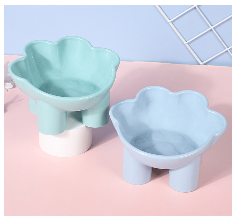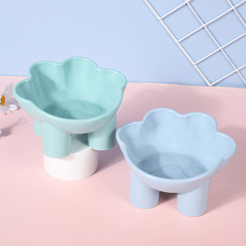 마카롱 컬러 길조 코끼리 다리 목 보호 고양이 그릇 고양이 마시는 음식 그릇 안티 노크 애완 동물 그릇 애완 동물 용품
