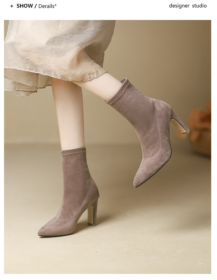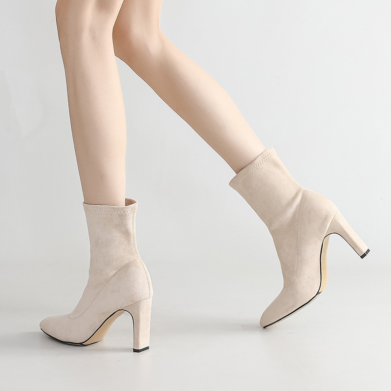 2025년 신상 가을 겨울 양말 부츠, 짧은 굽 여성화, 마틴 부츠, 슬림한 굵은 굽, 다용도 봄 가을 부츠