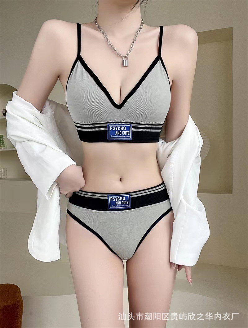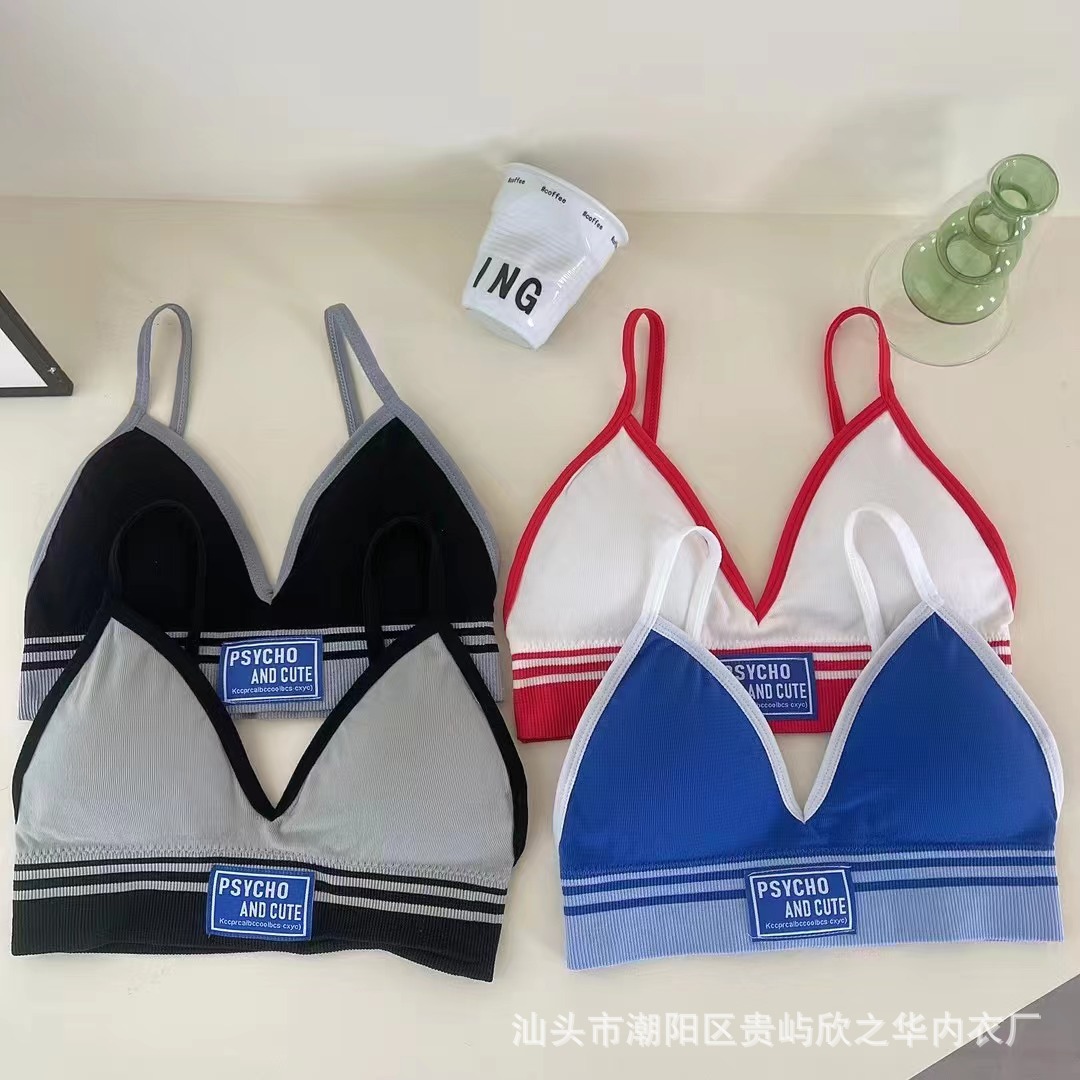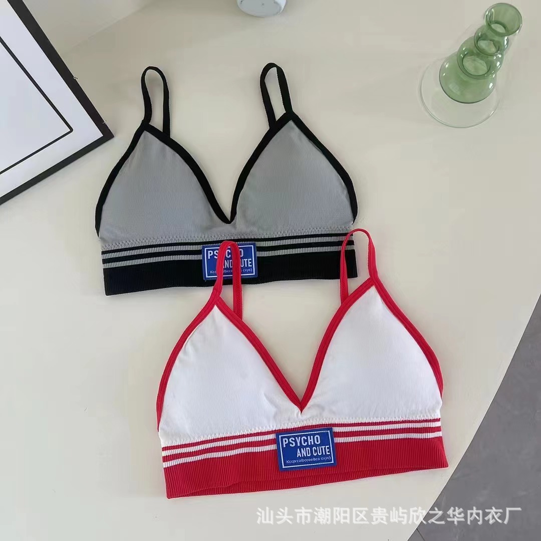 대외 무역 브래지어 세트 소녀 큰 가슴 작은 편지 원활한 스포츠 조끼 여성을위한 강철 반지없이 국경 간 속옷을 밀어