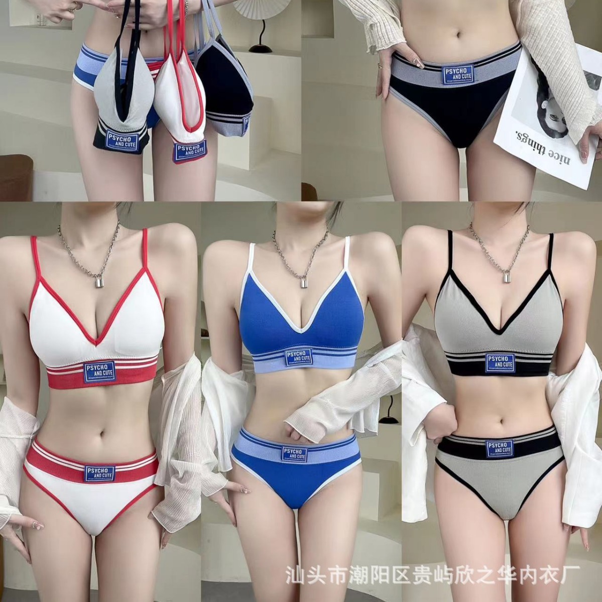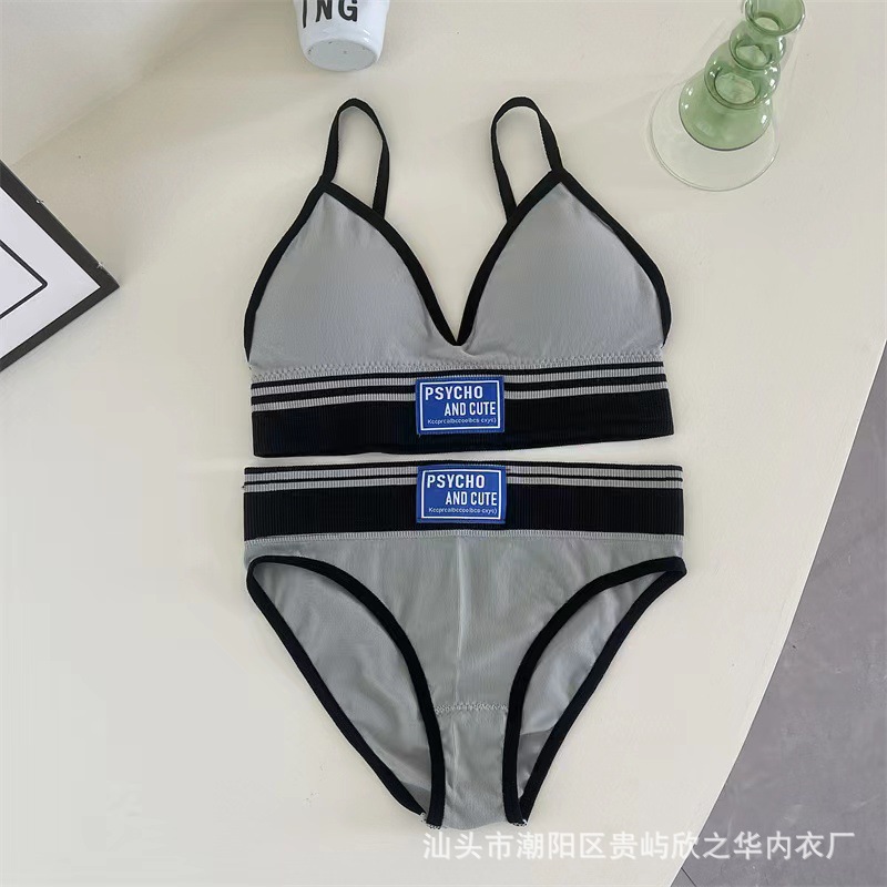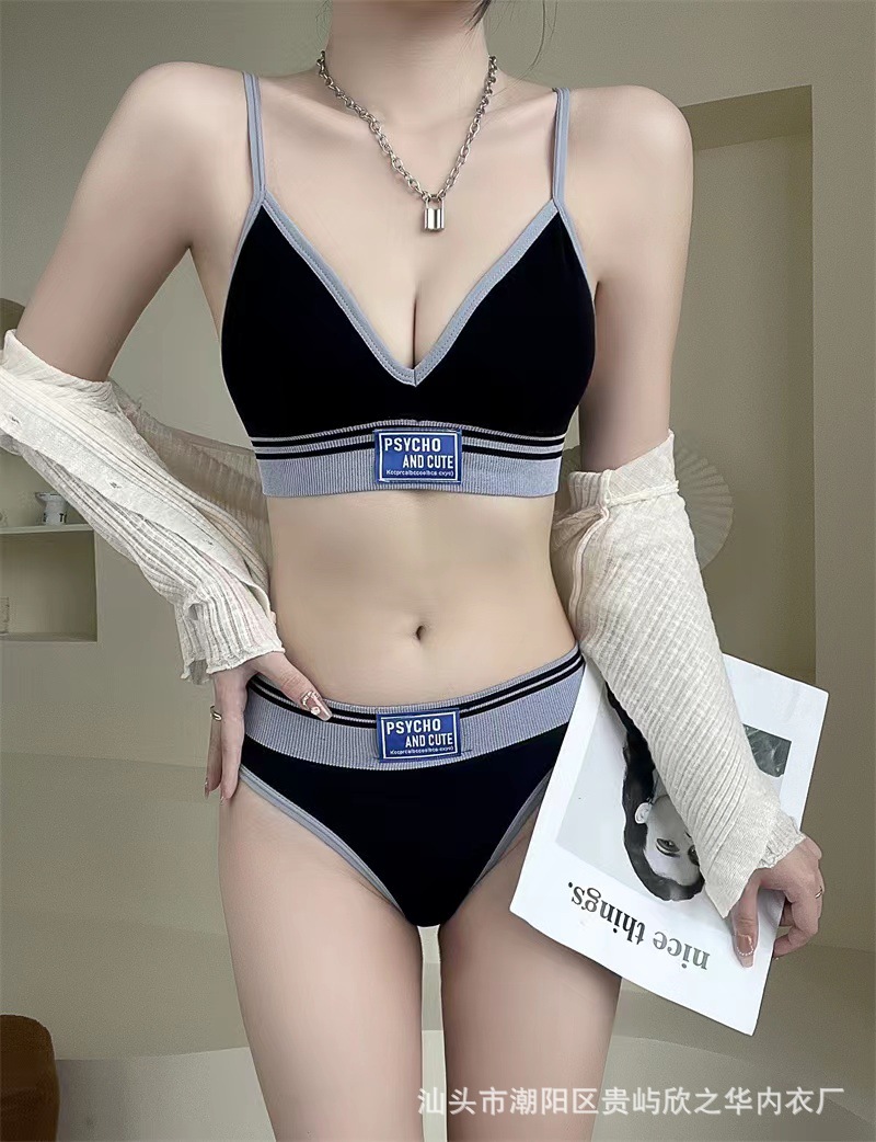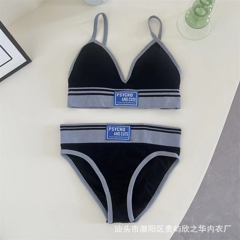 대외 무역 브래지어 세트 소녀 큰 가슴 작은 편지 원활한 스포츠 조끼 여성을위한 강철 반지없이 국경 간 속옷을 밀어