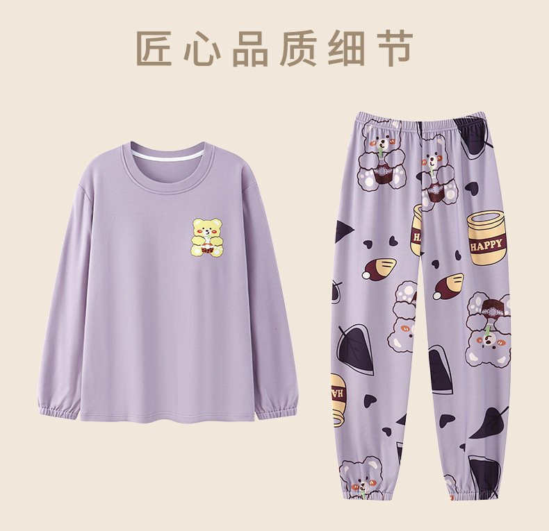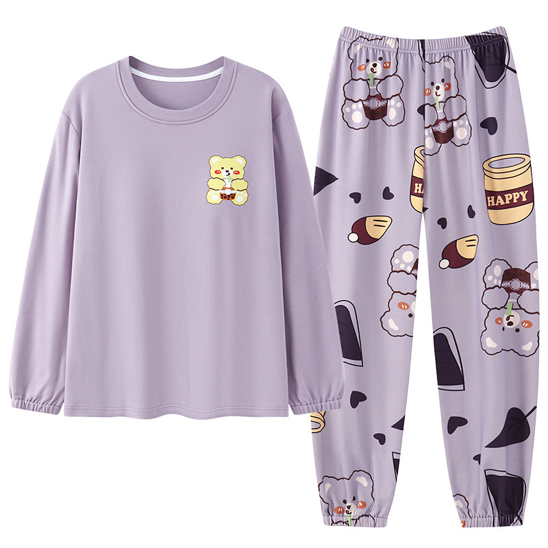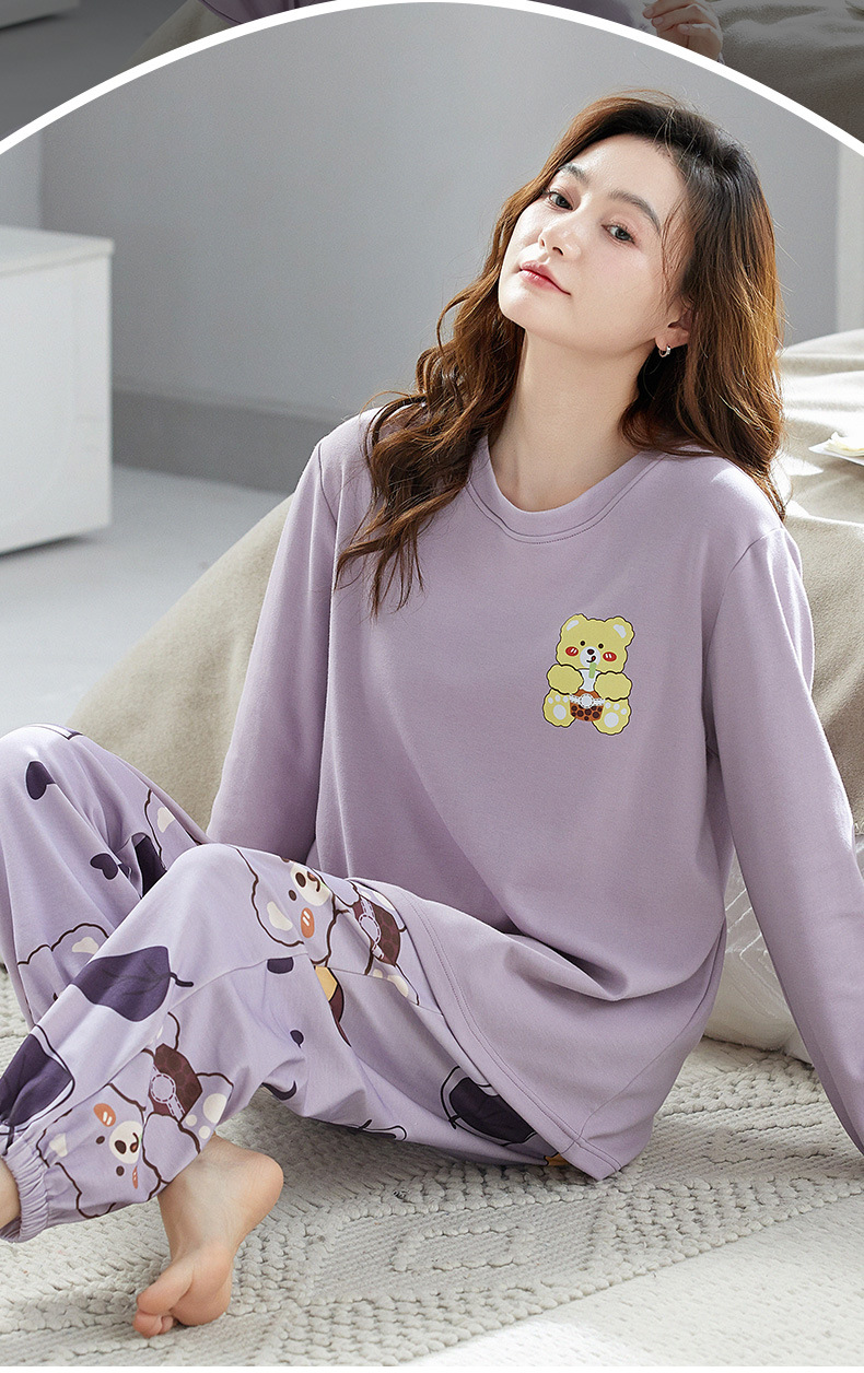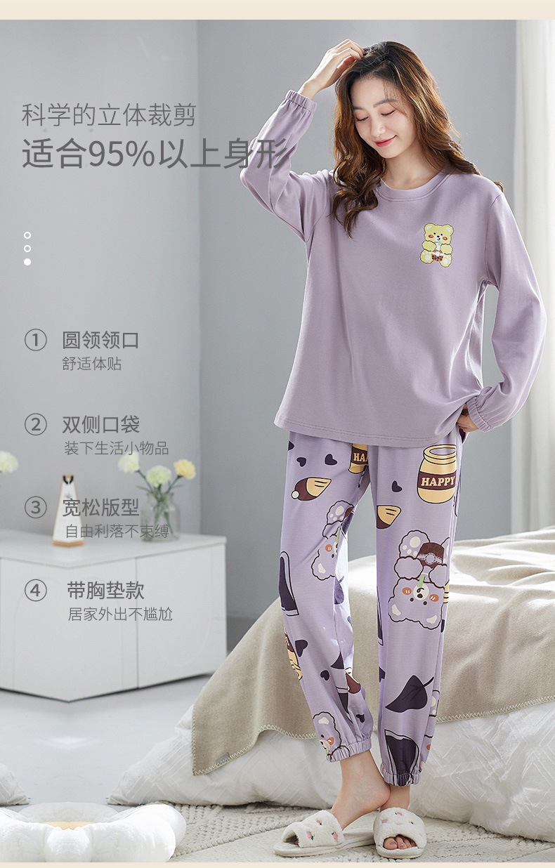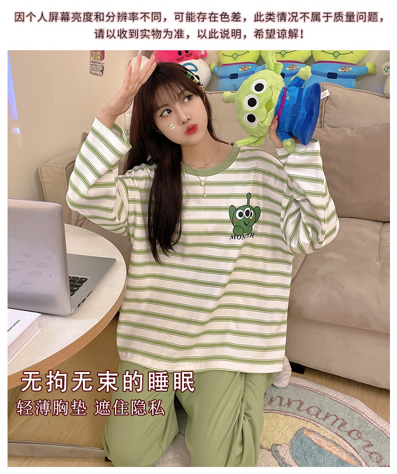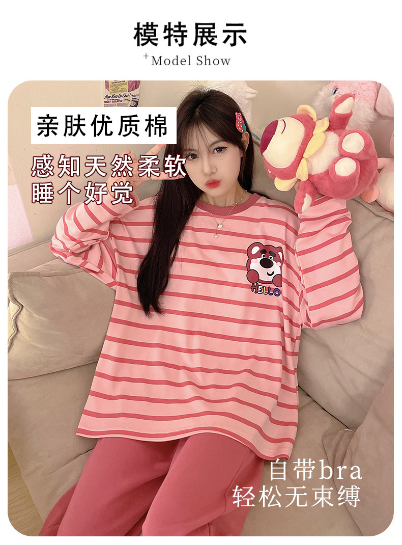 가을 새로운 긴 소매 귀여운 만화 여성용 잠옷 무료 브래지어 속옷 세트 흉부 패드 홈 의류