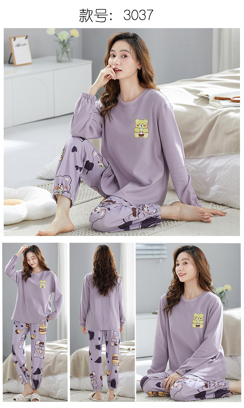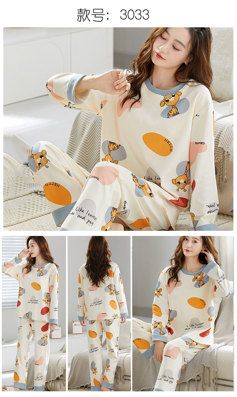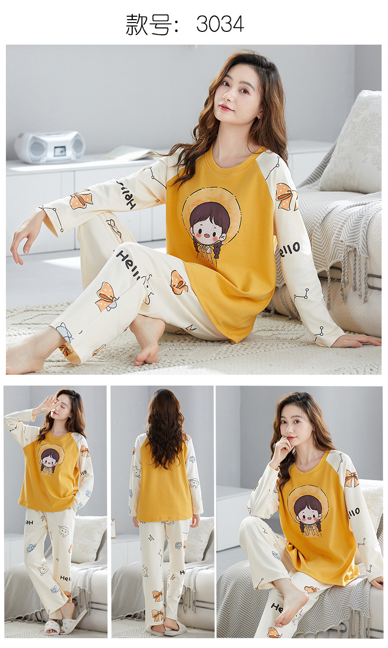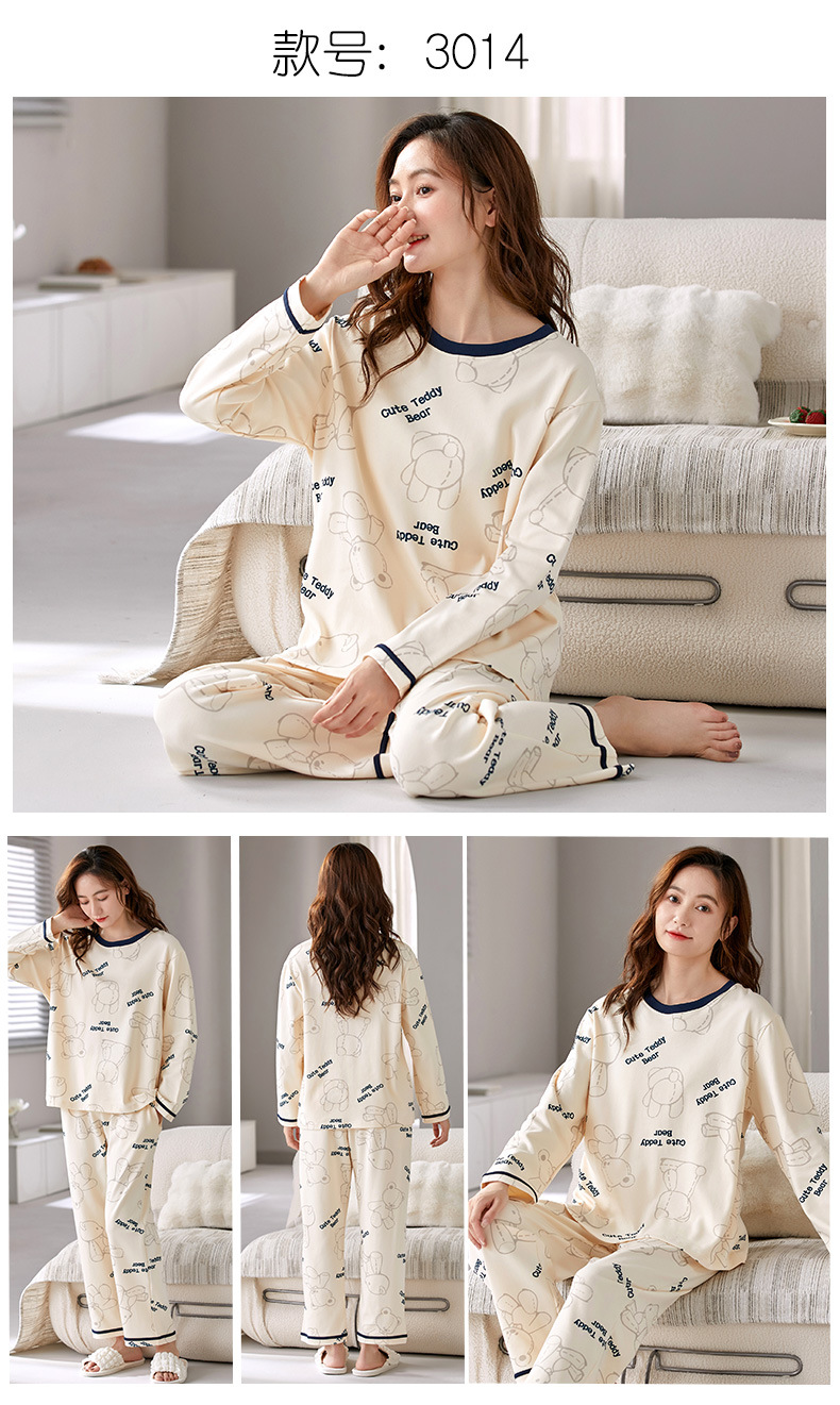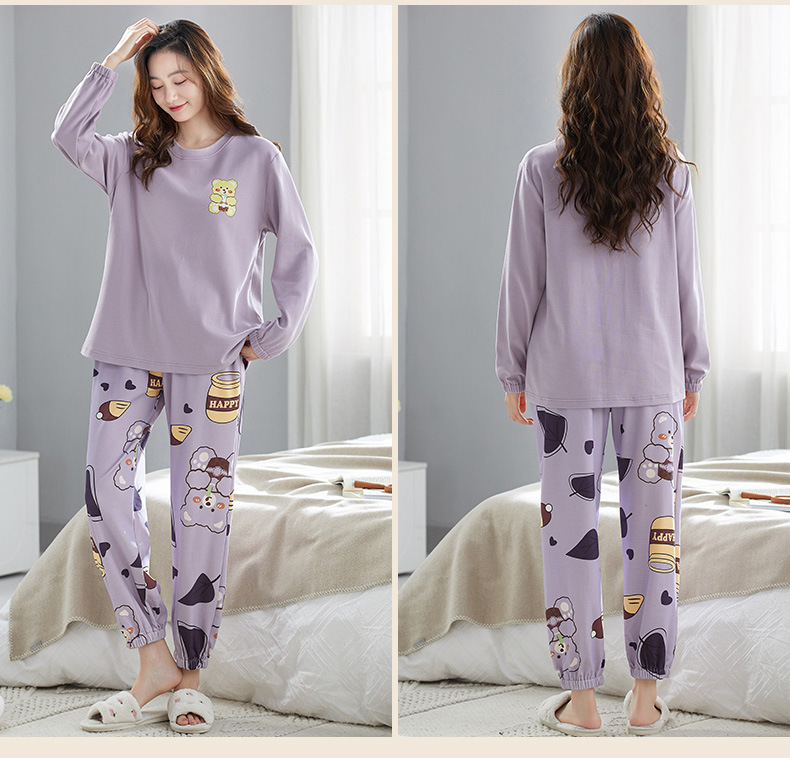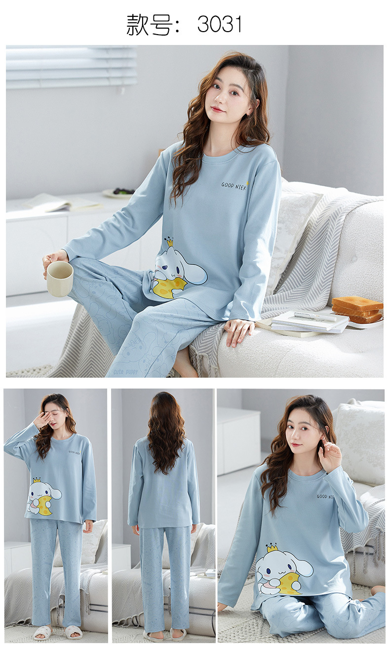 가을 새로운 긴 소매 귀여운 만화 여성용 잠옷 무료 브래지어 속옷 세트 흉부 패드 홈 의류