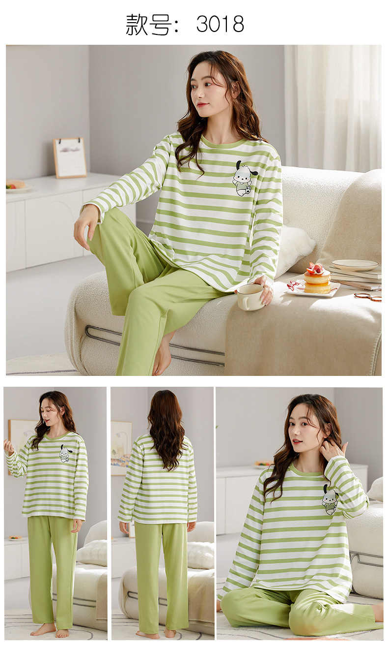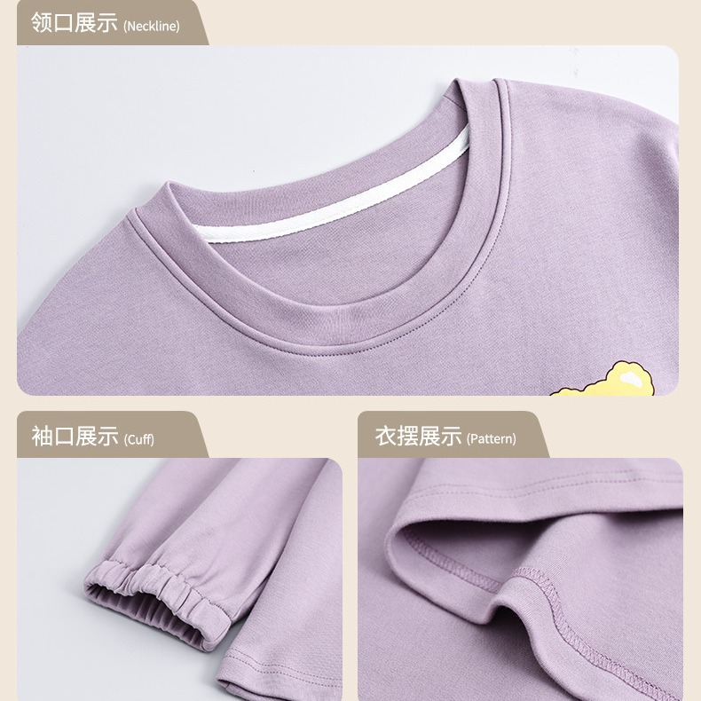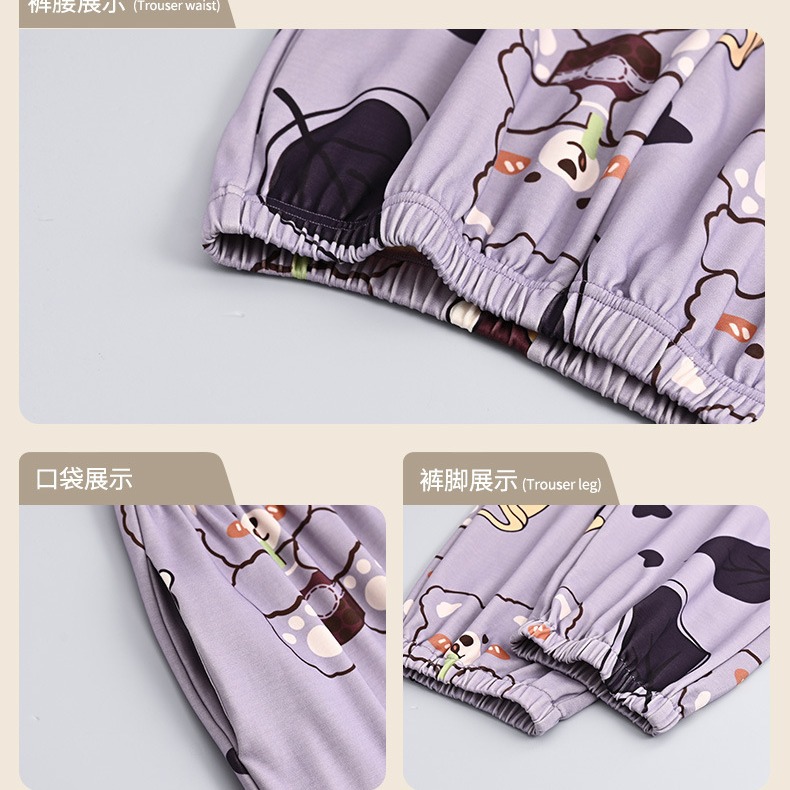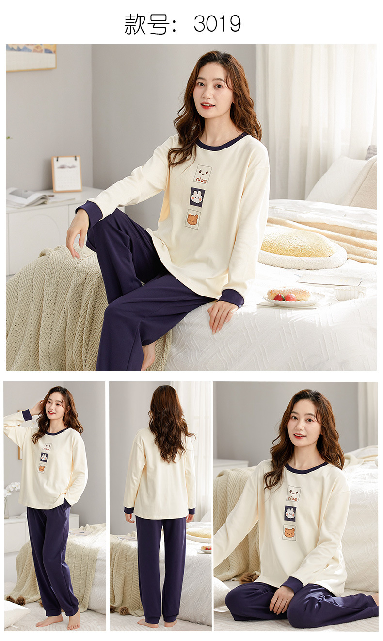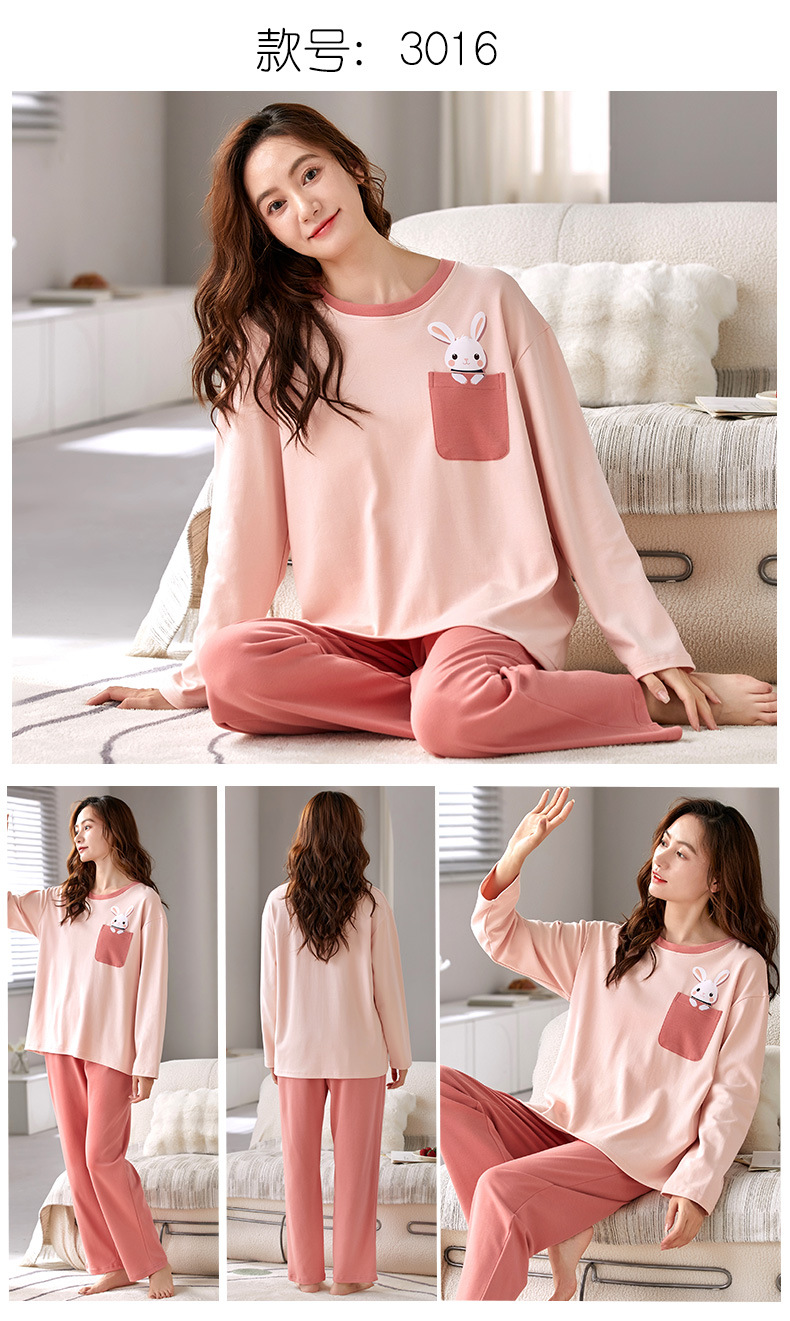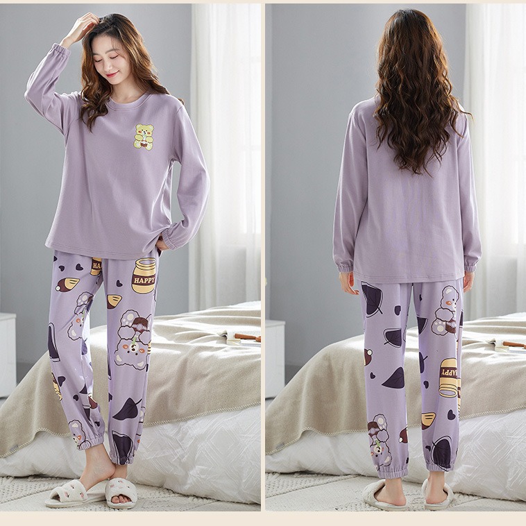 가을 새로운 긴 소매 귀여운 만화 여성용 잠옷 무료 브래지어 속옷 세트 흉부 패드 홈 의류