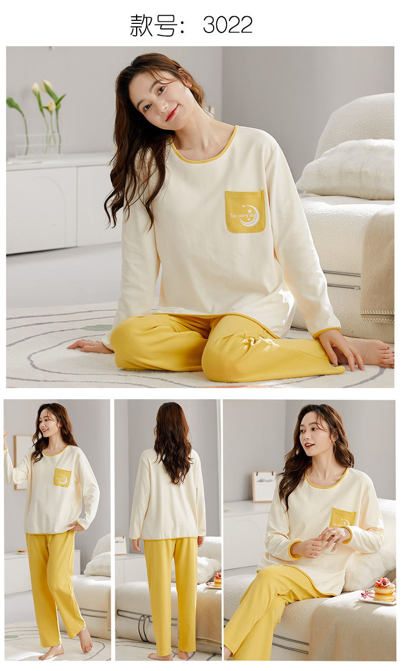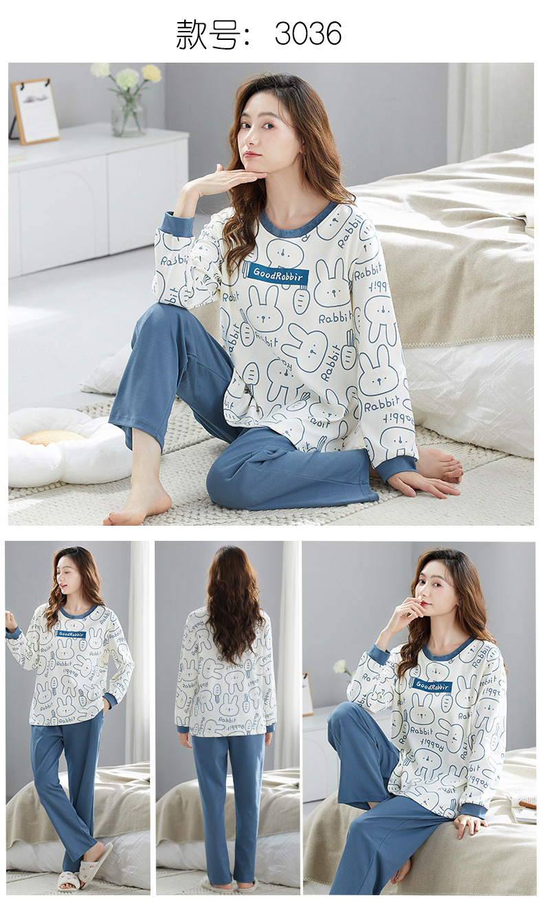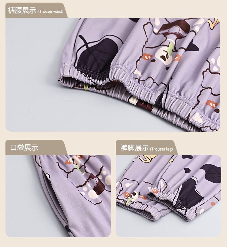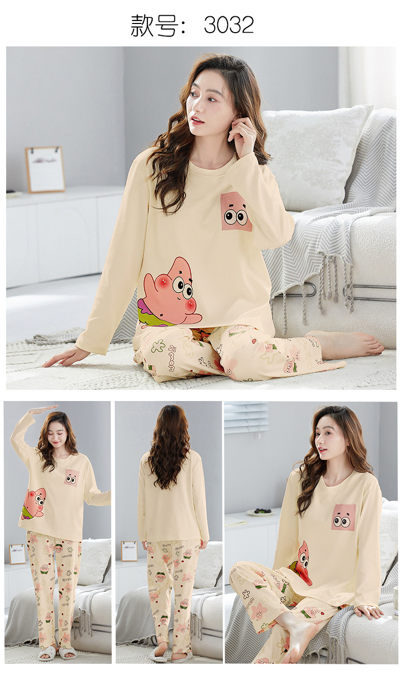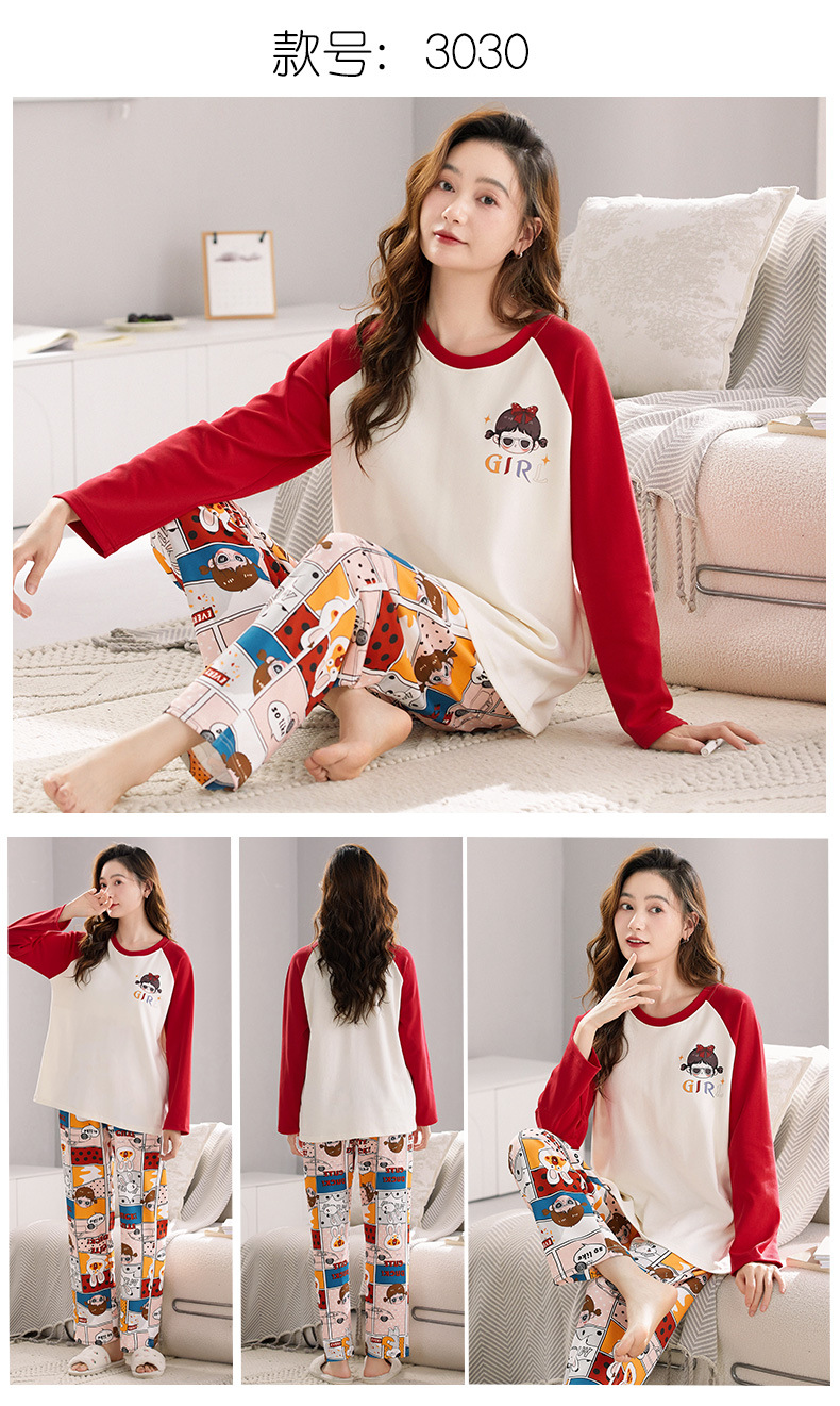 가을 새로운 긴 소매 귀여운 만화 여성용 잠옷 무료 브래지어 속옷 세트 흉부 패드 홈 의류