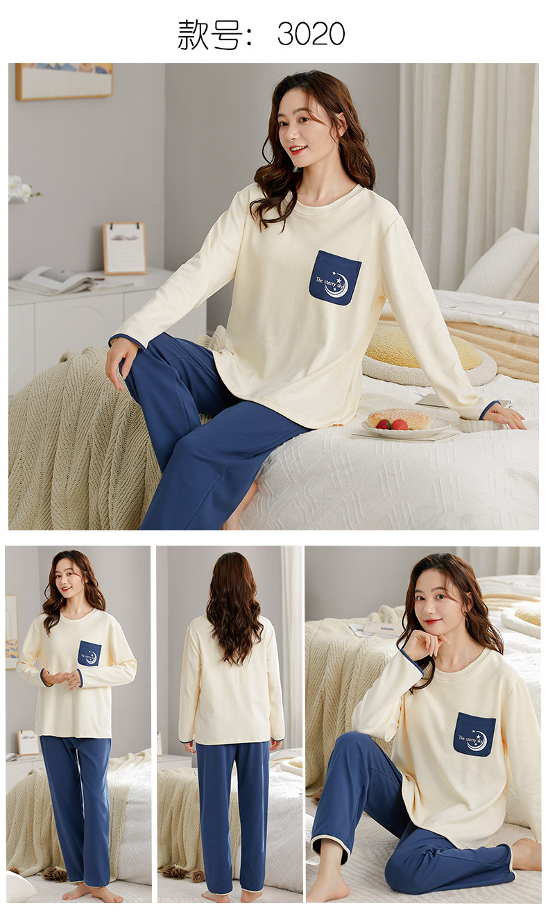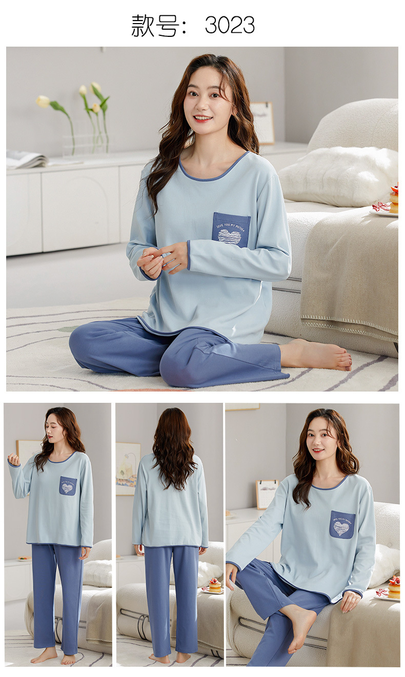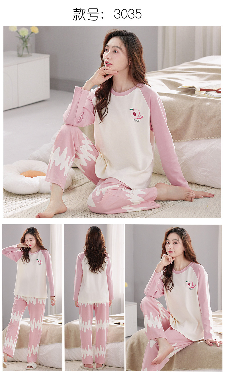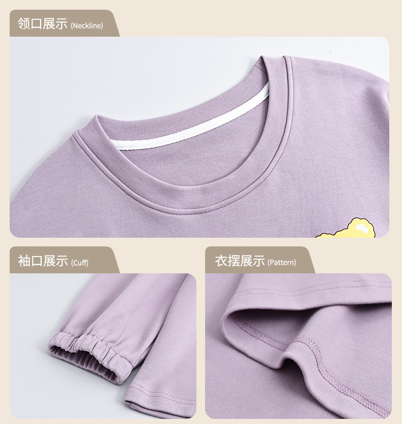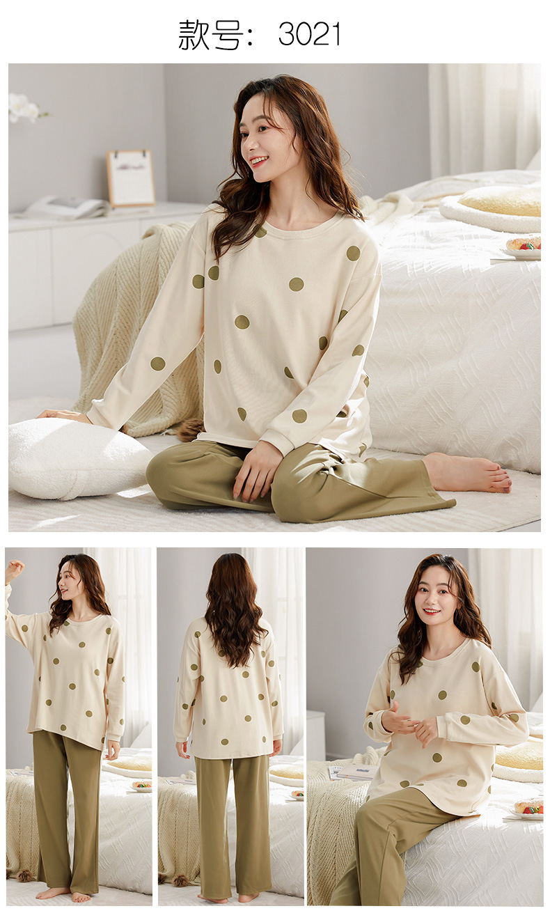 가을 새로운 긴 소매 귀여운 만화 여성용 잠옷 무료 브래지어 속옷 세트 흉부 패드 홈 의류
