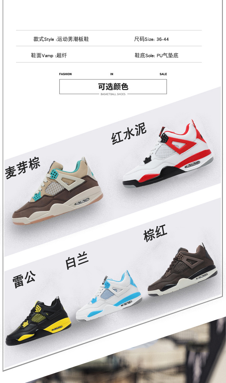 Putian AJ4 스포츠 농구 신발 레드 시멘트 레이 공 남자와 여자의 미끄럼 방지 모든 학생 캐주얼 로우 탑 보드 신발