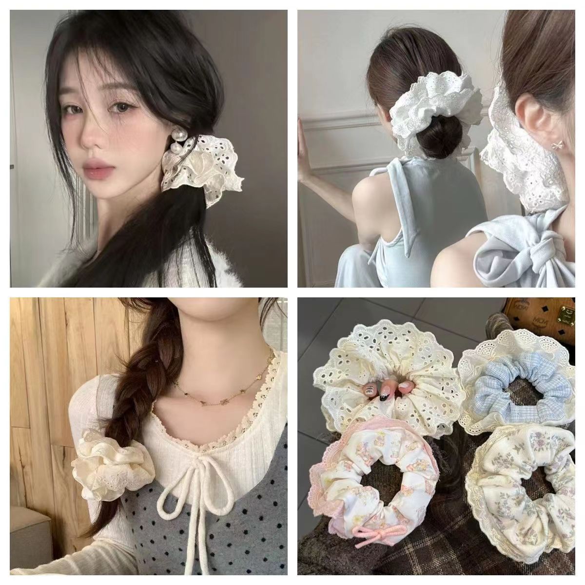라이트 럭셔리 스타일 대형 내장 헤어 링 인 스타일 높은 뷰티 가치 헤어 로프 고급 센스 레이스 헤어 타이 헤드 웨어 레이스 헤어 로프 배치