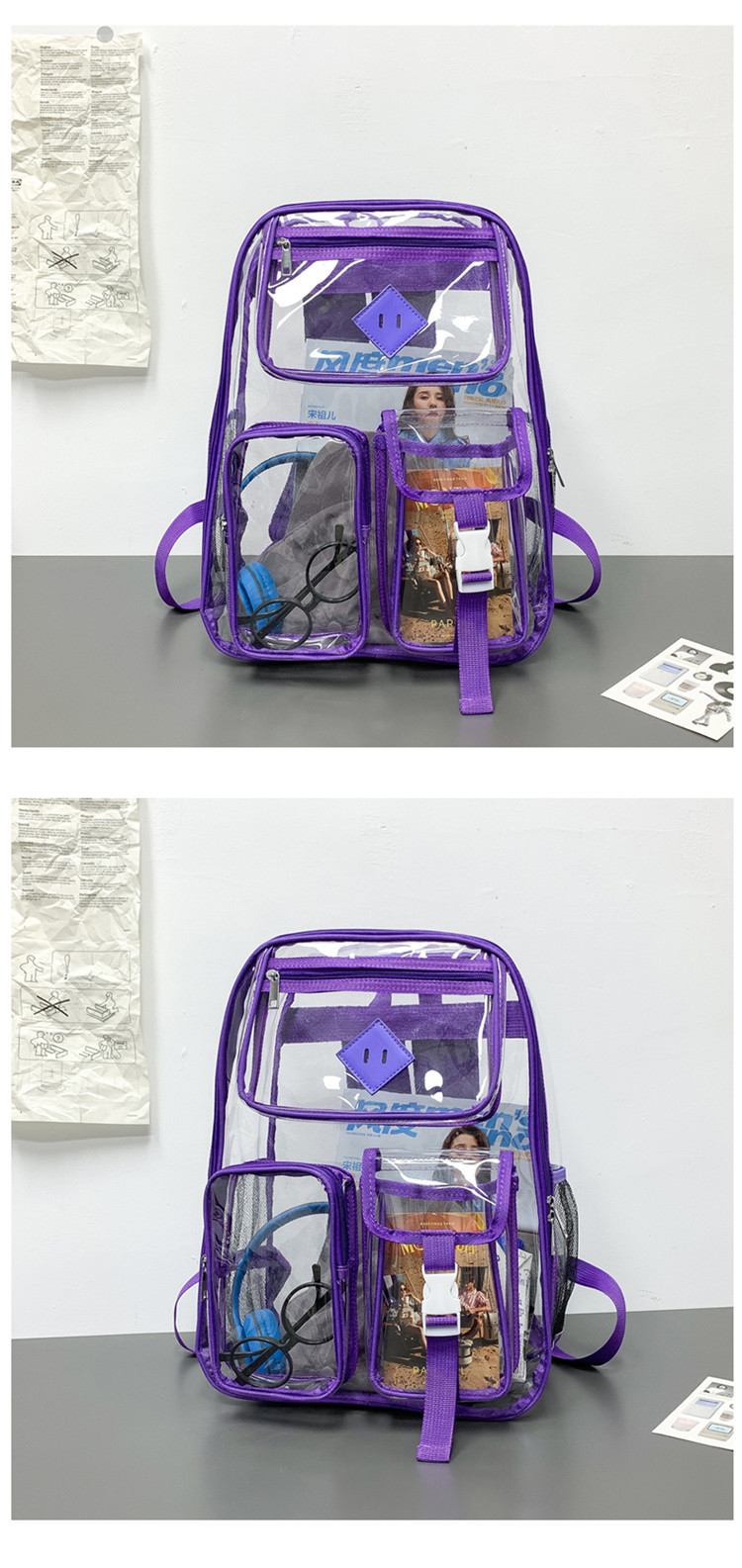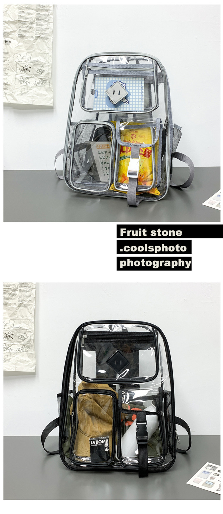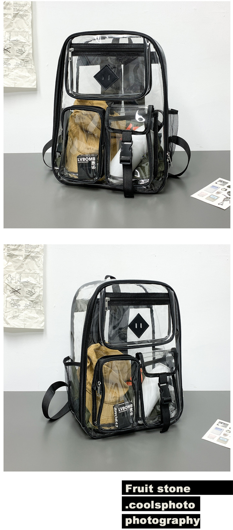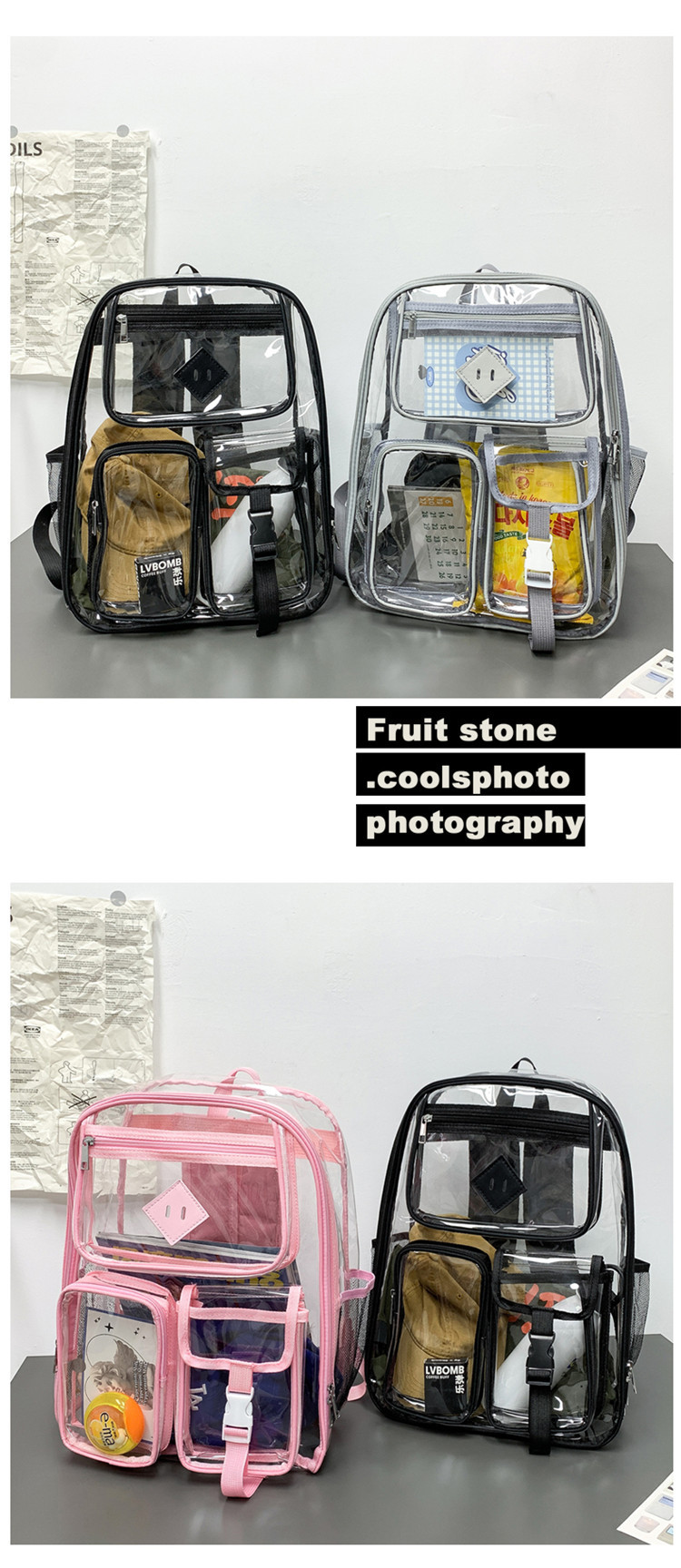 투명 배낭 젤리 가방 새로운 한국 스타일 방수 pvc 아마존 배낭 중학교 학생 가방 소녀