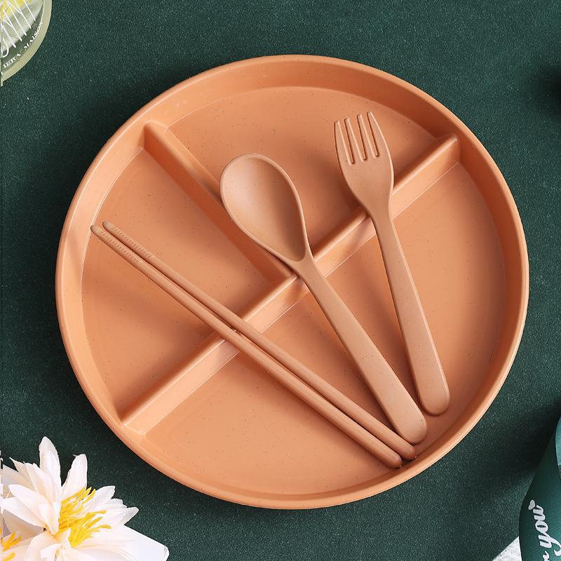 국경 간 검은 격자 판 지방 감소 판 어린이 식기 세트 쌀 접시 분리 아침 식사 접시 재고 두껍게