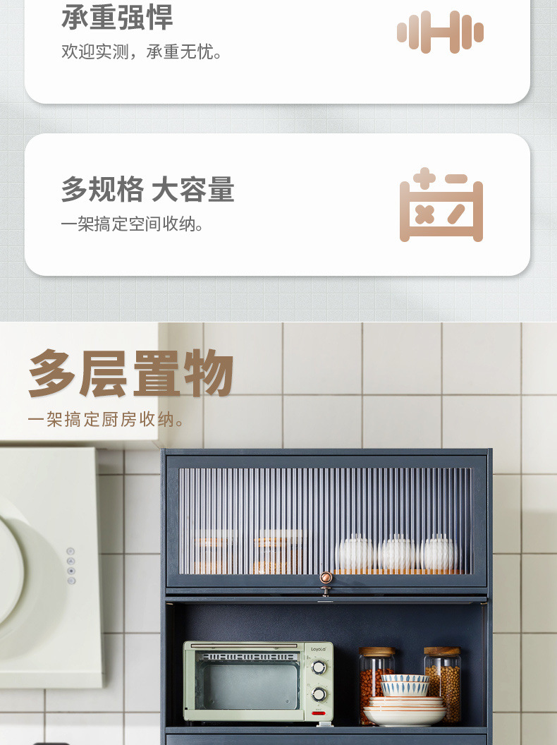 11디멘션 주방 수납장, 바닥형 다층 전자레인지 수납장, 식기 수납장, 깊이와 폭이 더 넓어진 디자인