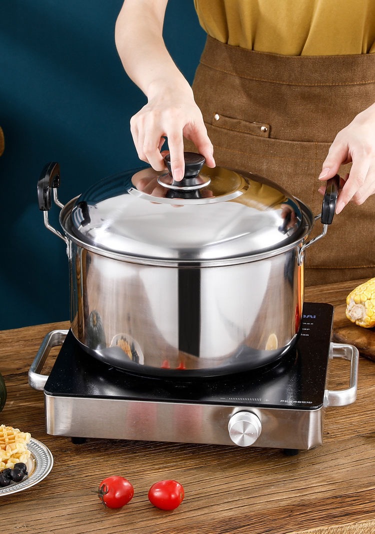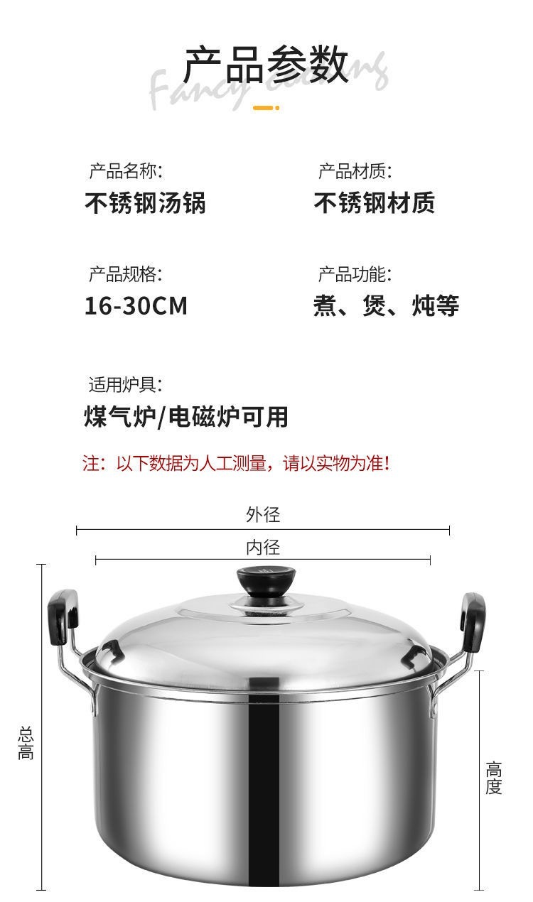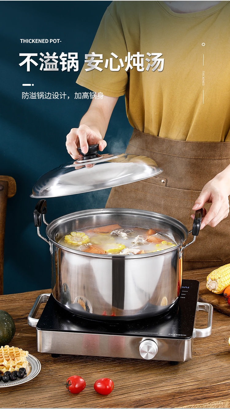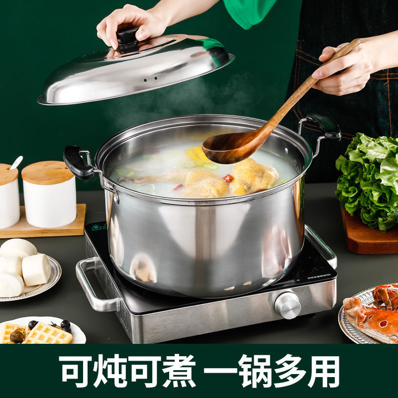 스테인레스 스틸 깊은 수프 냄비 높은 수프 냄비 가정용 두꺼운 대용량 요리 냄비 스튜 냄비 유도 밥솥 가스 스토브 전용