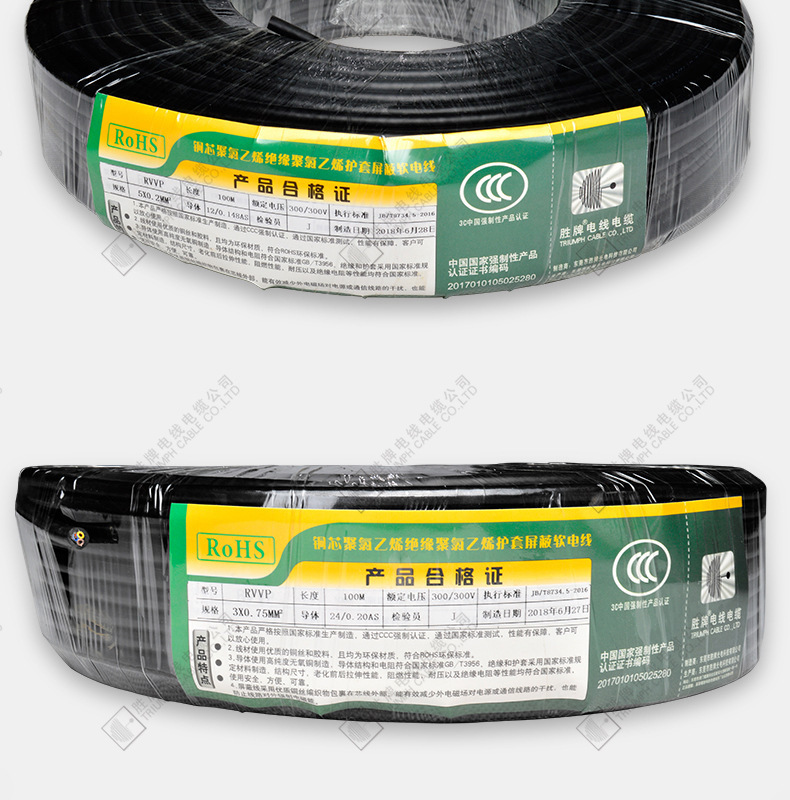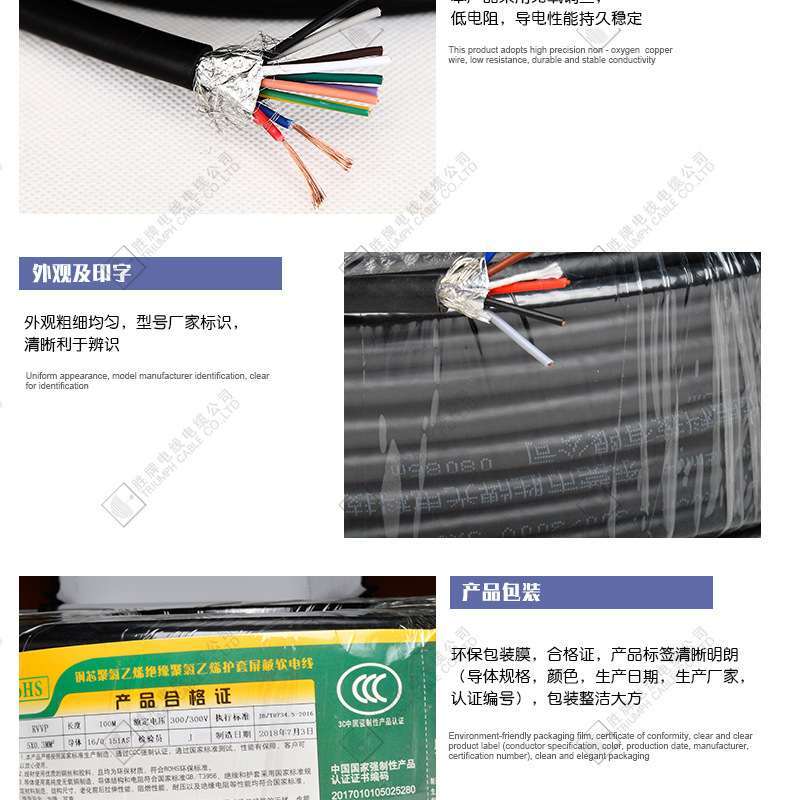 Shengpai 보안 와이어 케이블 RVVP3 * 2.5 사각형 차폐 케이블 모니터링 전원 코드 소프트 보호 슬리브 케이블 3C 인증