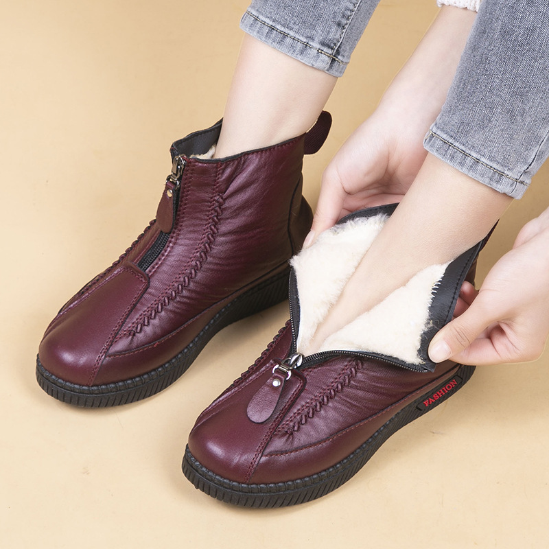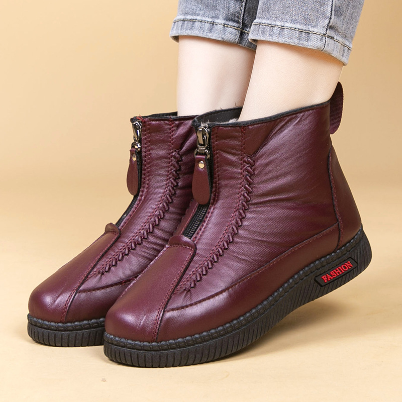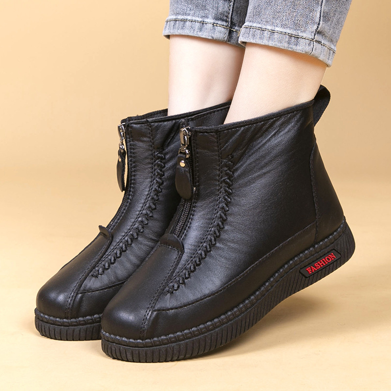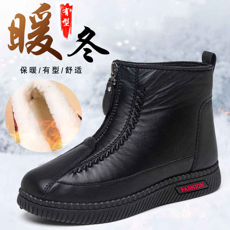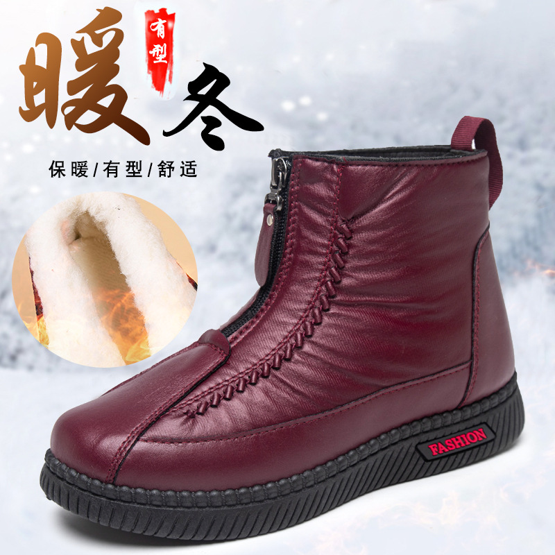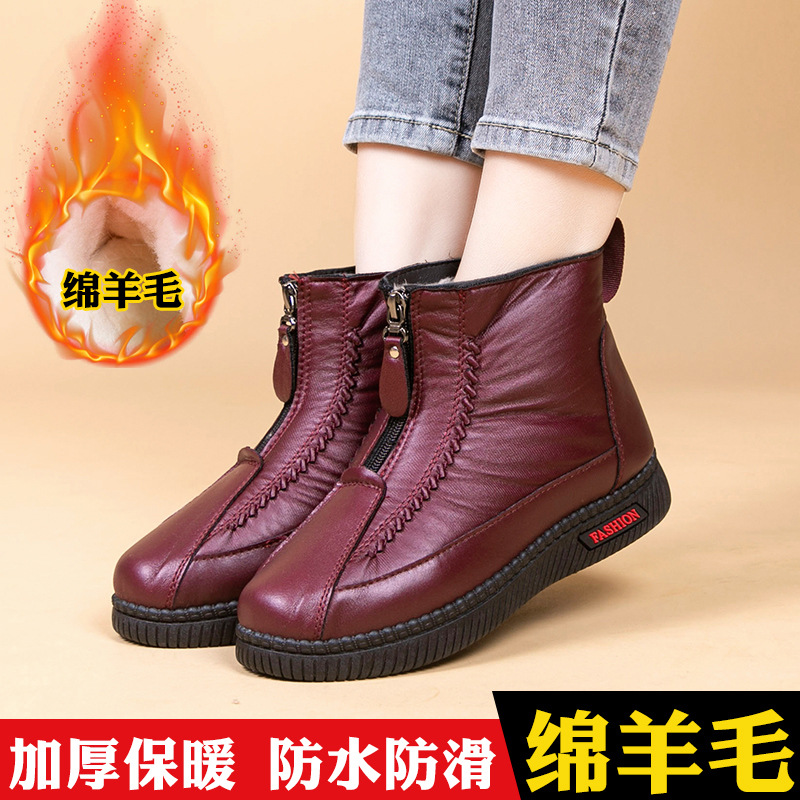 겨울 새로운 여성면 신발 면화 가죽 방수 중년 및 노인 어머니 신발 부드러운 바닥 스노우 부츠