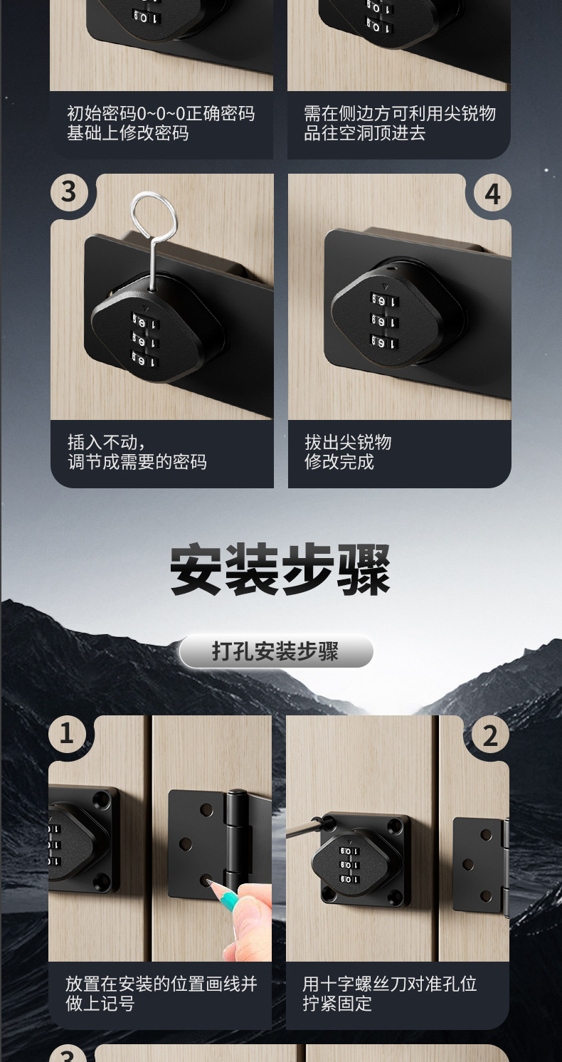 펀치없는 서랍 잠금 암호 잠금 캐비닛 도어 캐비닛 잠금 장치 더블 오픈 파일 캐비닛 냉장고 사물함 슬라이딩 도어 잠금 장치