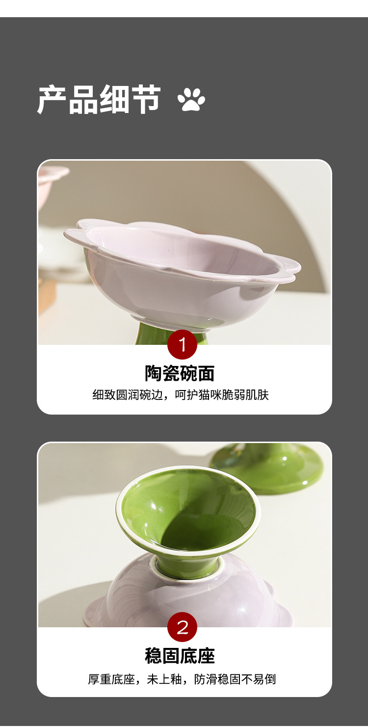 꽃 고양이 그릇 세라믹 높은 발 고양이 음식 분지 안티 노크 보호 자궁 경부 척추 음식 접시 고양이 용품 통조림 고양이 음식 물 그릇