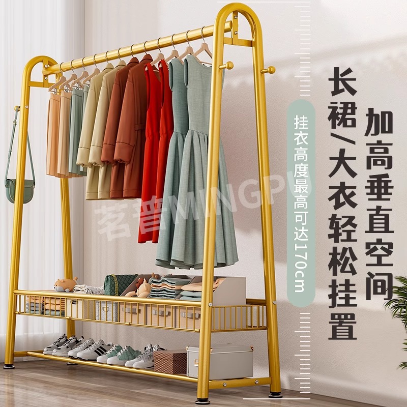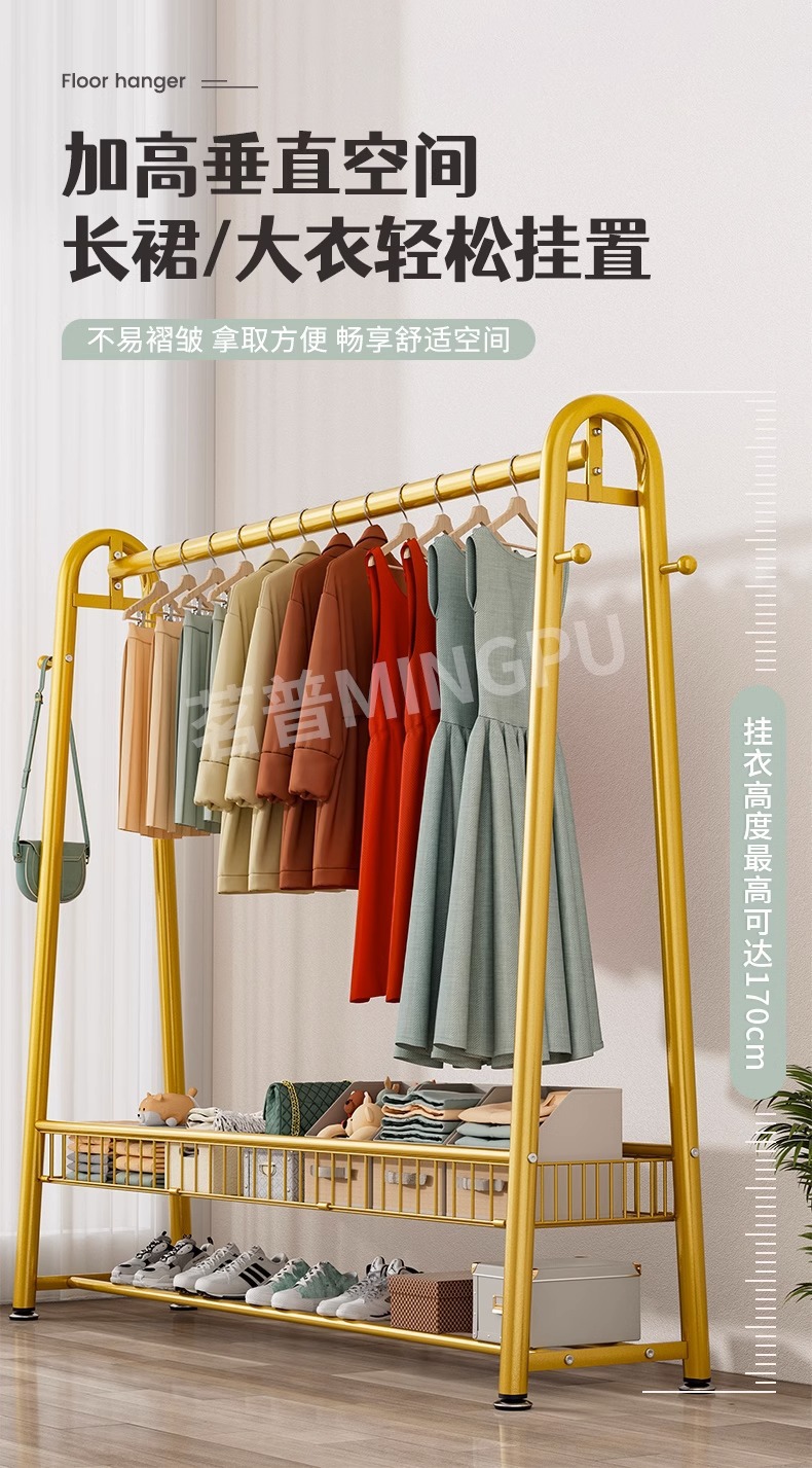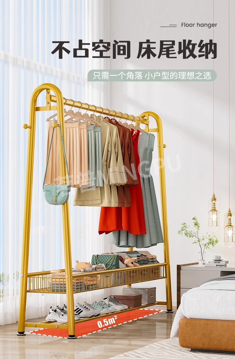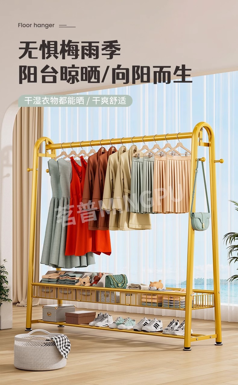 간단한 옷 옷걸이 바닥 침실 가정용 옷 옷걸이 실내 코트 랙 발코니 옷 바닥로드 랙