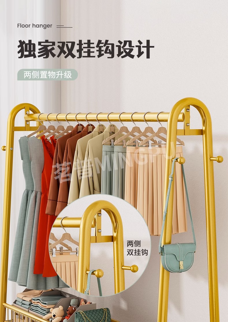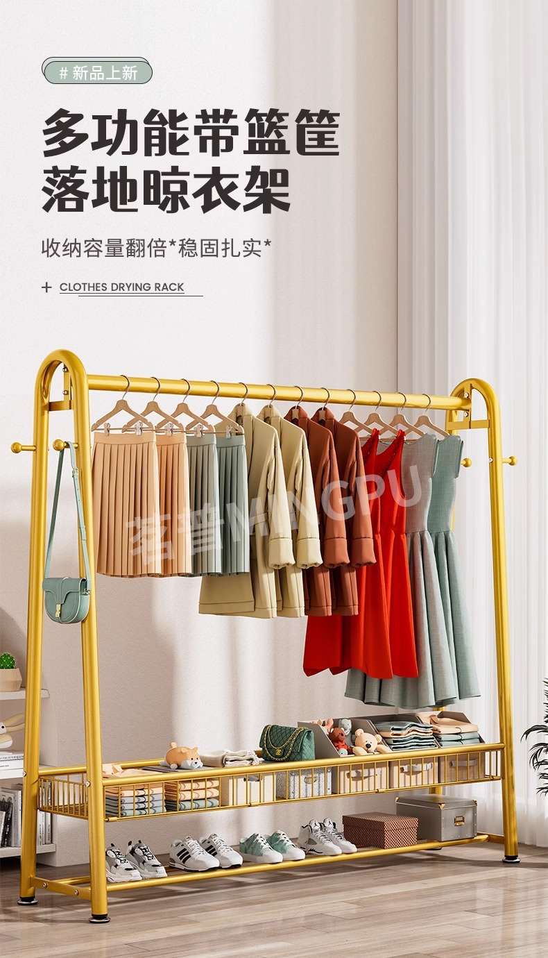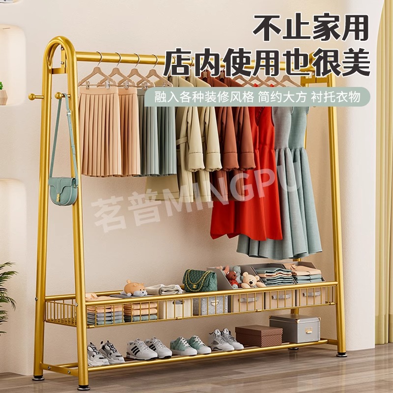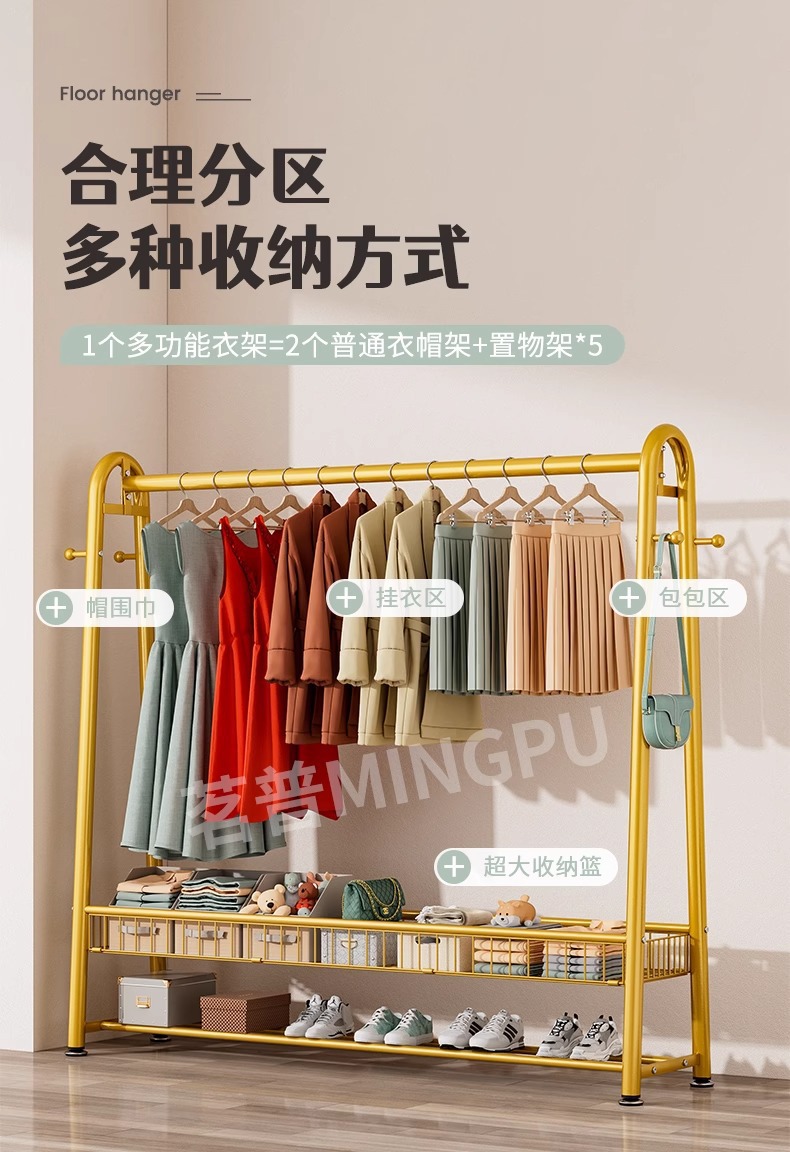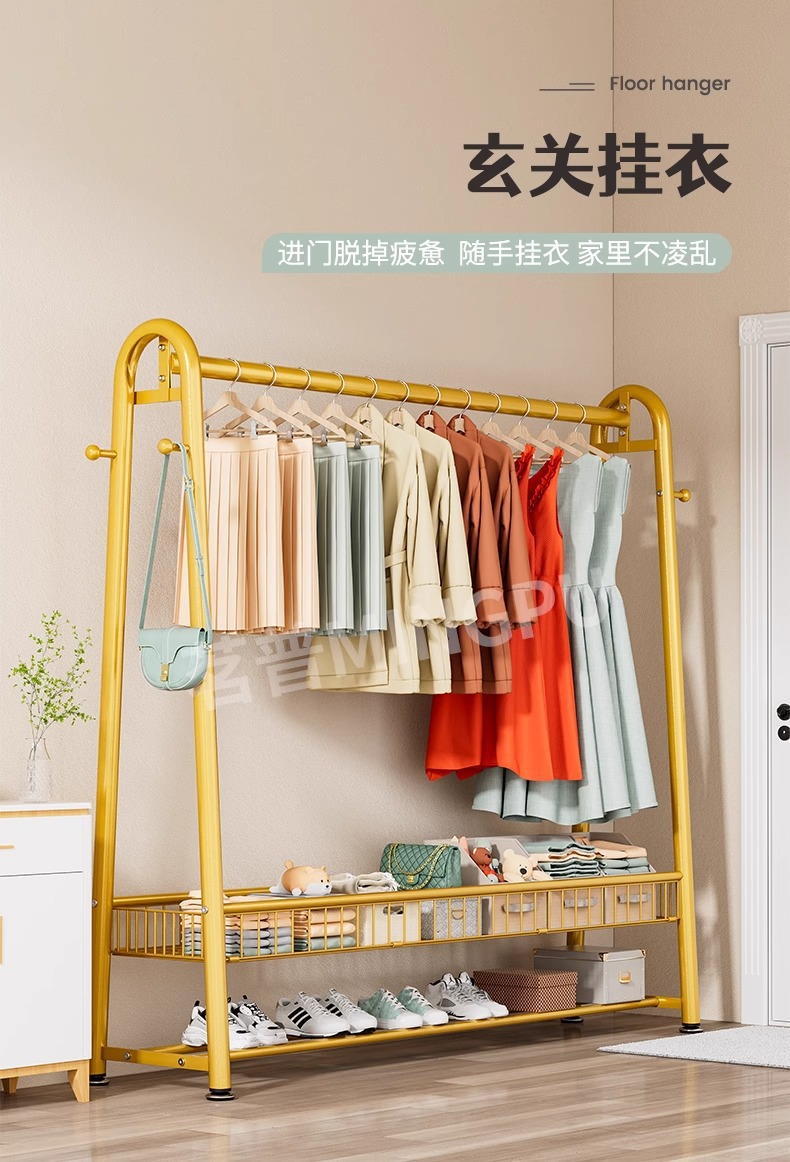 간단한 옷 옷걸이 바닥 침실 가정용 옷 옷걸이 실내 코트 랙 발코니 옷 바닥로드 랙