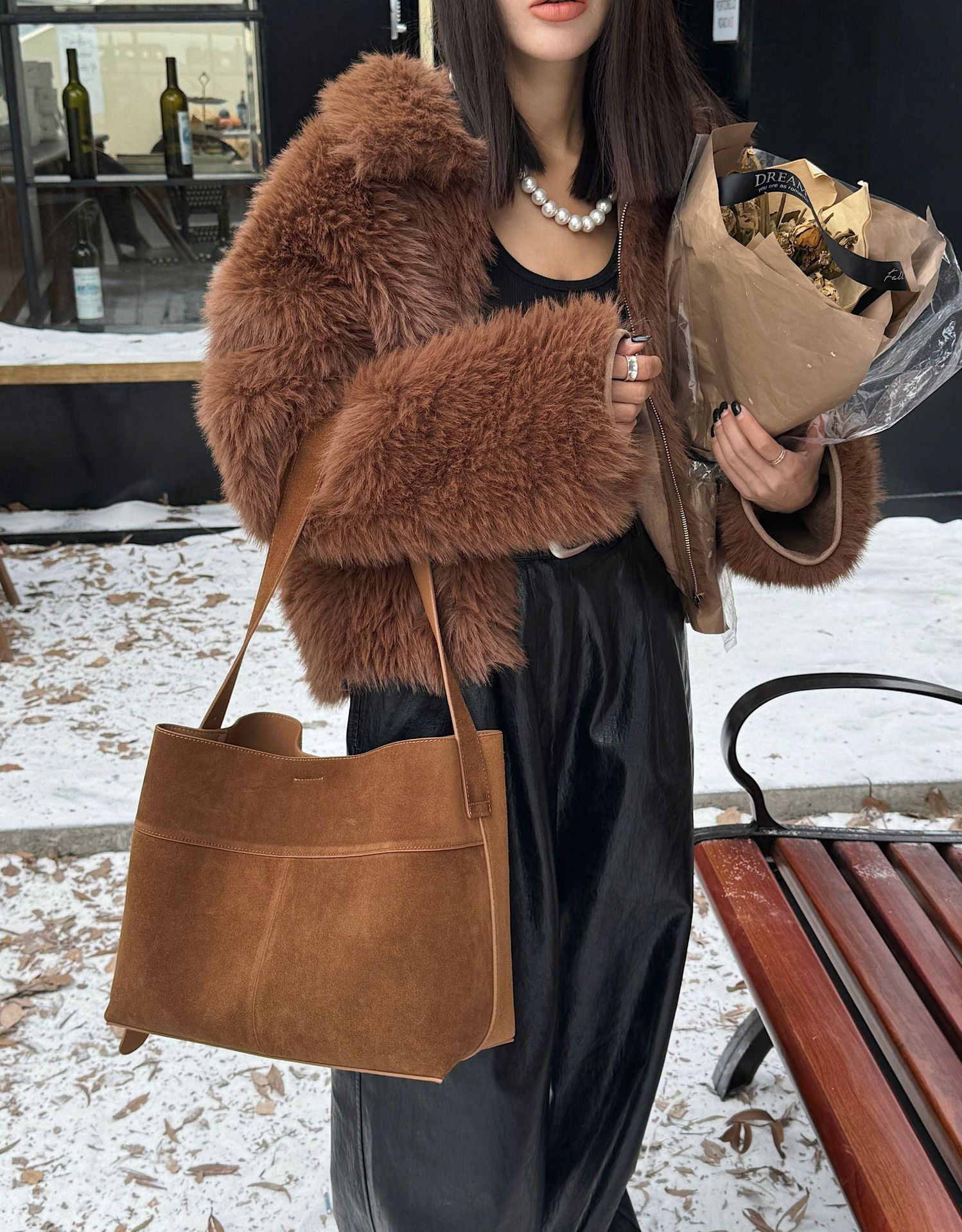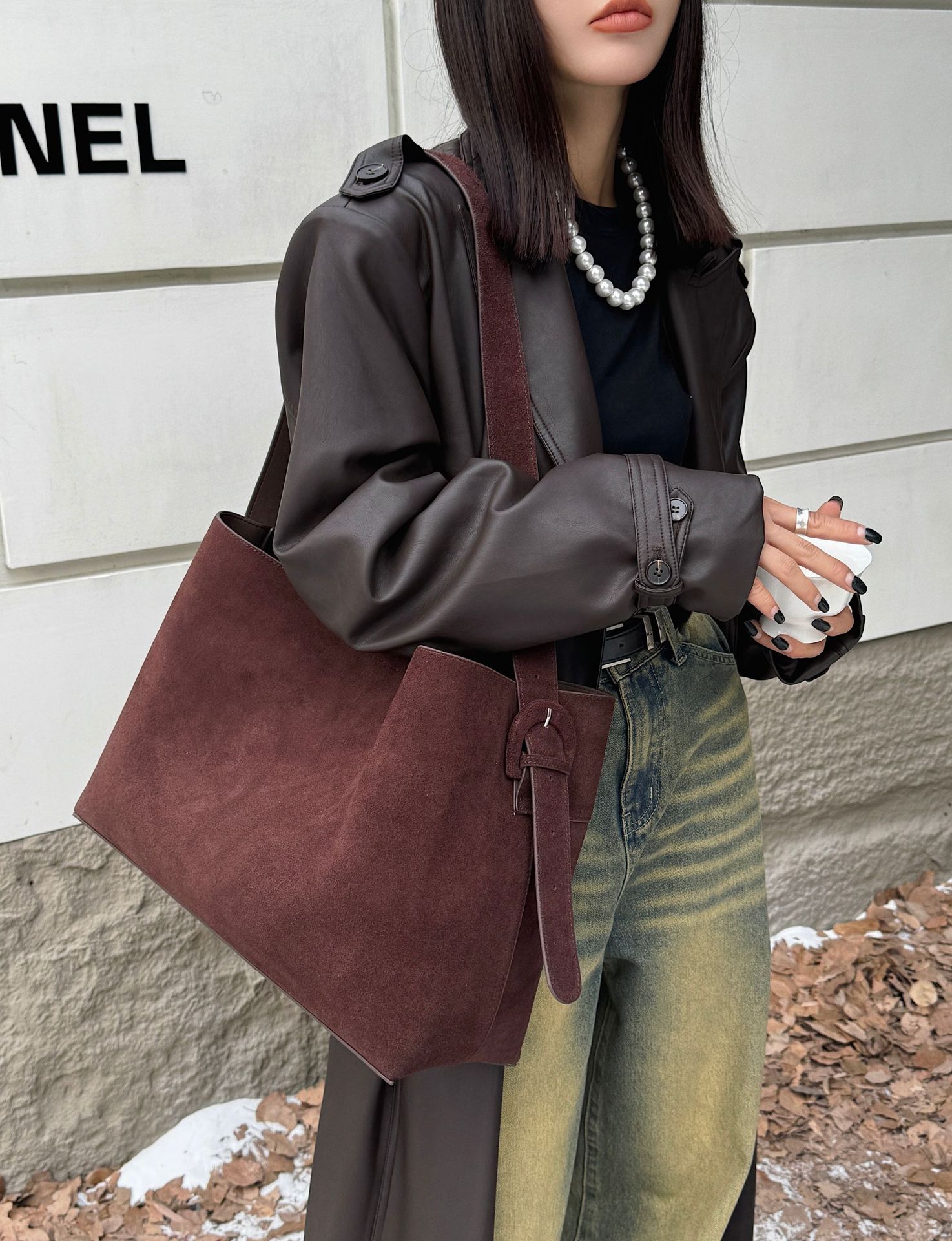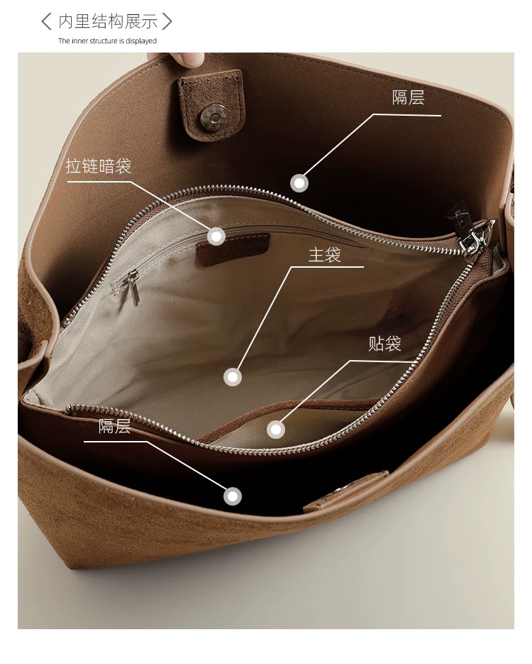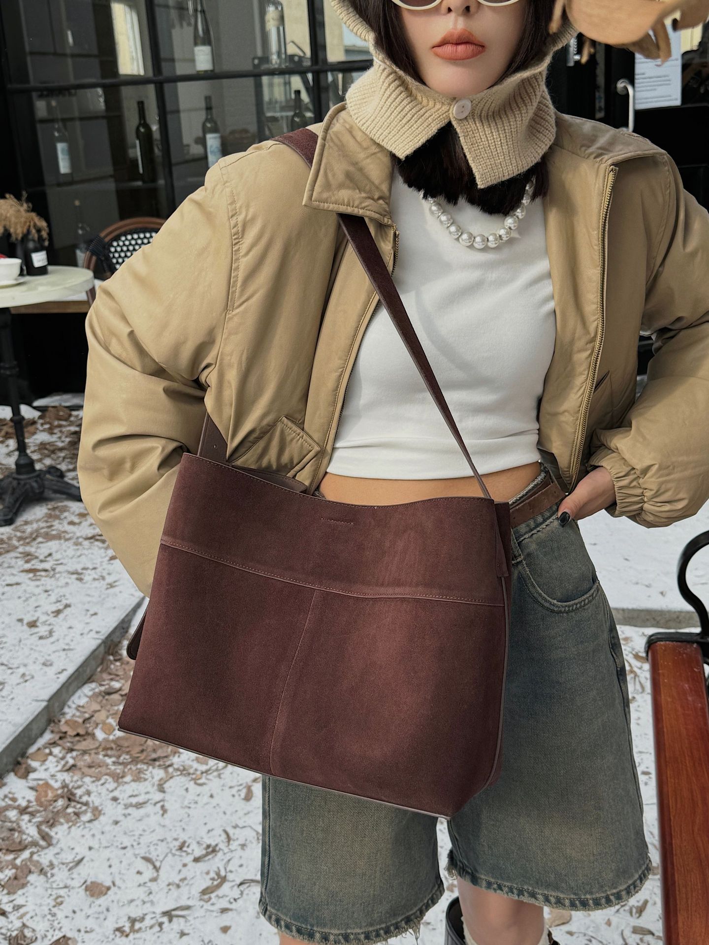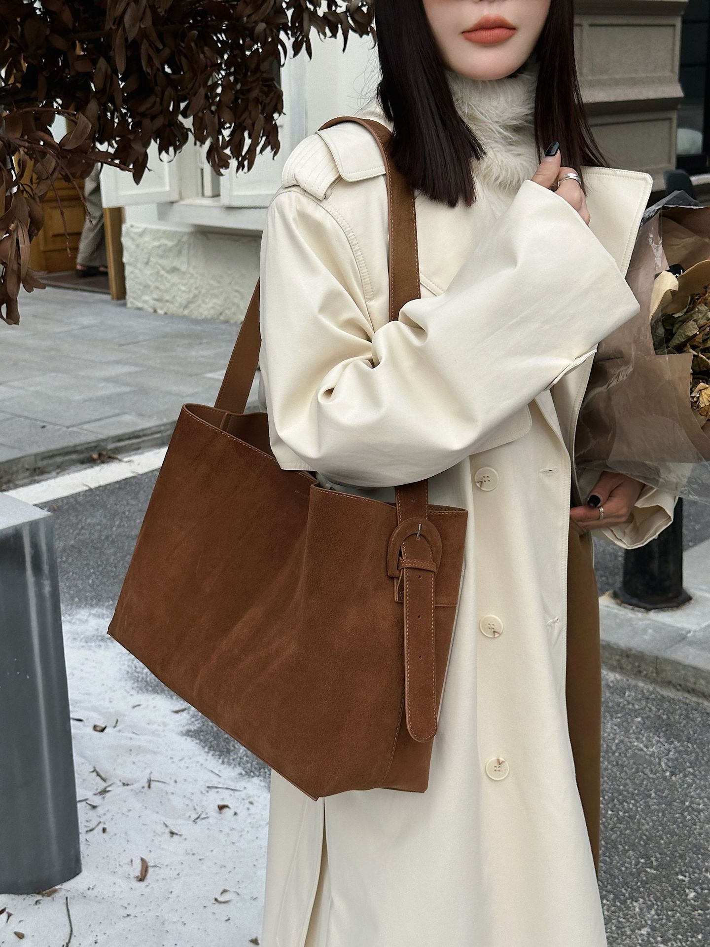 여성을위한 누벅 가죽 토트 백 가을, 겨울 새로운 고급 정품 가죽 대용량 패션 통근 어깨 크로스 바디 백