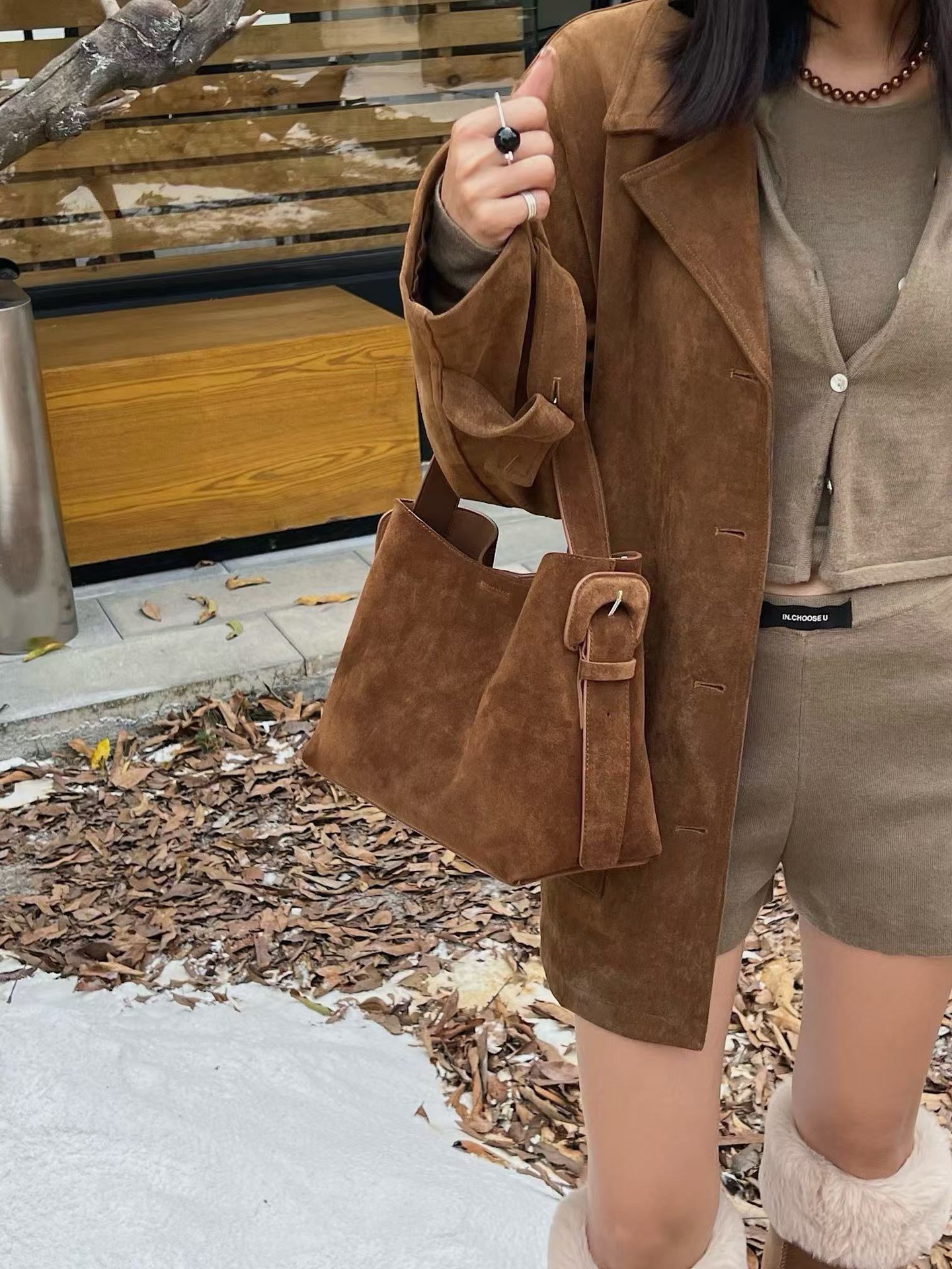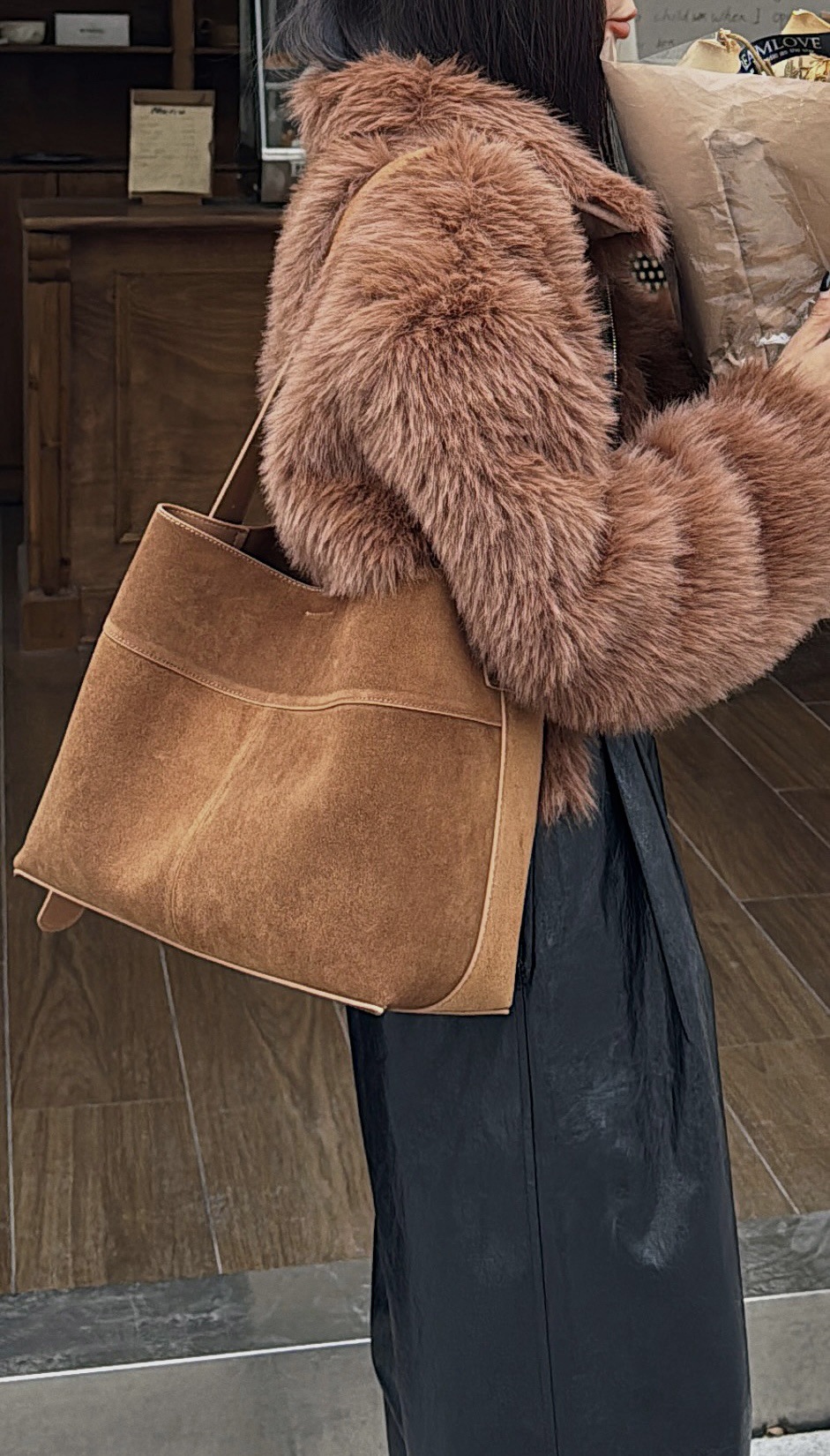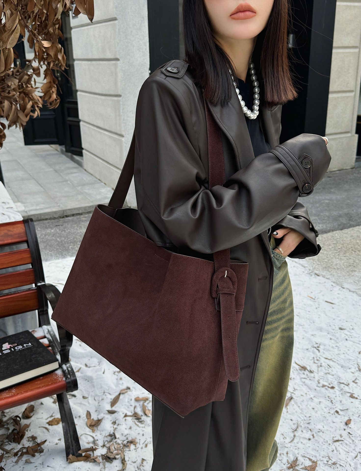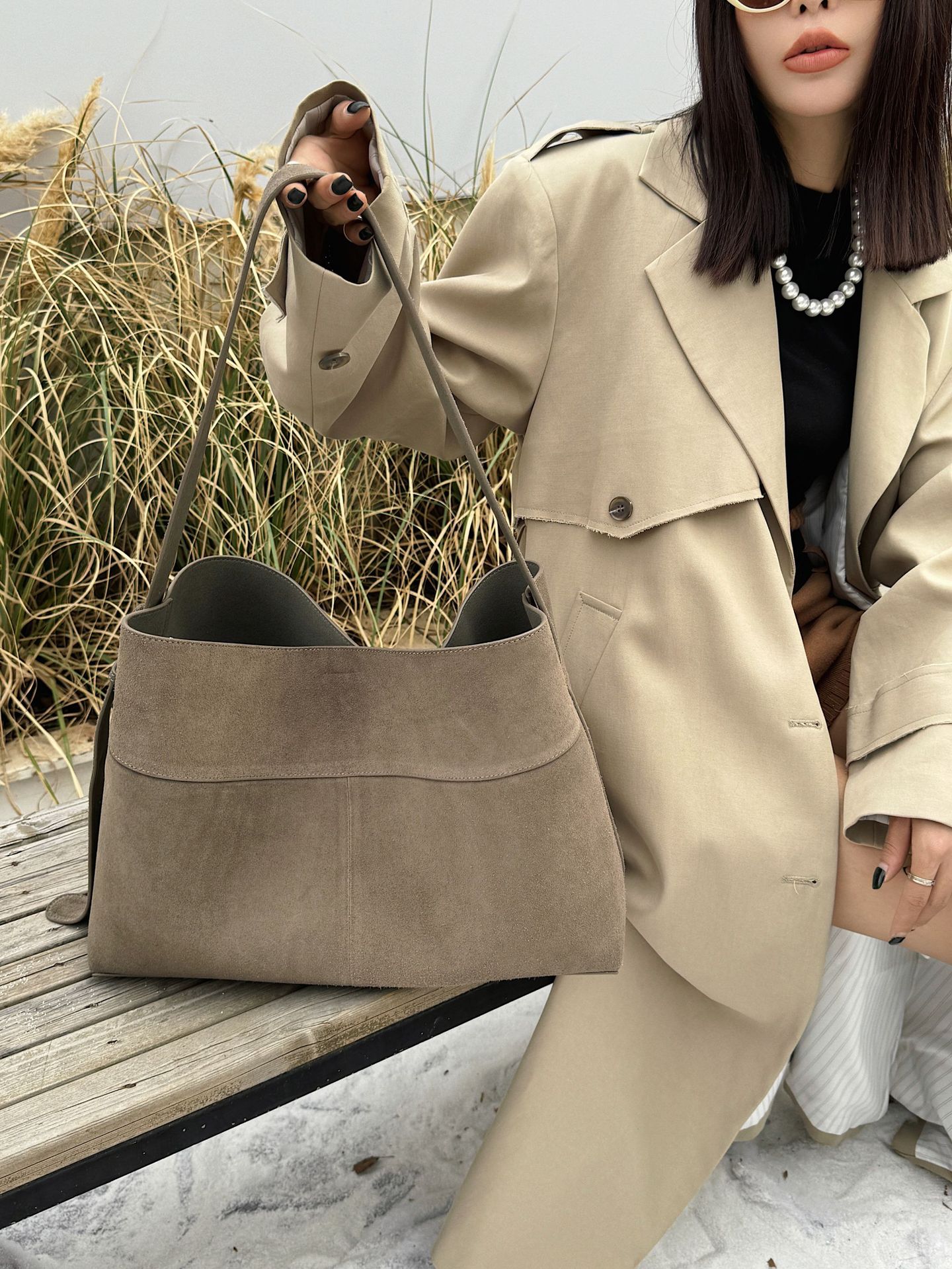 여성을위한 누벅 가죽 토트 백 가을, 겨울 새로운 고급 정품 가죽 대용량 패션 통근 어깨 크로스 바디 백