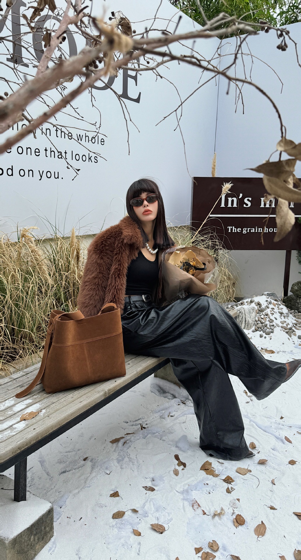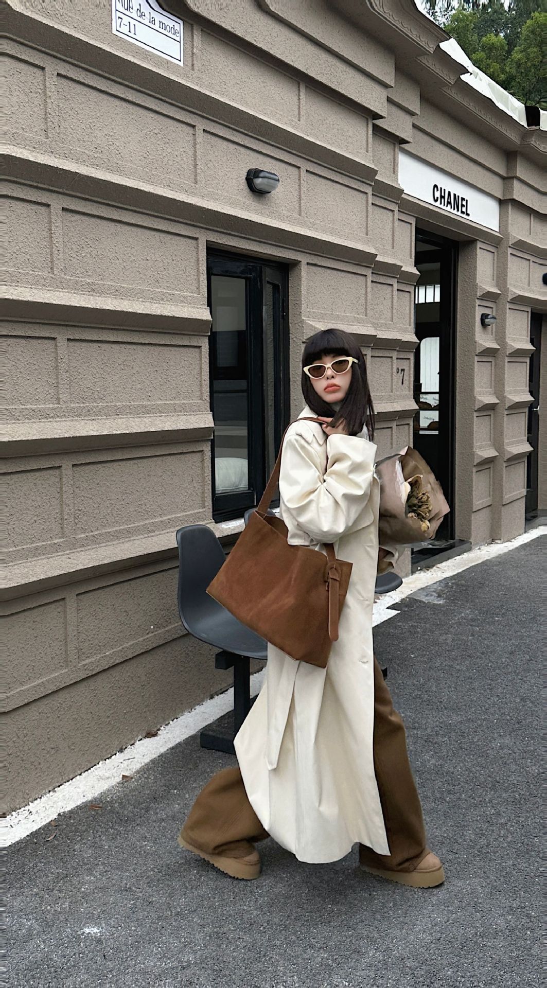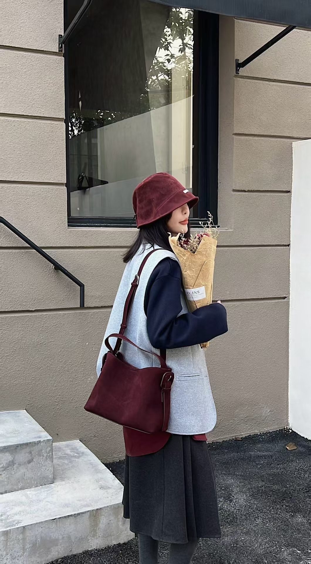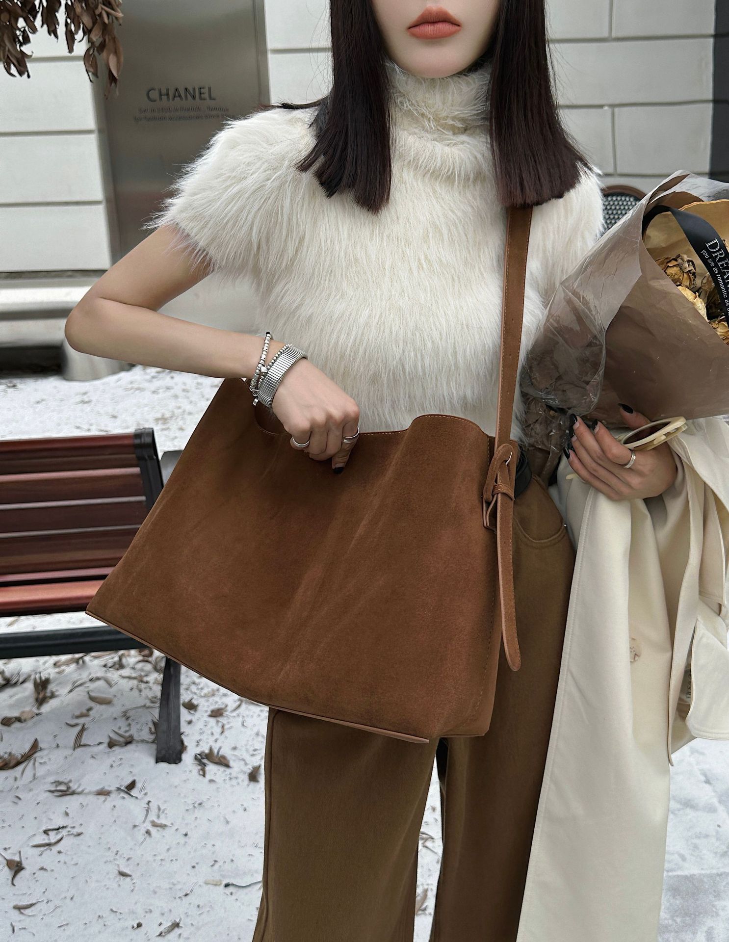 여성을위한 누벅 가죽 토트 백 가을, 겨울 새로운 고급 정품 가죽 대용량 패션 통근 어깨 크로스 바디 백