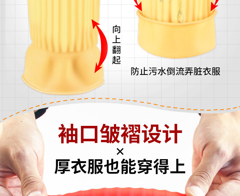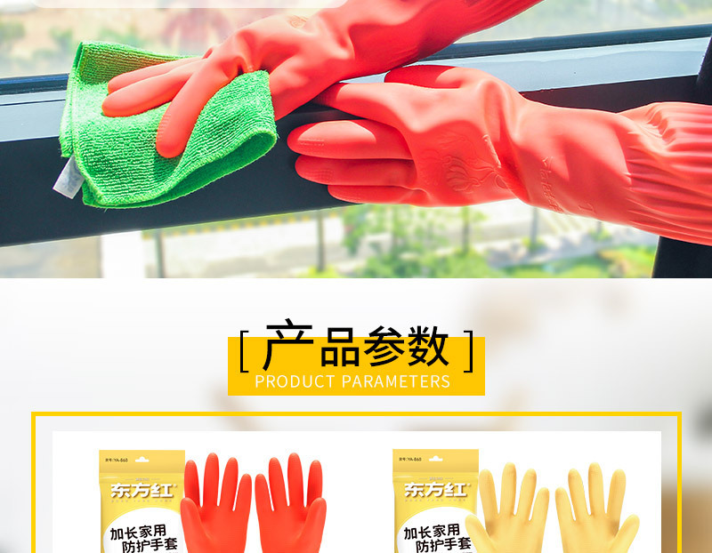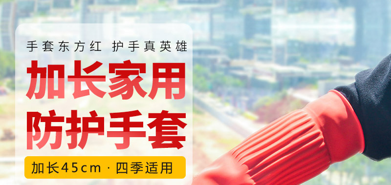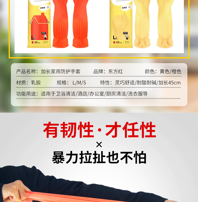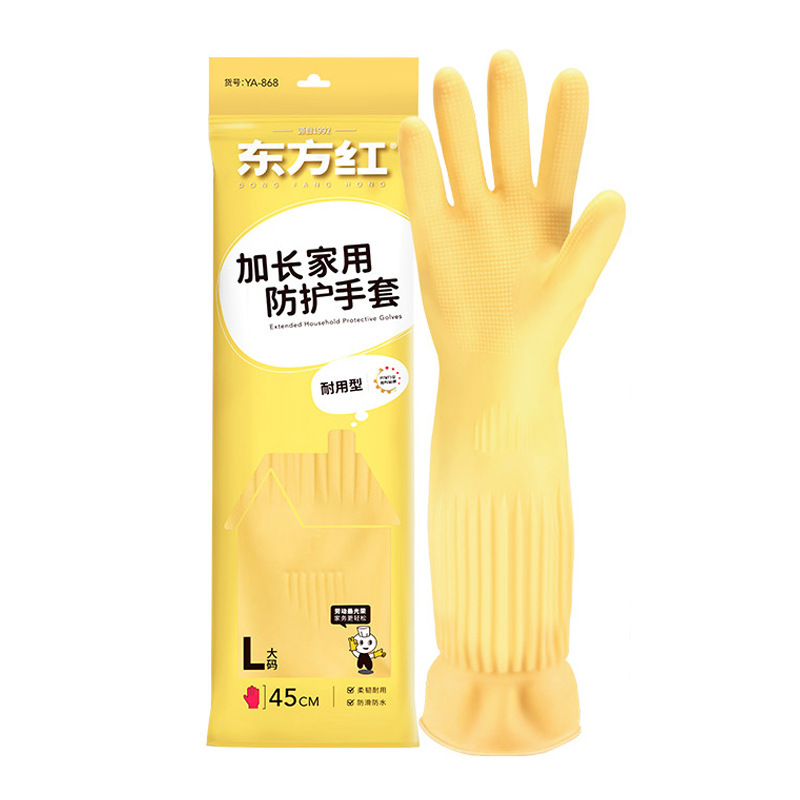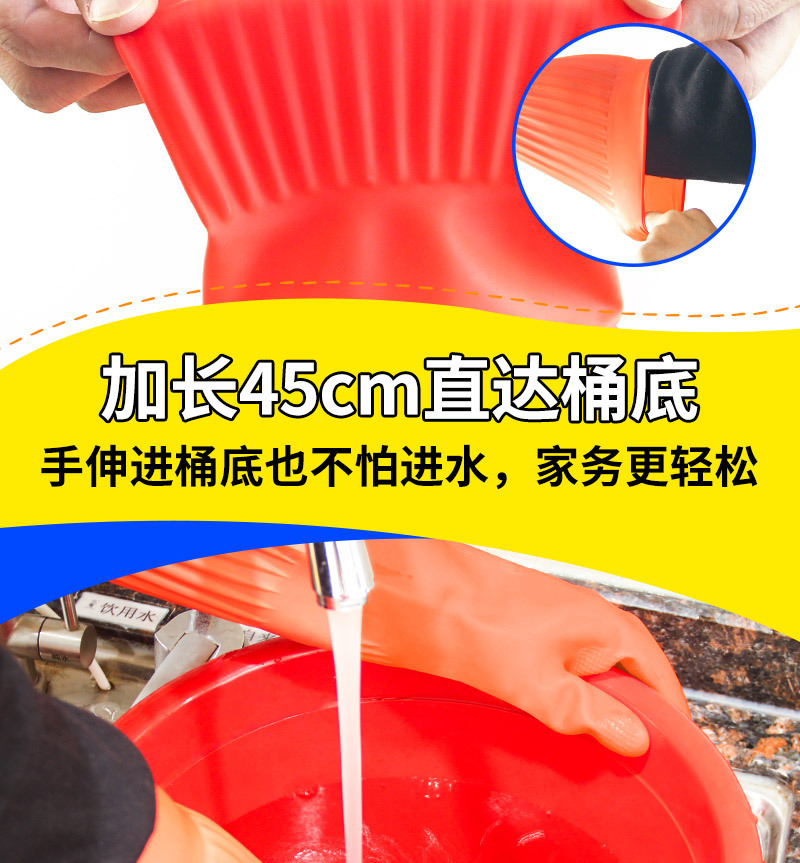 Dongfanghong 두꺼운 고무 라텍스 장갑 내마모성 방수 고무 플라스틱 슬리브 노동 보호 식기 가정용 주방 45cm