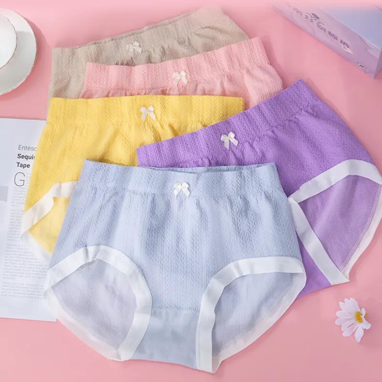 [면 중간 높은 허리 암모니아 코튼 바지] 편안한 부드러운 속옷 피부 친화적 웜우드 온도 변화 속옷 선물 상자 여성용 속옷