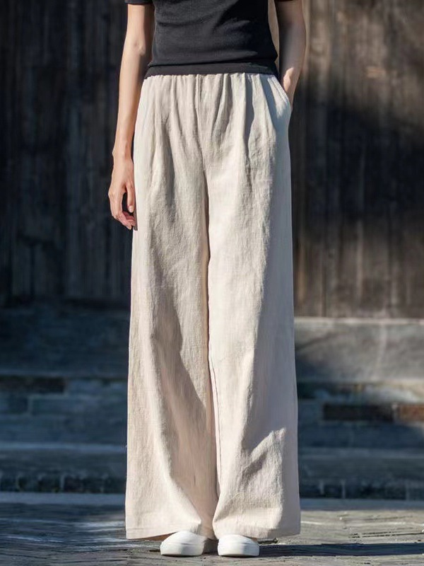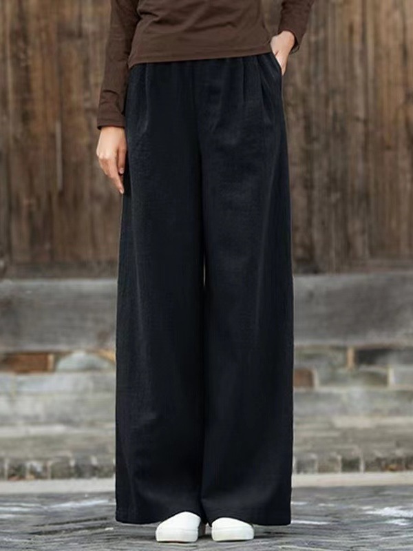 2023 년 가을 면화와 리넨 여자 예술적 레트로 캐주얼 바지 여자 리넨 올 매치 무슬림 와이드 레그 바지