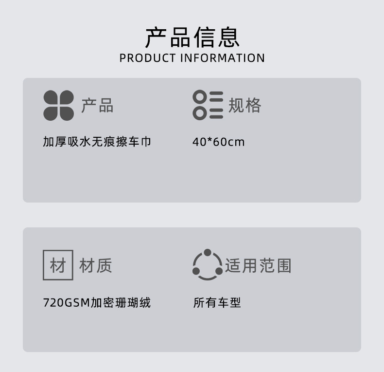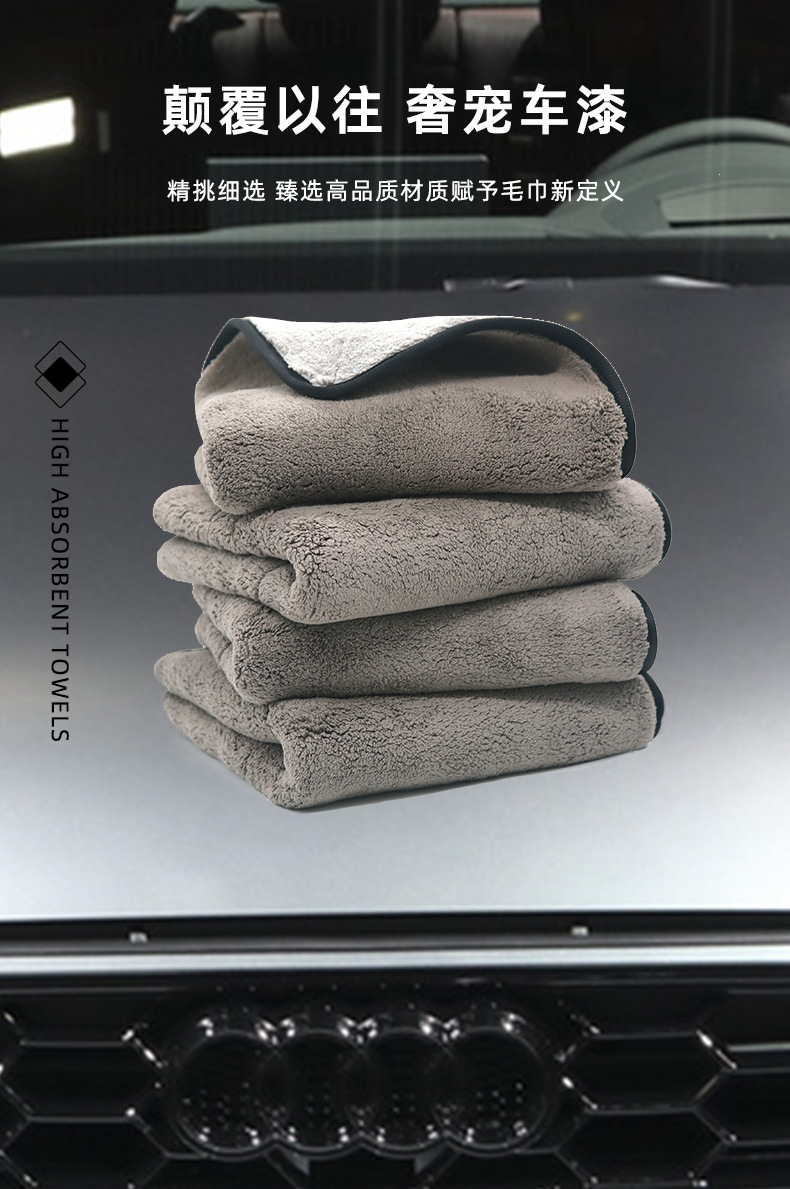 [재고 있음] 산호 벨벳 두꺼운 고급 차량용 청소 천 흡수성 세차 타월 무흔적 양면 내부 청소용
