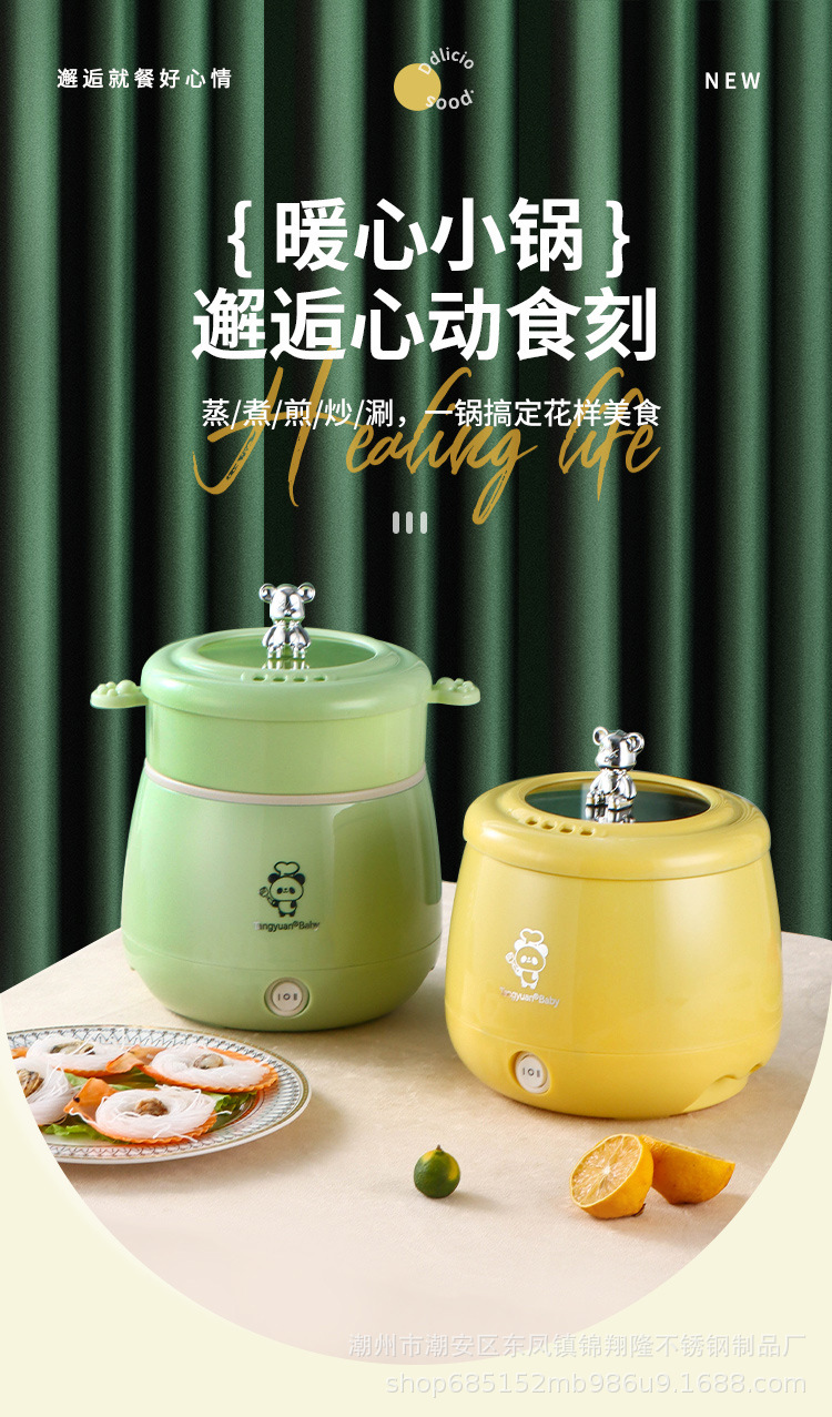 전기 밥솥 다기능 휴대용 찜기 논스틱 팬 가정용 기숙사 사무실 전기밥솥 보온 기능