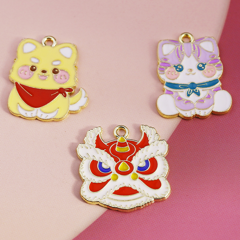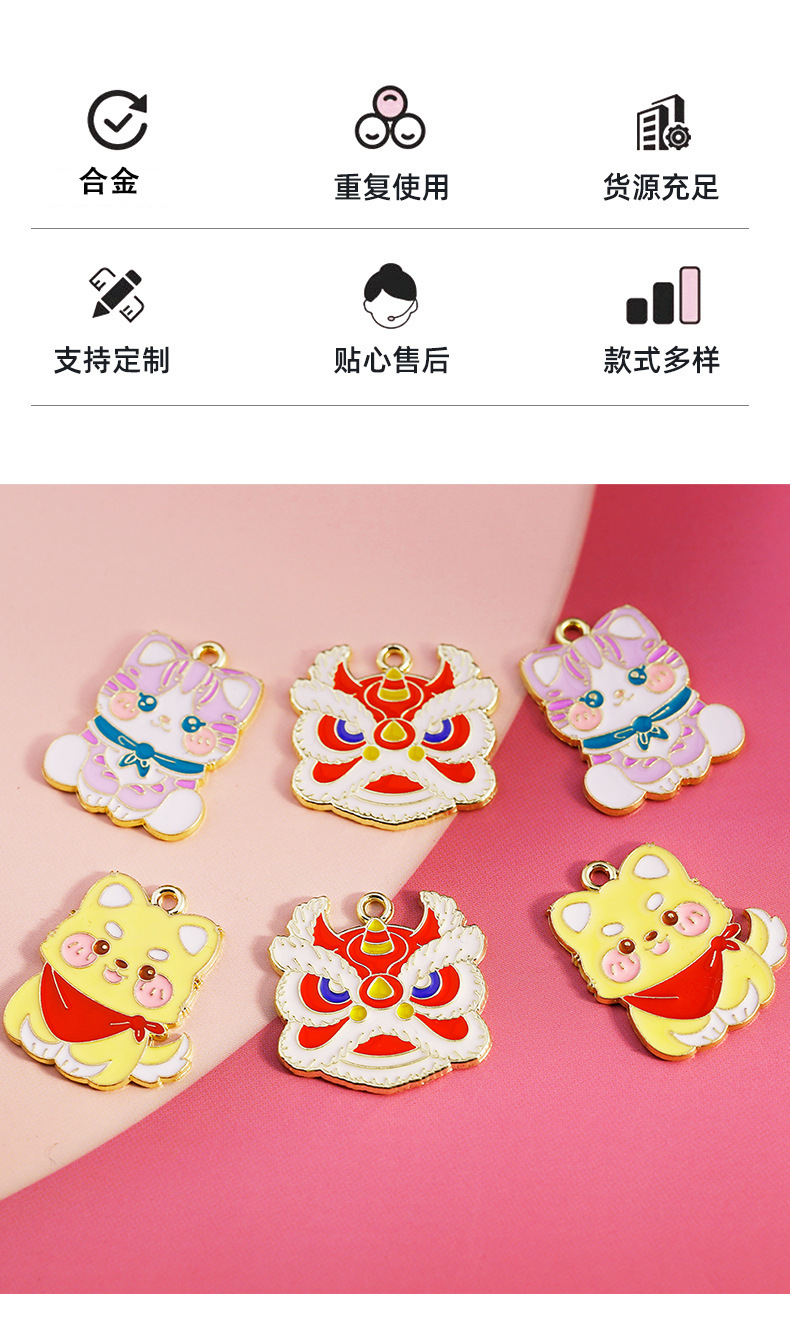 가을과 겨울 고양이와 개 DIY 보석 액세서리 귀여운 사자 춤 동물 목걸이 펜던트 키 체인 펜던트 소재 도매