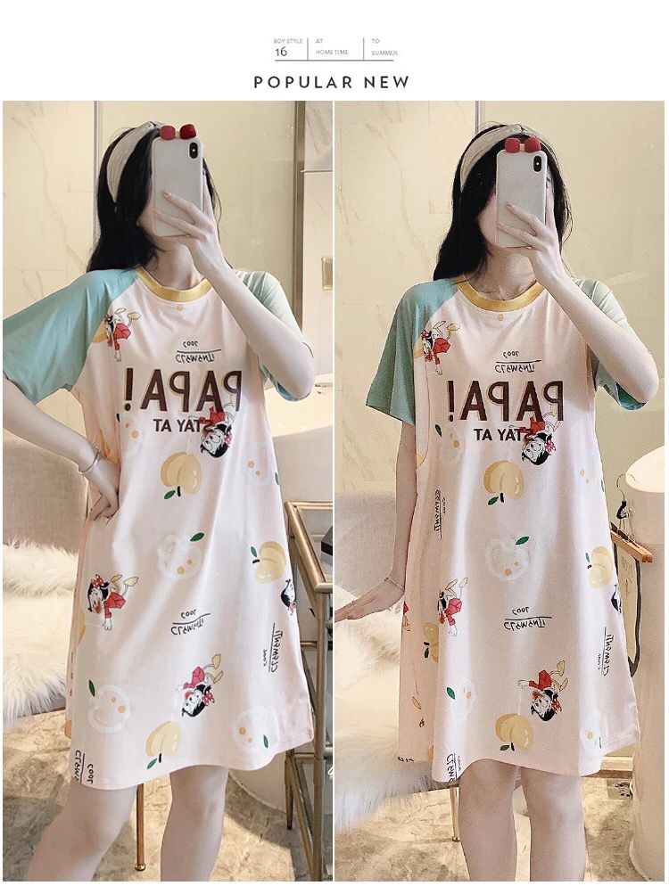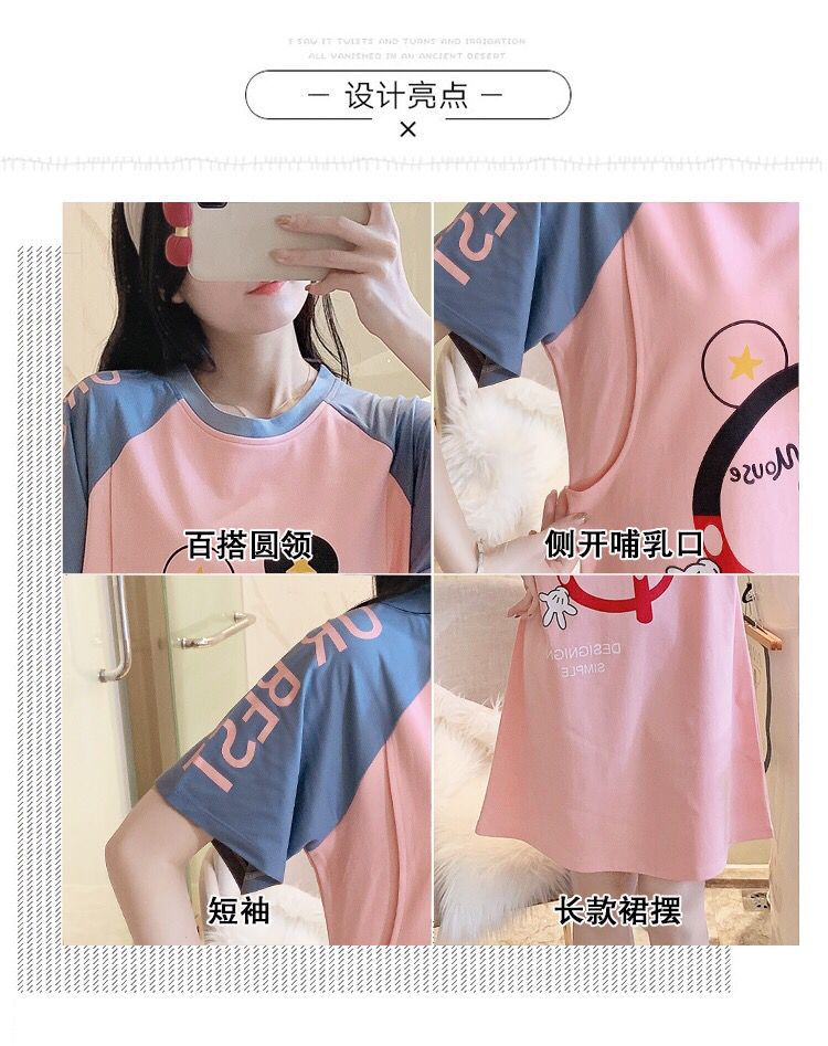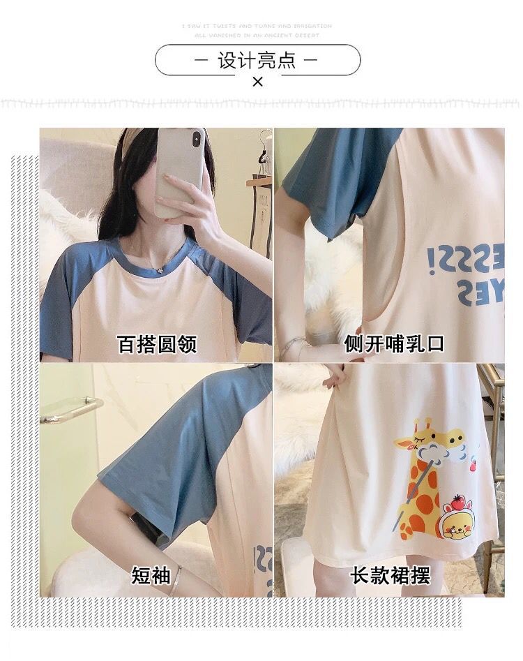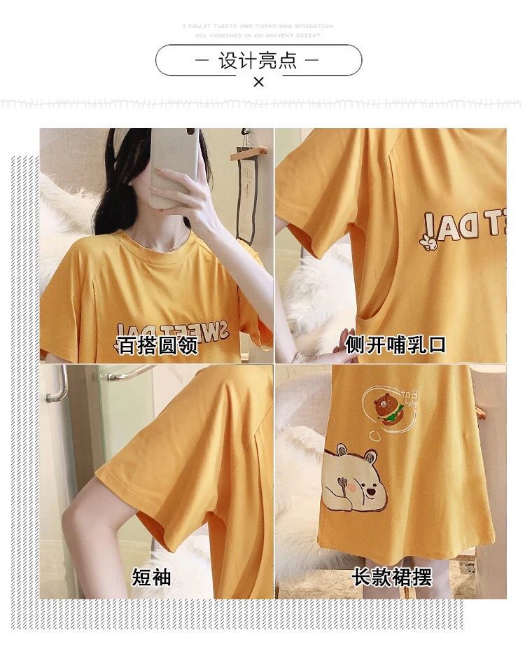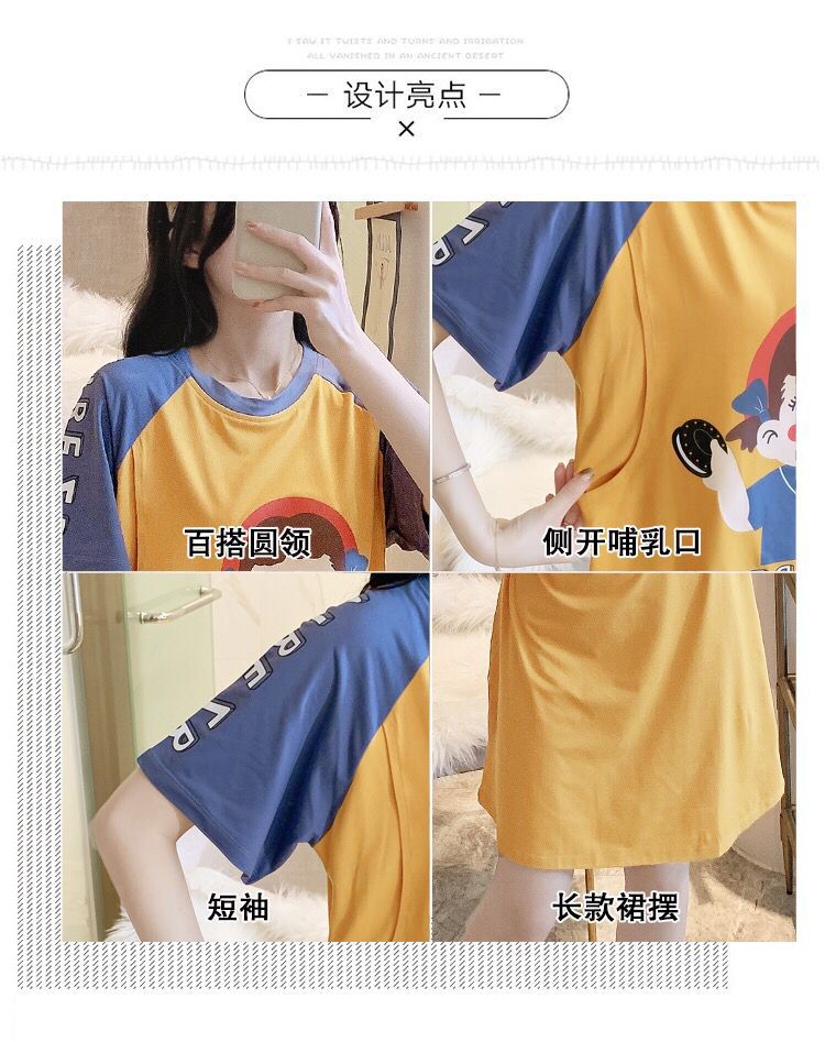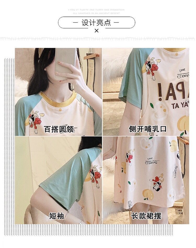 반소매 잠옷 임산부 원피스 여름 여성 수유 옷 산후 얇은 간호 여름 모성 잠옷