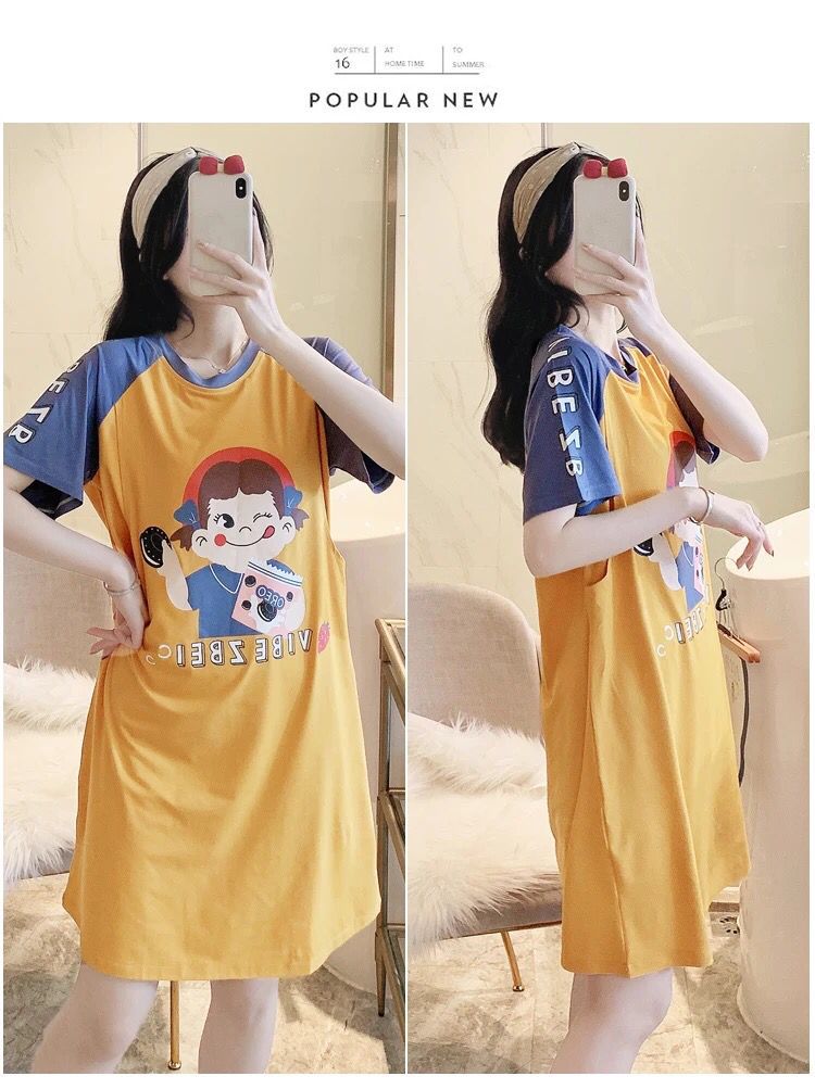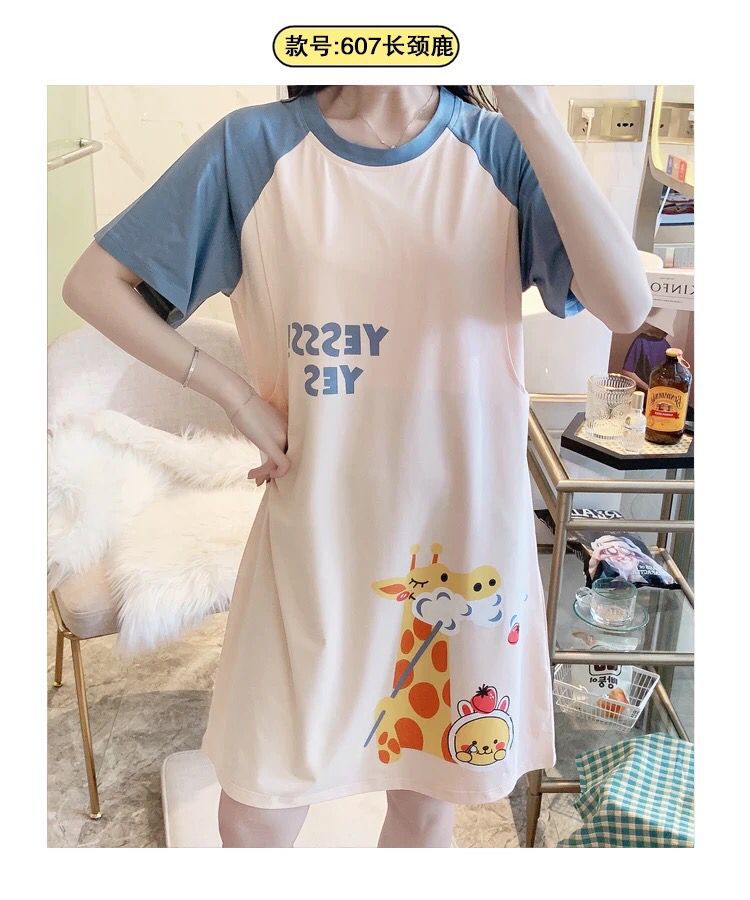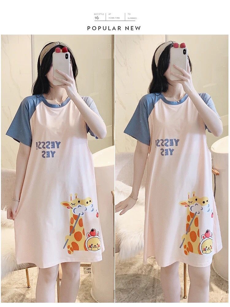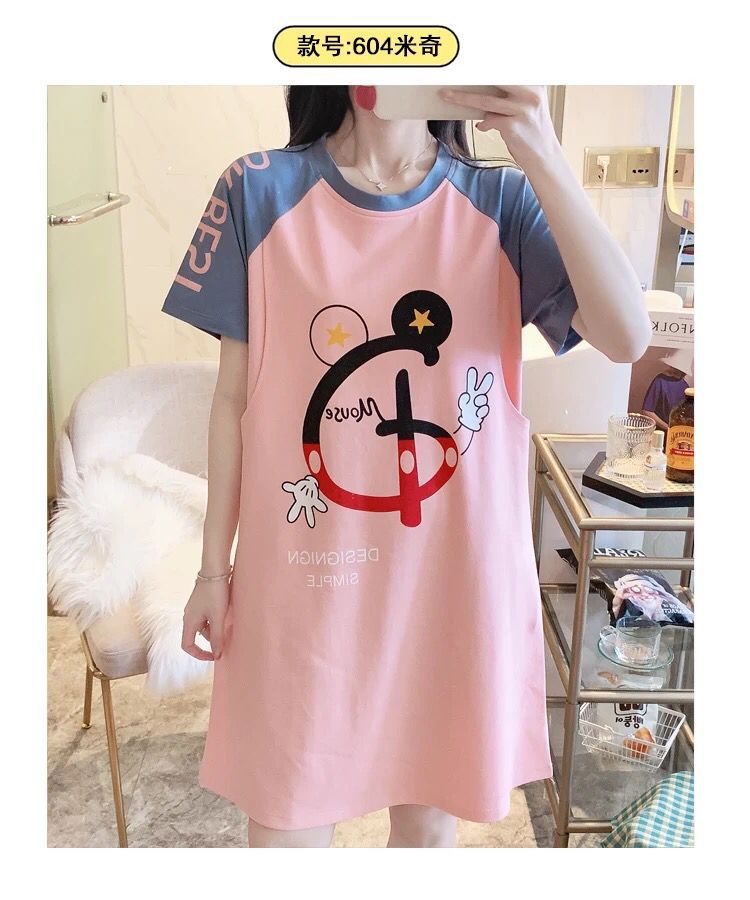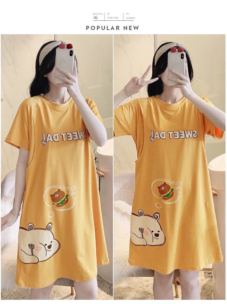 반소매 잠옷 임산부 원피스 여름 여성 수유 옷 산후 얇은 간호 여름 모성 잠옷