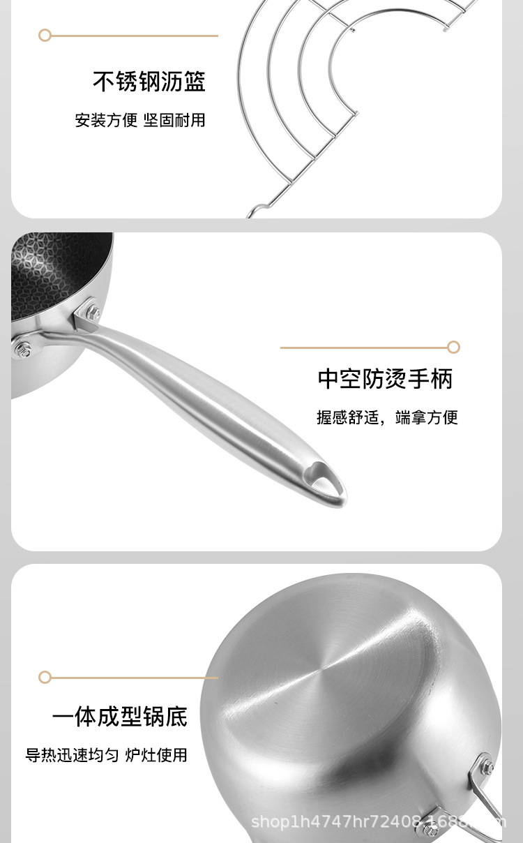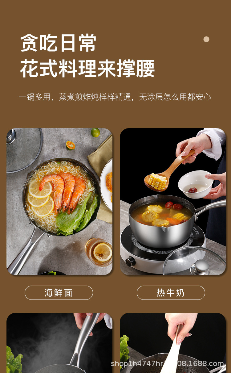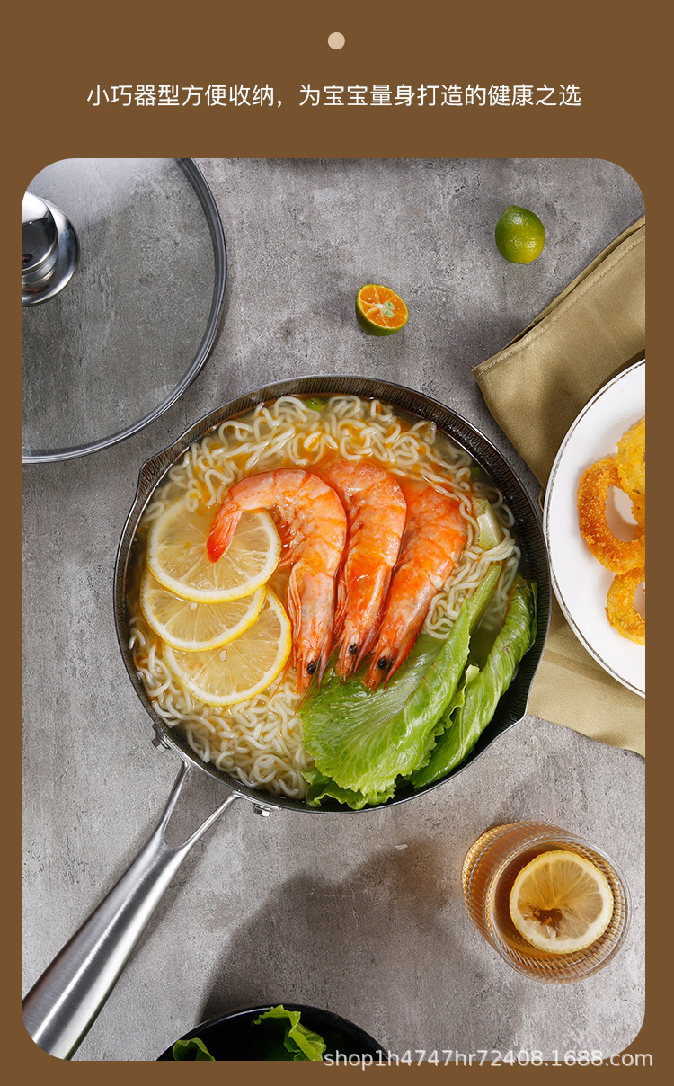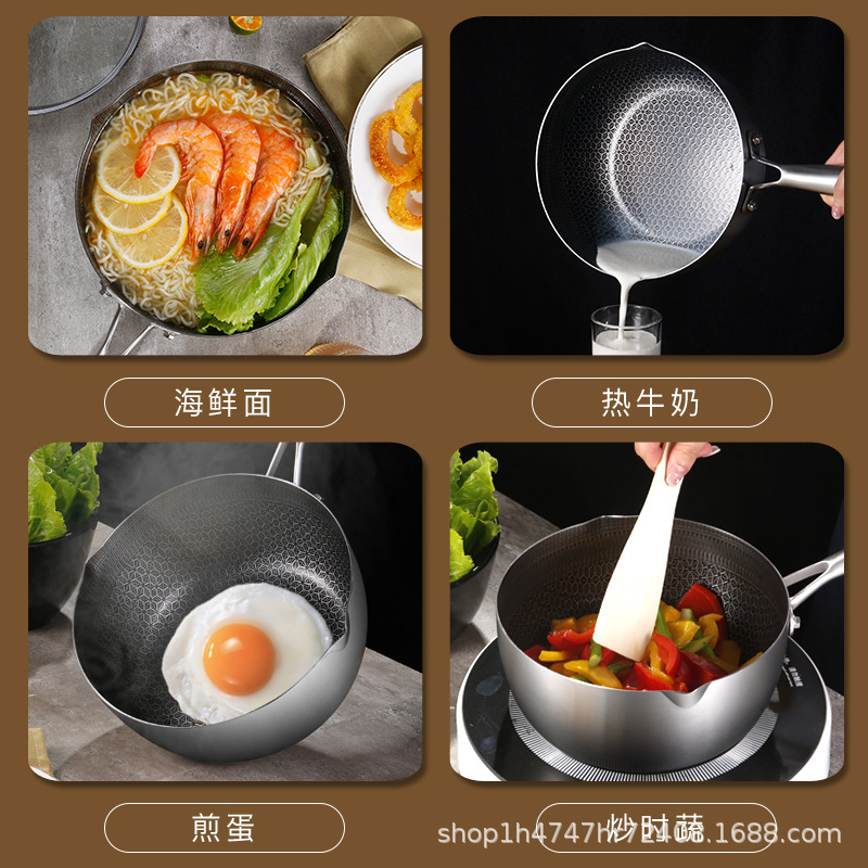 두꺼운 프라이팬 단면 벌집 붙지 않는 일본 이유식 보충 냄비 작은 우유 냄비 눈 편평한 냄비 튀김 인스턴트 국수 냄비