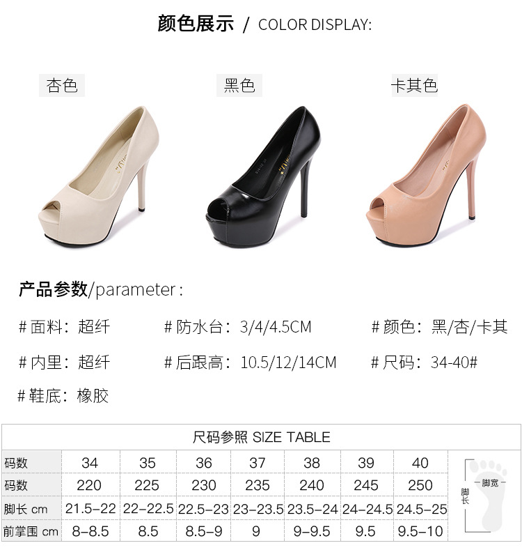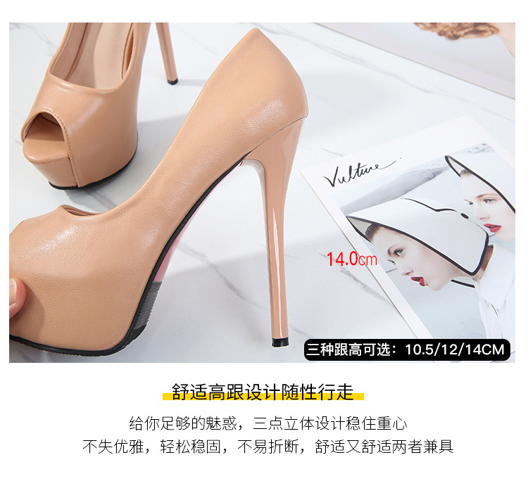 국경 간 전자 상거래 대외 무역 여성 신발 매트 가죽 하이힐 여성 스틸레토 힐 높은 방수 플랫폼 엿보기 발가락 신발 N914-20