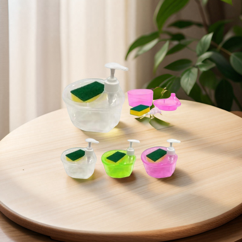 비누 디스펜서, 푸시형 냄비 세척 도구, 스틸 수세미 냄비 브러쉬, 주방 청소 도구