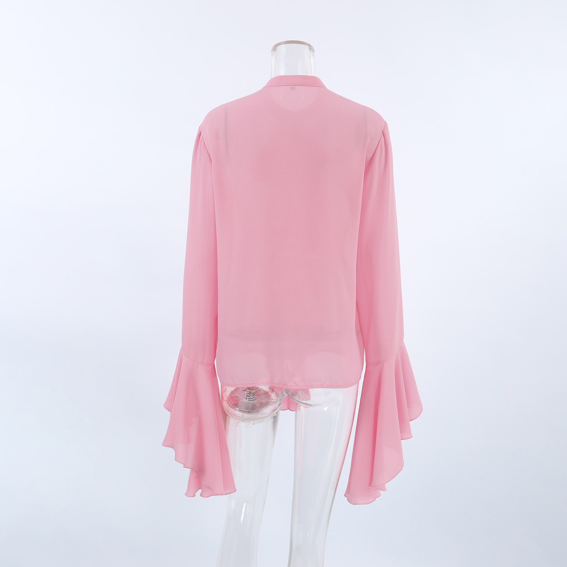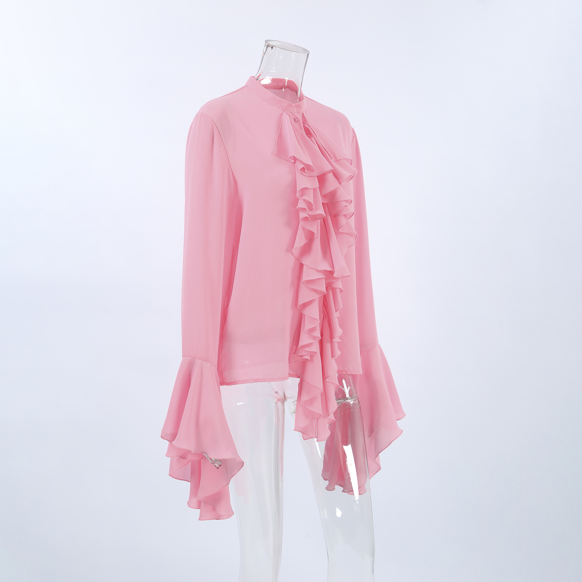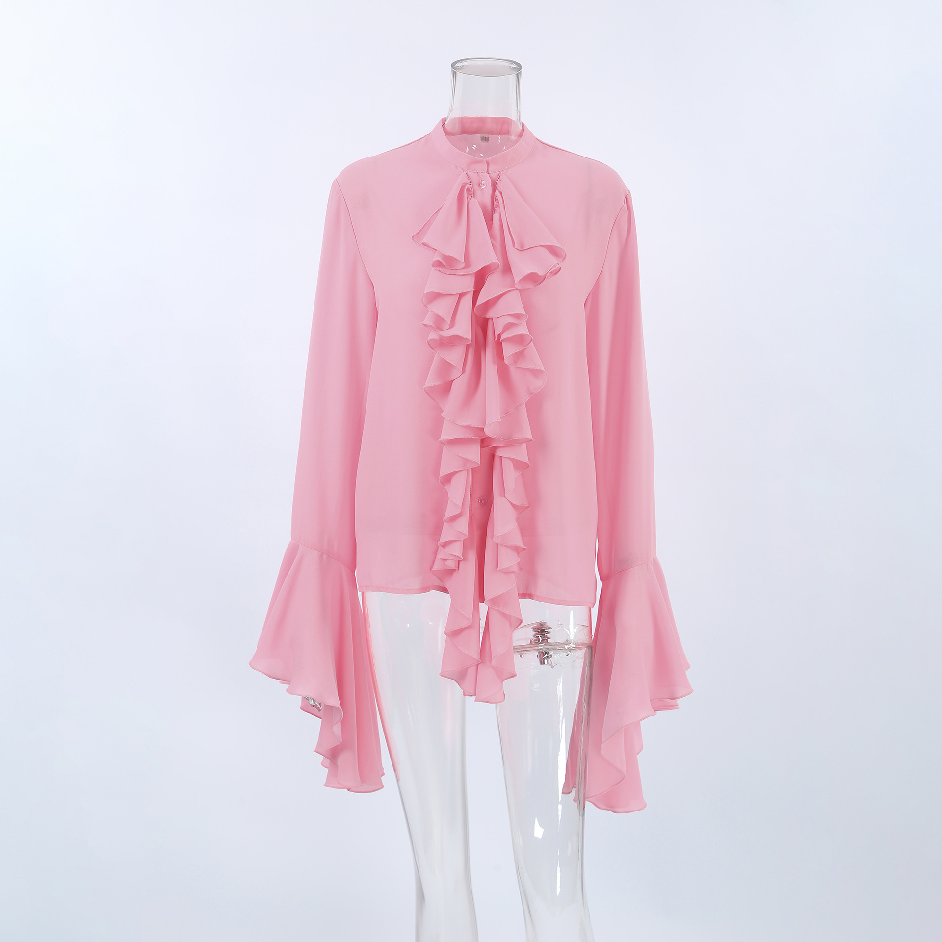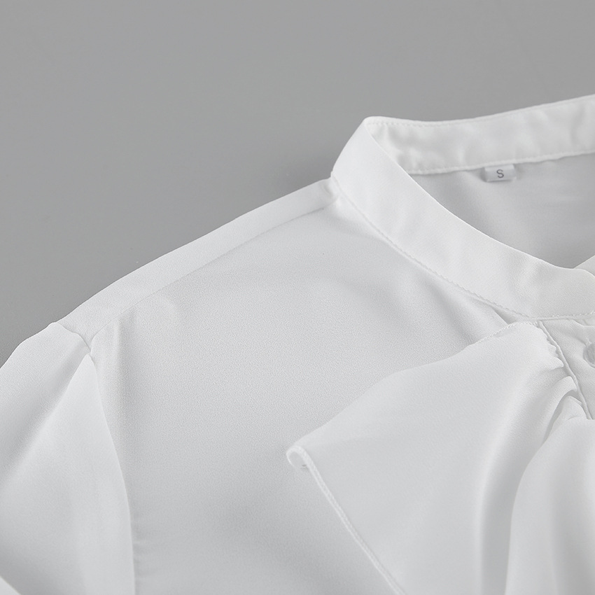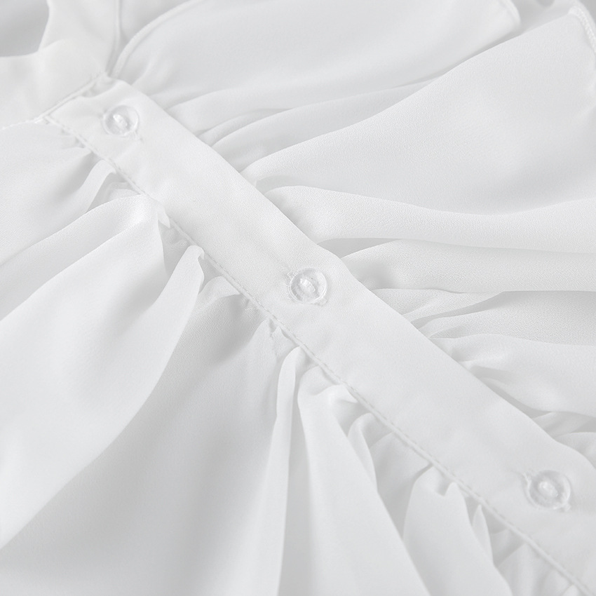 화이트 쉬폰 디자인 라운드넥 벨소매 러플 여성 셔츠 2025 유럽 및 미국 봄 여름 신상 패션 여성복