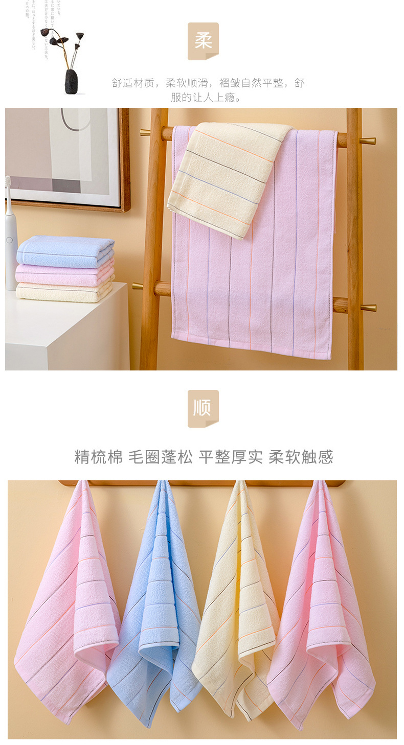 실크 부드러운 회전 컬러 스트라이프 얼굴 수건 상업 슈퍼 순수한면 타월 가정용 부드러운 흡수성 컬러 스트라이프 얼굴 수건 선물 수건
