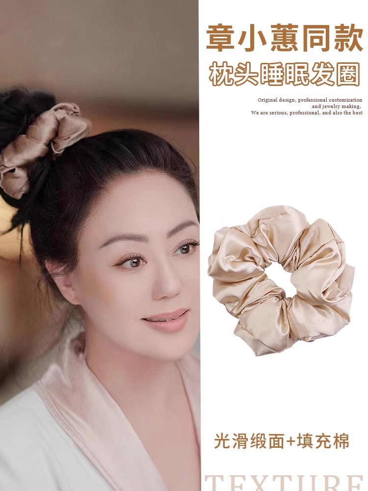 하이 엔드 느낌 프랑스 새틴 푹신한 수면 헤어 링 장 샤오 후이와 단색 지방 소시지 링 포니 테일 헤드 로프 여성