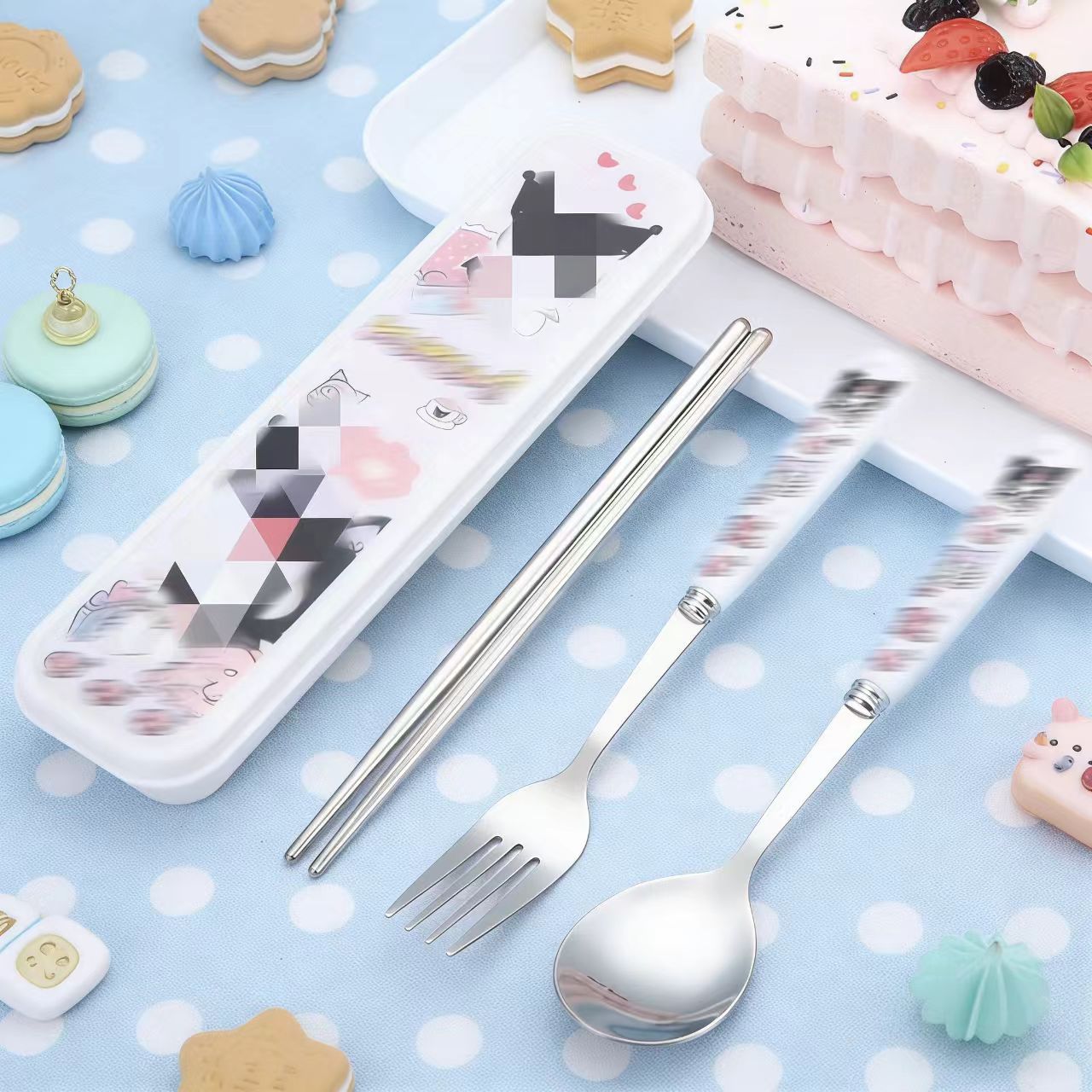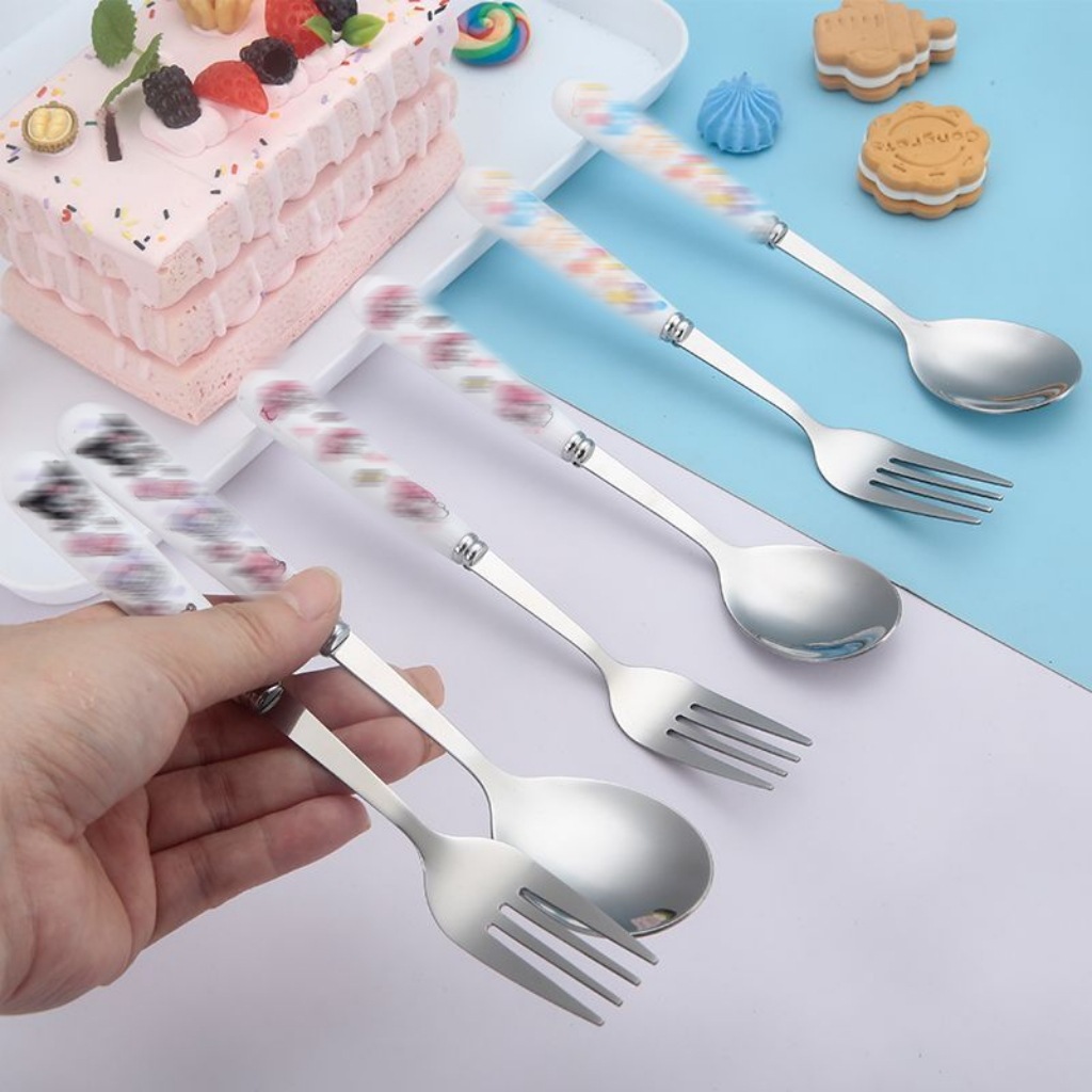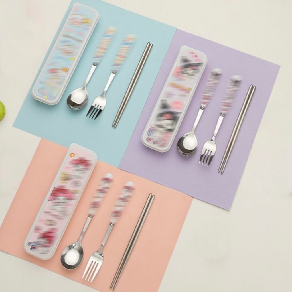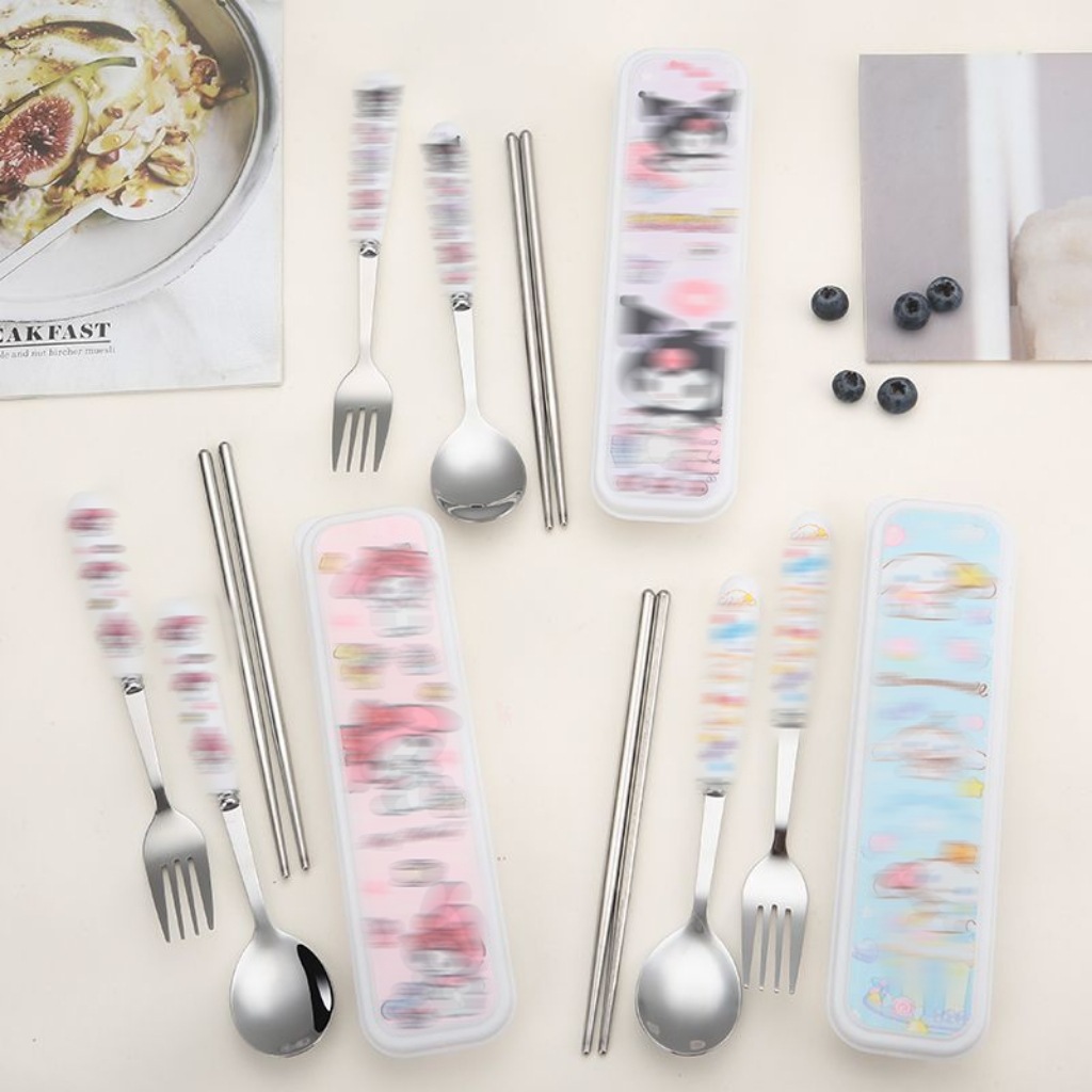 스테인레스 스틸 식기 3 피스 세트 회사원 학생 만화 휴대용 야외 캠핑 스푼 포크 젓가락 도매