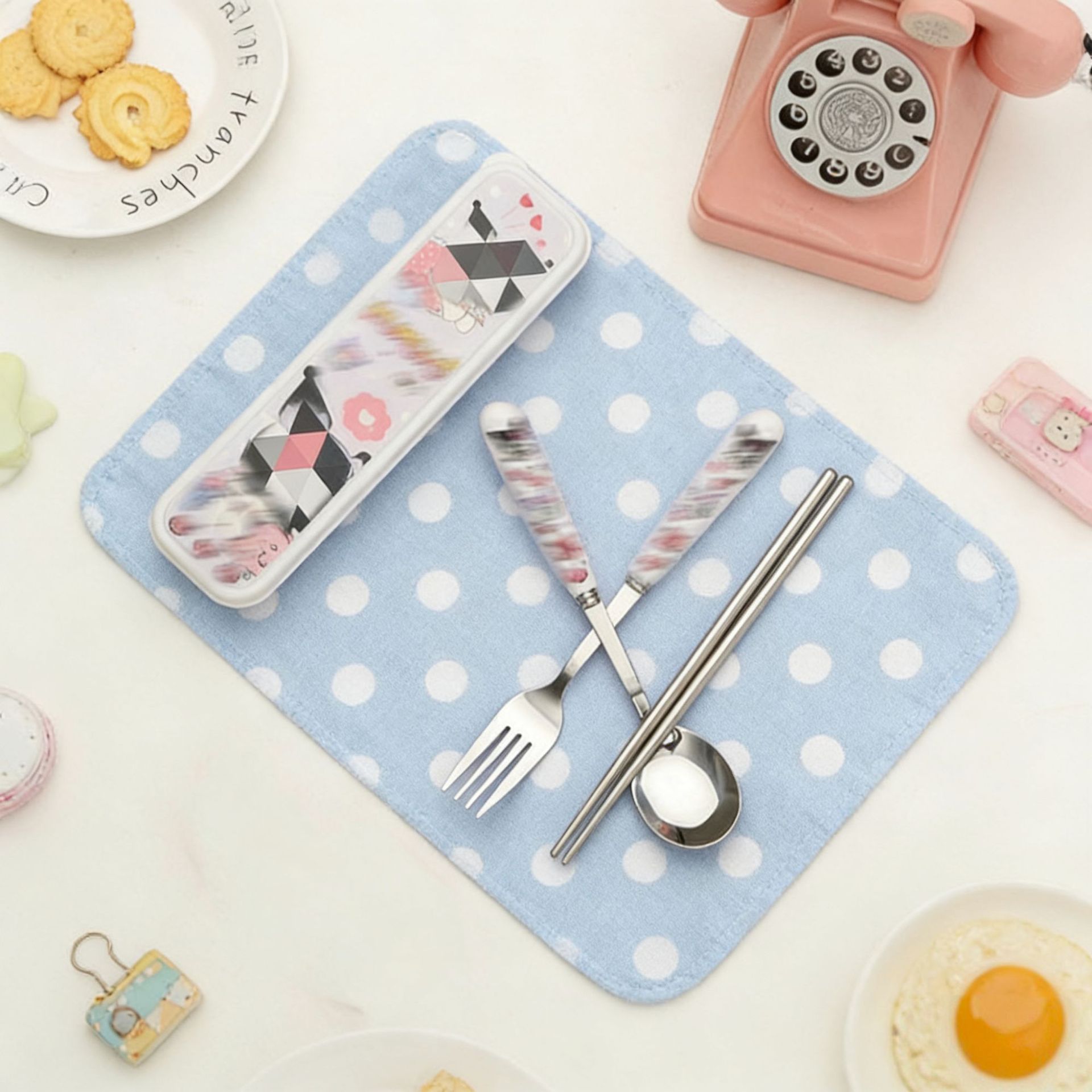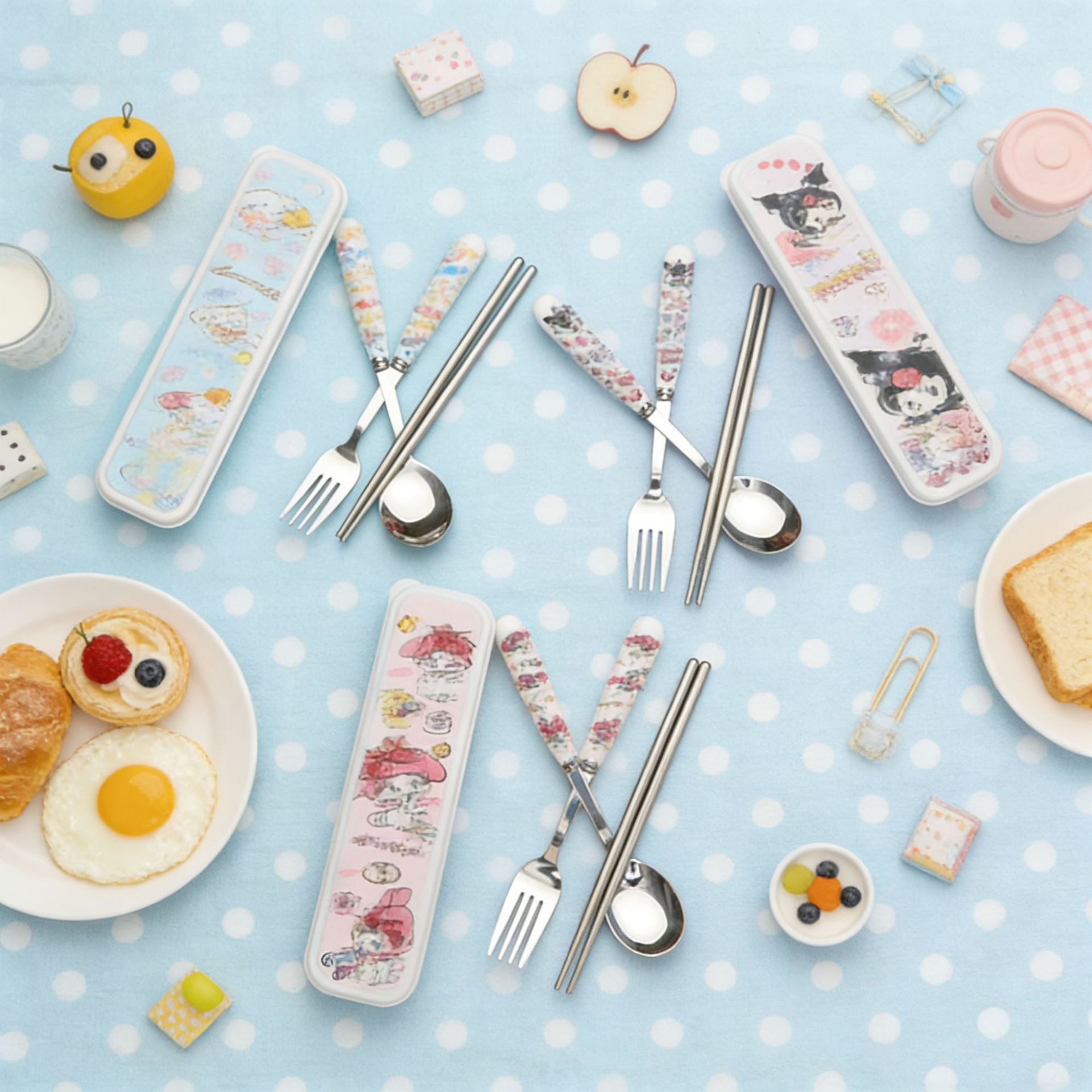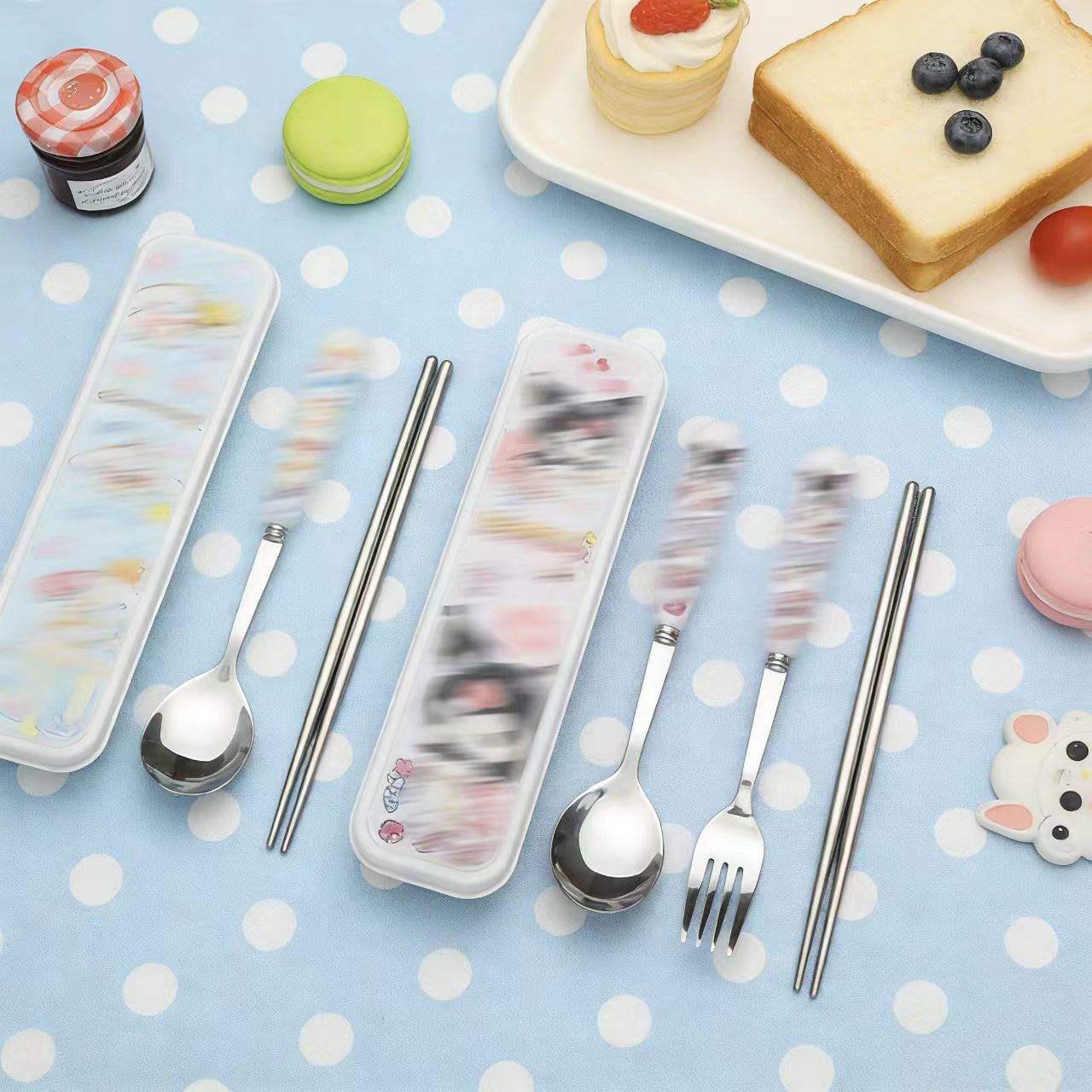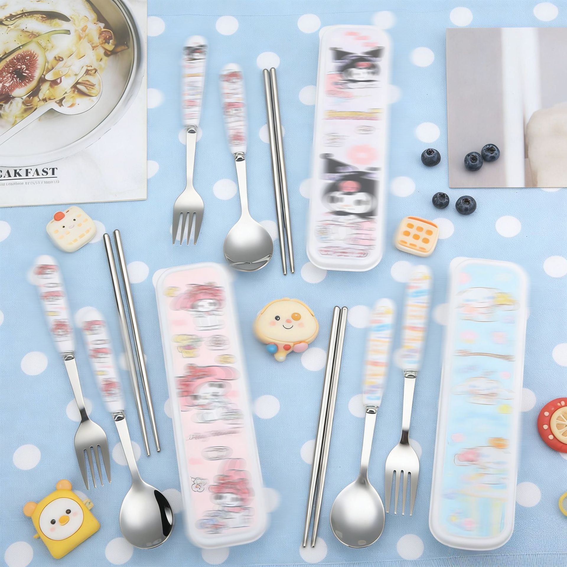 스테인레스 스틸 식기 3 피스 세트 회사원 학생 만화 휴대용 야외 캠핑 스푼 포크 젓가락 도매
