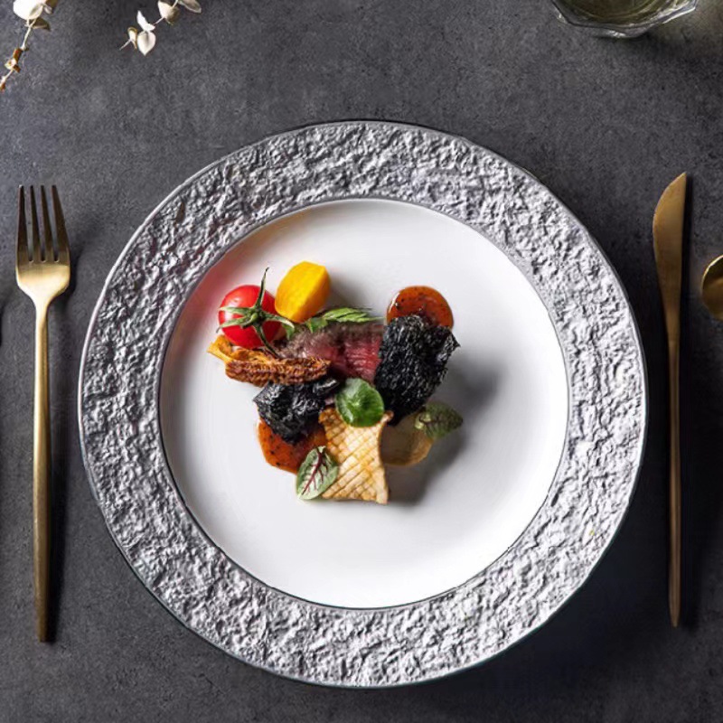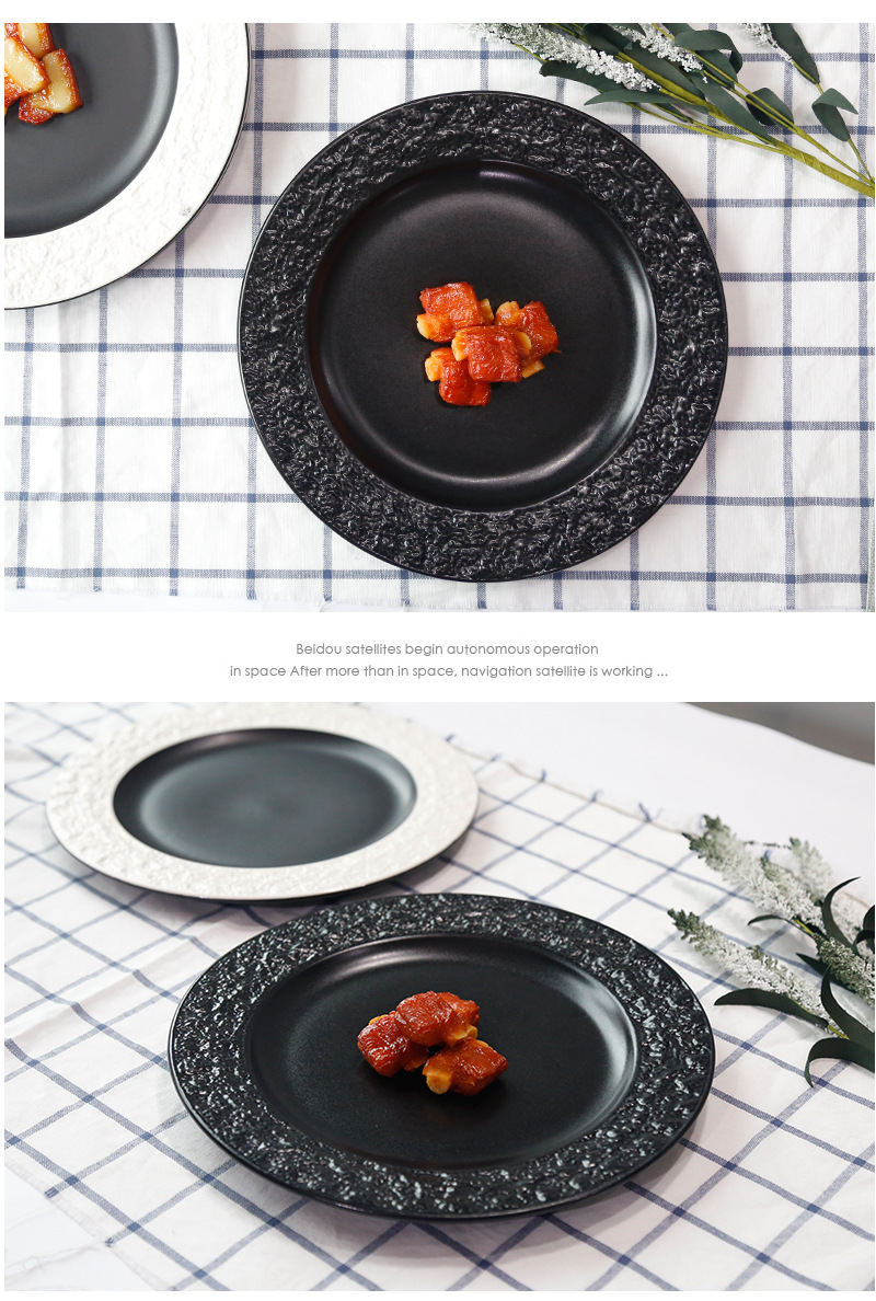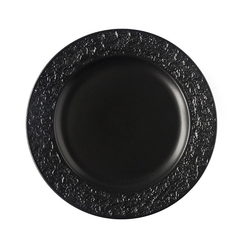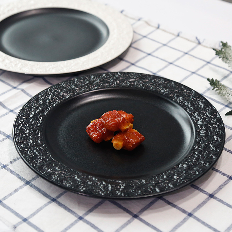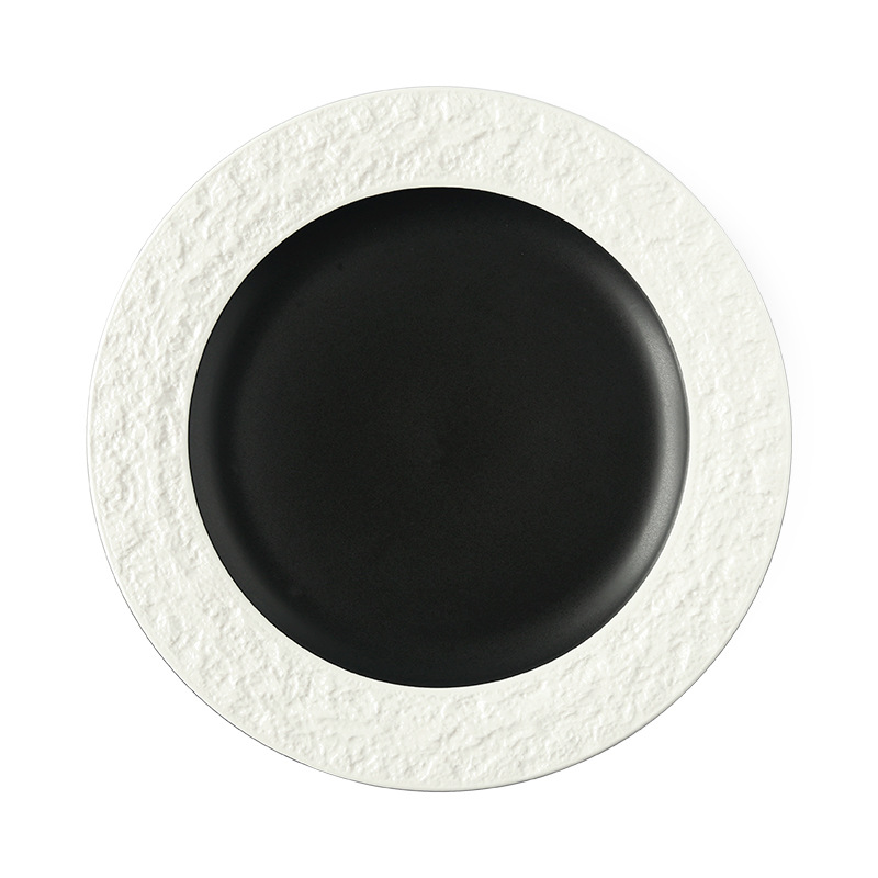 좋은 컬러 헤드 세라믹 식기 스테이크 플레이트 돌 질감 효과 유약 플레이트 케이크 플레이트 유럽 디스크 플레이트 배치