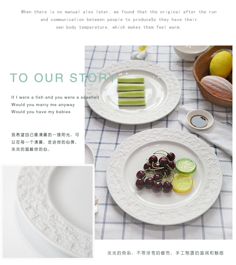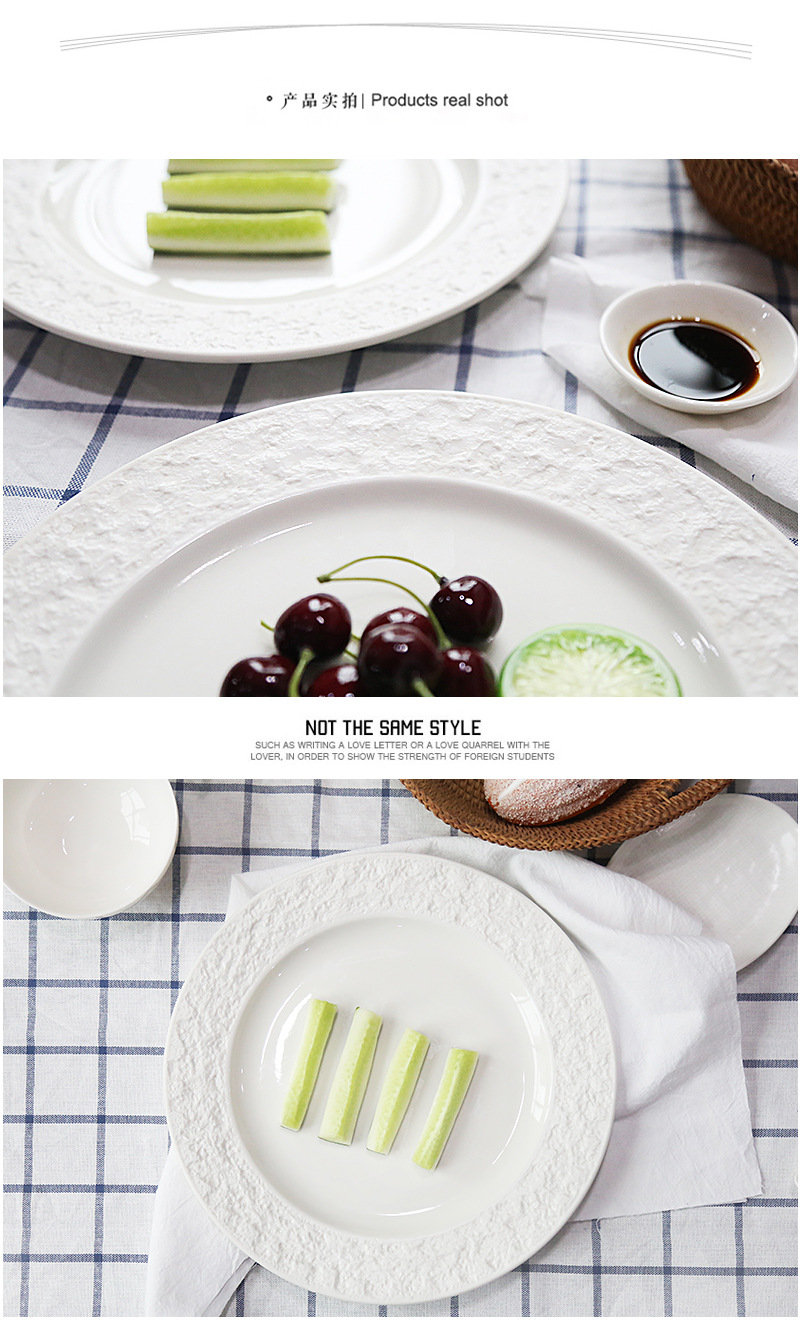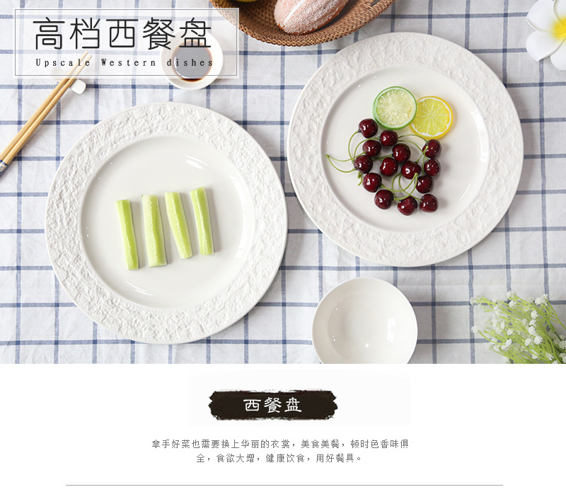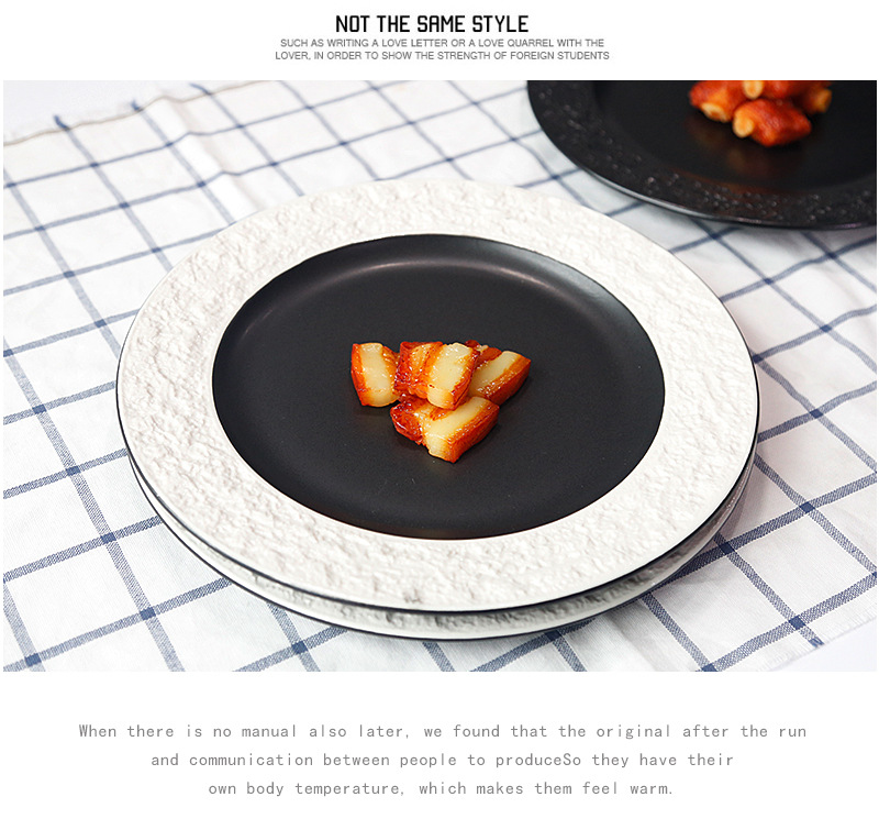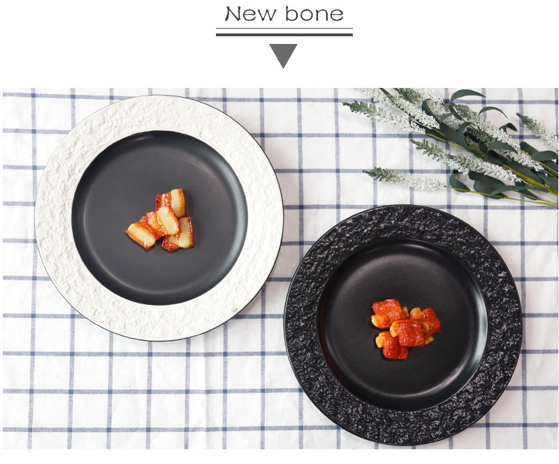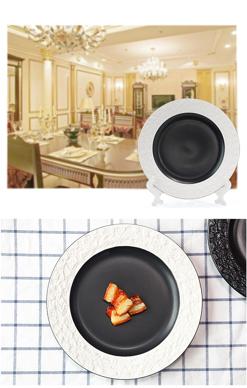 좋은 컬러 헤드 세라믹 식기 스테이크 플레이트 돌 질감 효과 유약 플레이트 케이크 플레이트 유럽 디스크 플레이트 배치
