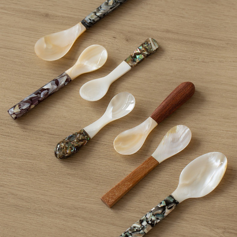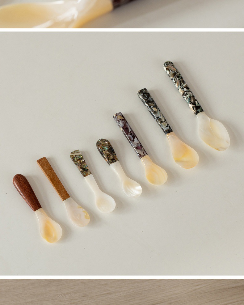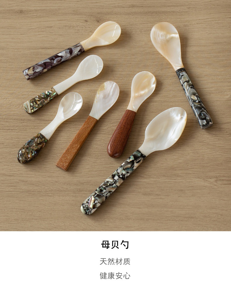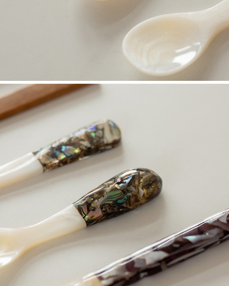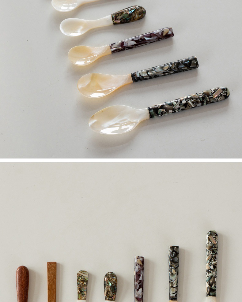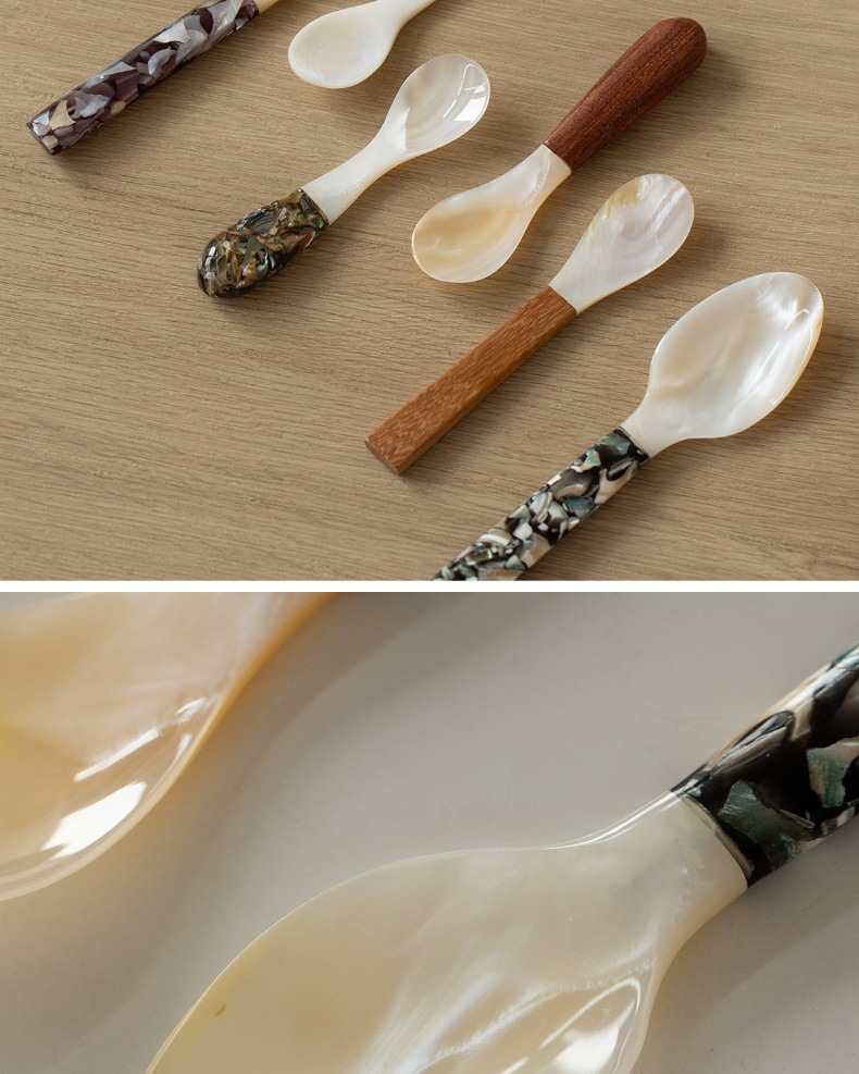 자연적인 어머니-진주 숟가락 빈티지 별이 빛나는 하늘 디저트 숟가락 식기 커피 혼합 숟가락 껍질 숟가락 캐비아 스푼