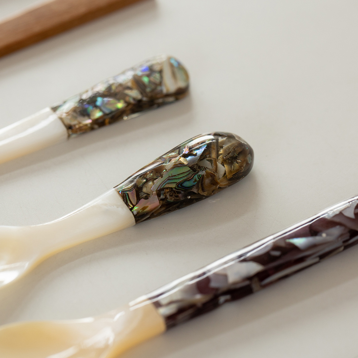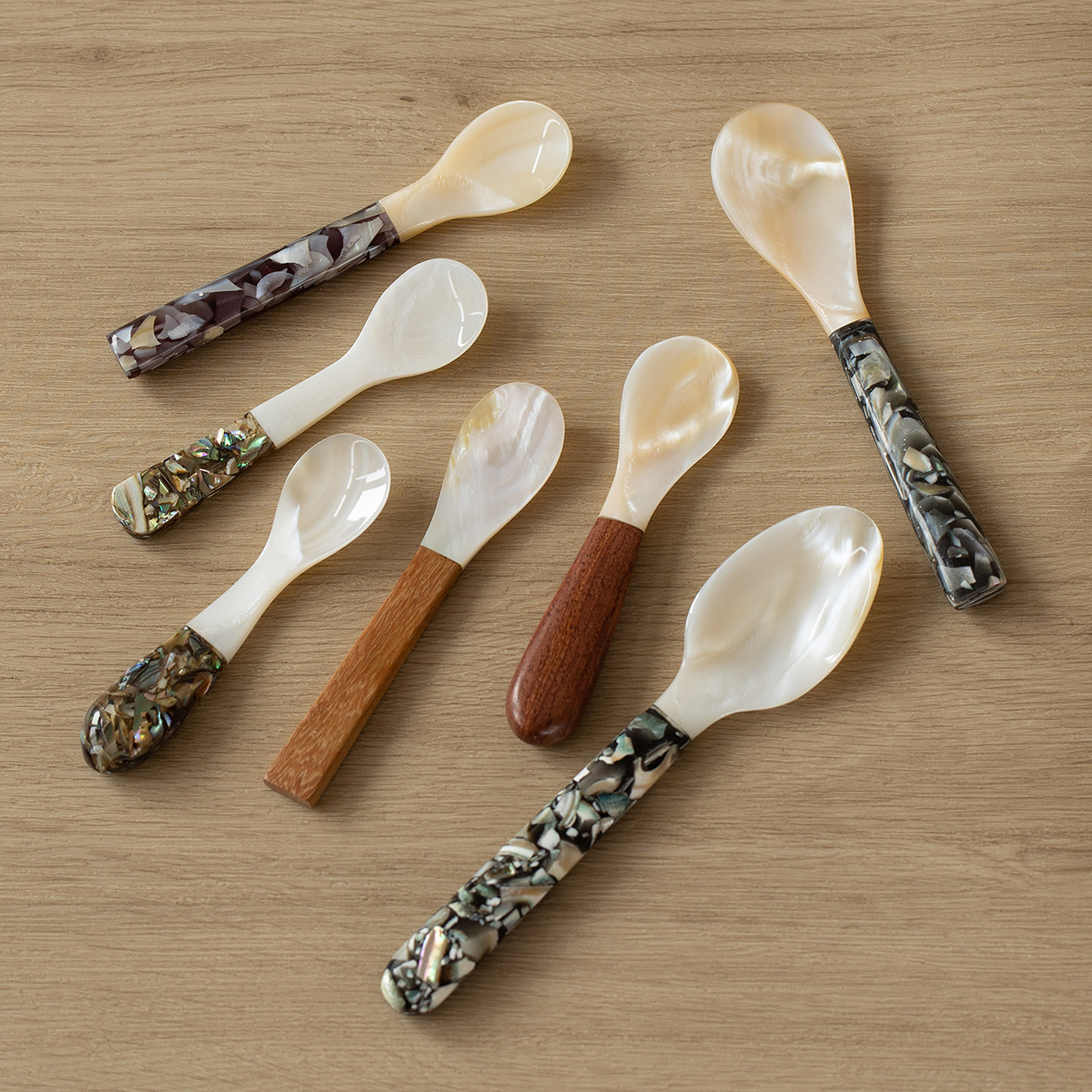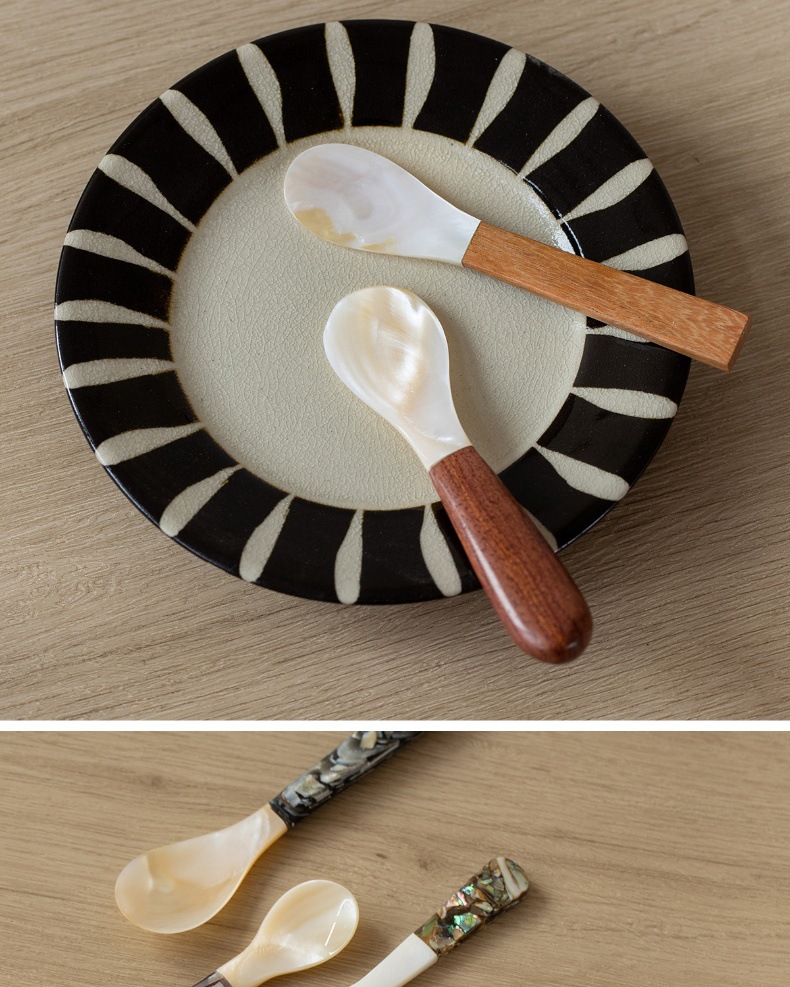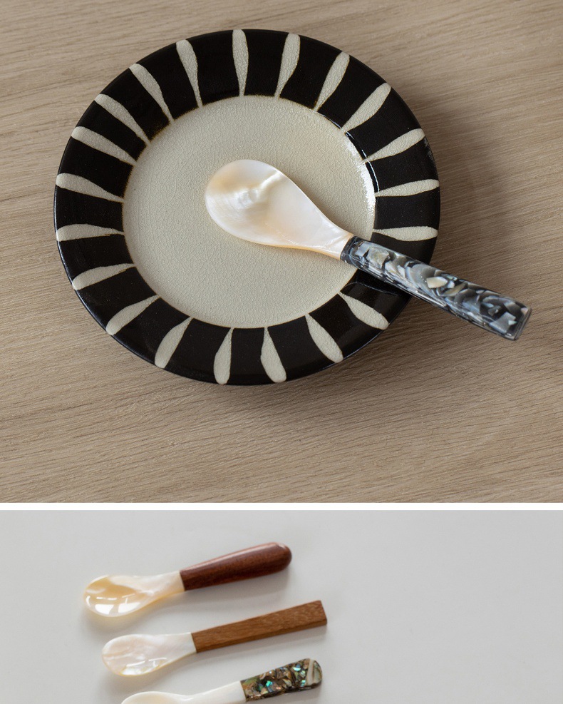 자연적인 어머니-진주 숟가락 빈티지 별이 빛나는 하늘 디저트 숟가락 식기 커피 혼합 숟가락 껍질 숟가락 캐비아 스푼